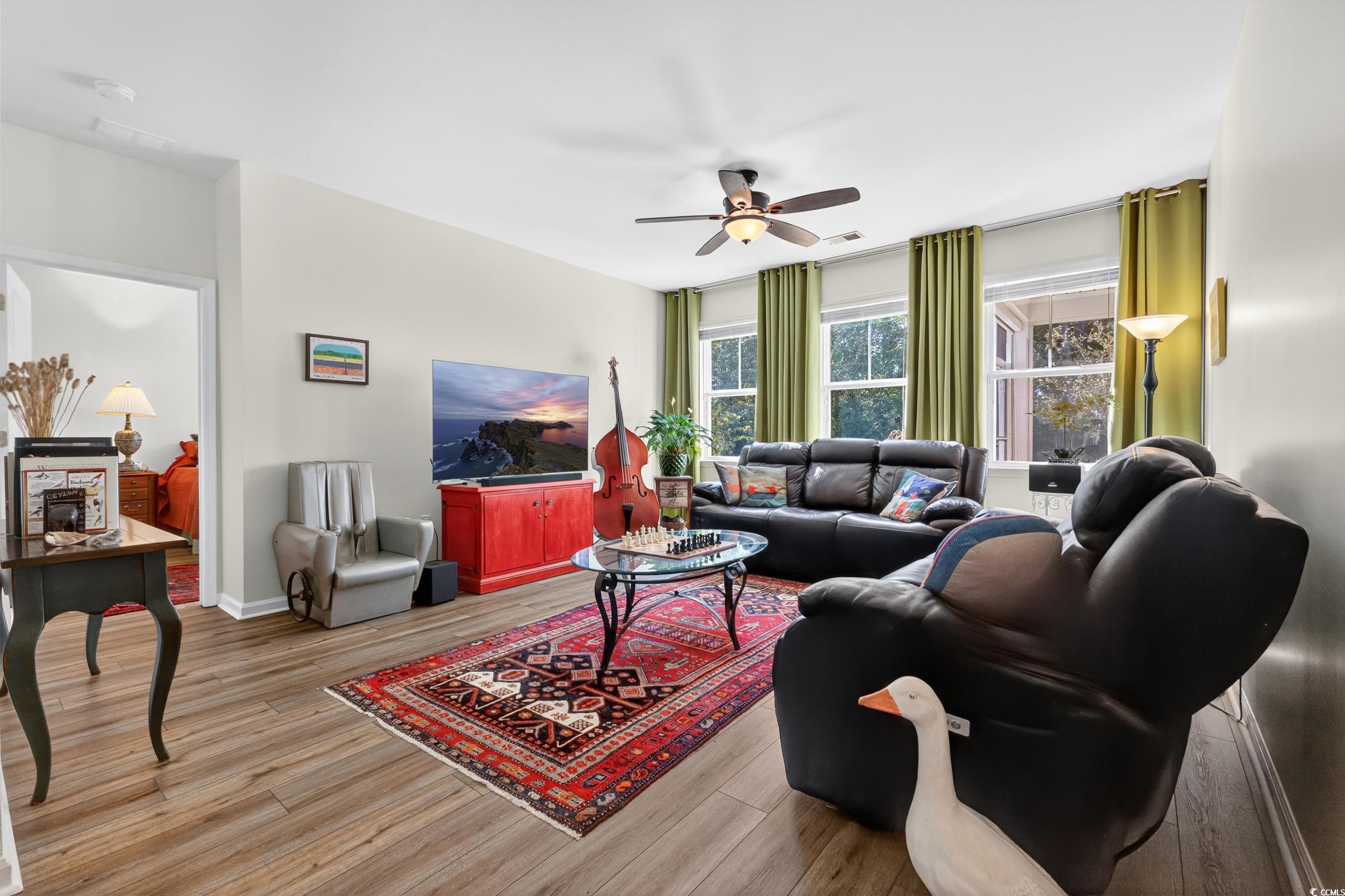 Welcome to Tuscany-Carillon, a beautiful gated 55+ community in Myrtle Beach with amenities galore including personal lawn maintenance and landscaping! This gorgeous move in ready home has all the upgrades including a whole house Generac generator, whole house water filtration system, guardian security film on all of the windows, extended screened in porch with custom pull down shades and tile floors, new flooring throughout, quartz countertops, custom tile shower in primary suite as well as an enormous walk in closet with tile floors, attic fan, meticulously landscaped yard, paver BBQ area and walkway, aerial digital antenna, keyless entry, freshly painted with Sherwin Williams paint, and motorized screen for the garage door. This home features 3 bedrooms, a flex room currently used as an office, 2 bathrooms, spacious kitchen with a generous kitchen island and adjacent dining area and walk in pantry with ventilated shelving, lots of storage, and custom blinds for the windows. There is nothing to do but move in. Schedule your private showing today!