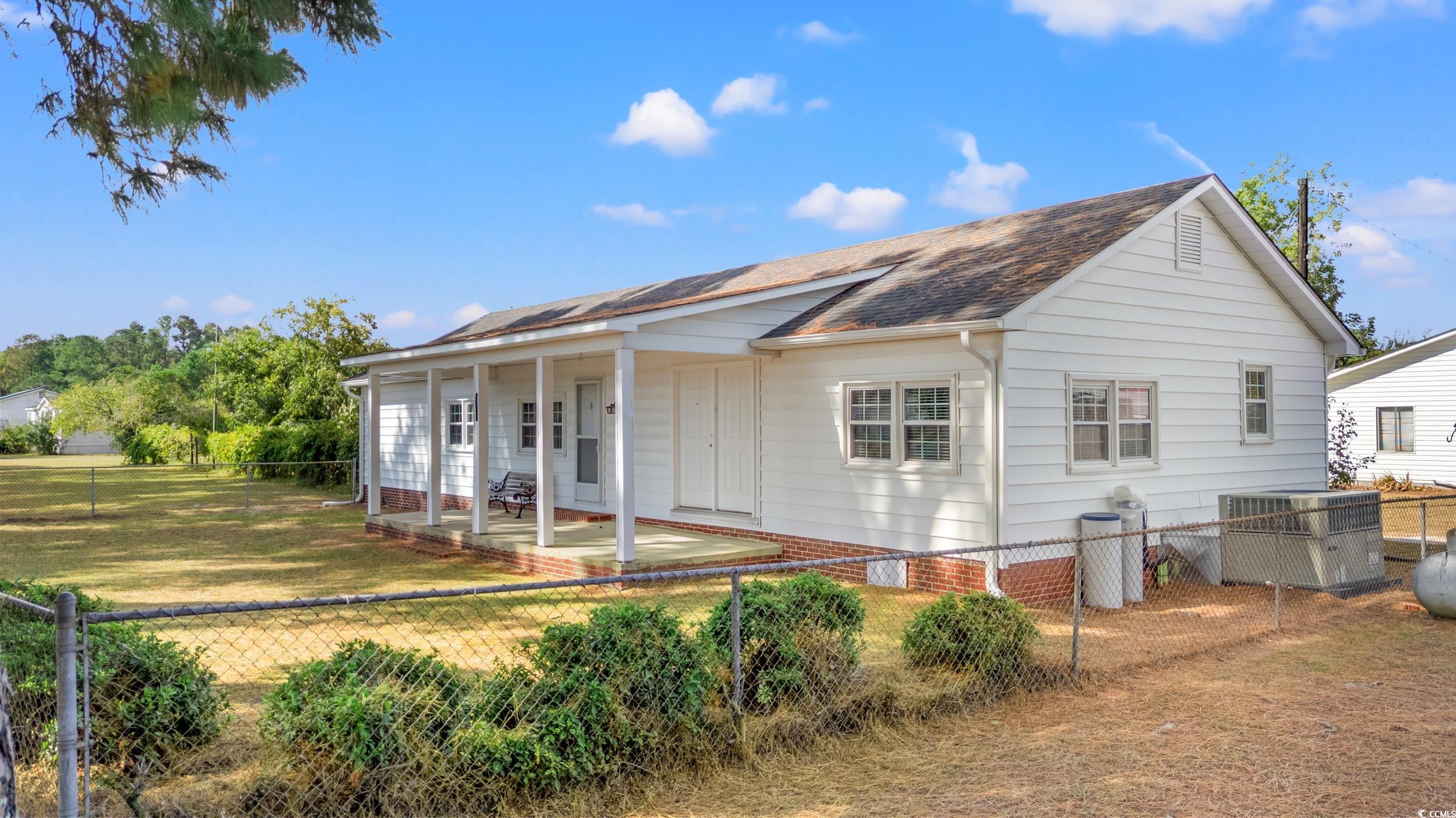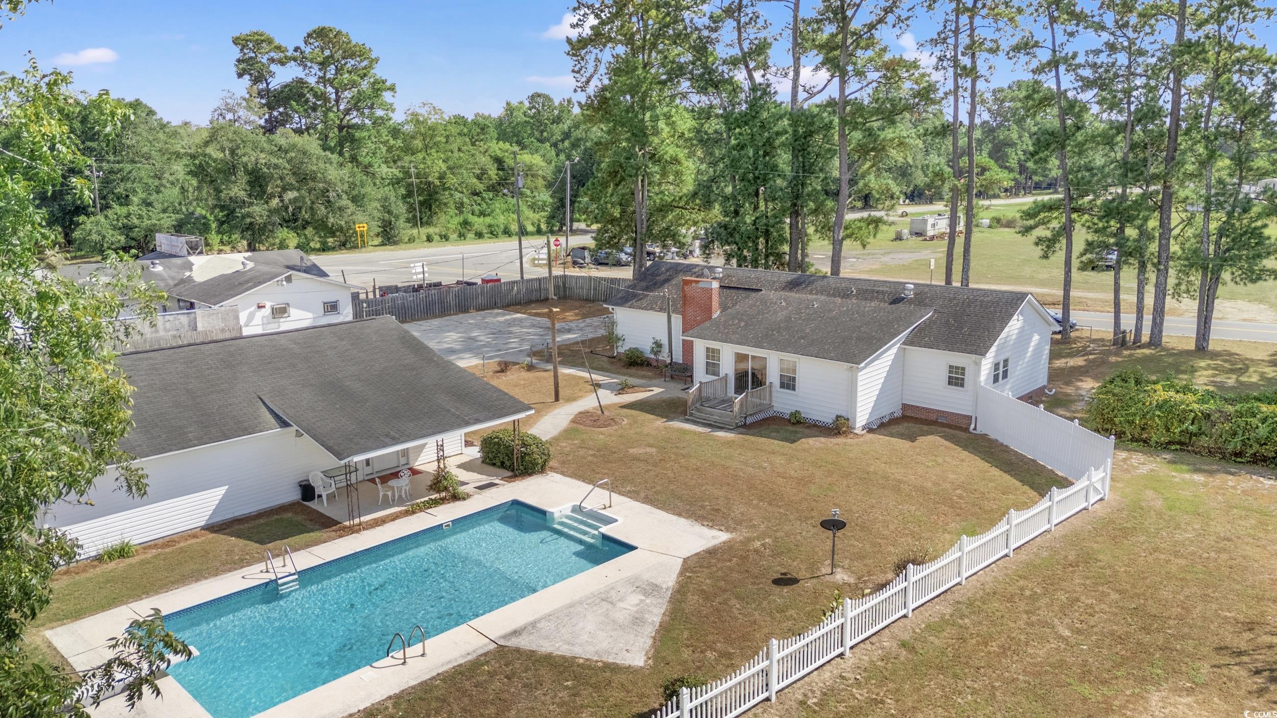 Welcome to this spacious home offering over 1,600 square feet of comfortable living space. Featuring 3 bedrooms and 2 full bathrooms, this property includes a Carolina room for added relaxation, a formal dining room for entertaining, and a dedicated laundry area for convenience. Outdoor living is a highlight with an in-ground pool, fenced yard, and plenty of space to enjoy the sunshine. A 1,300+ square-foot garage/storage building with an office area provides exceptional utility for hobbies, business, or storage needs. Located just outside the city limits of Mullins, this home offers the perfect blend of privacy and convenience, all within about an hours drive to Myrtle Beach. An additional lot is also available, presenting even more opportunity with this unique property.