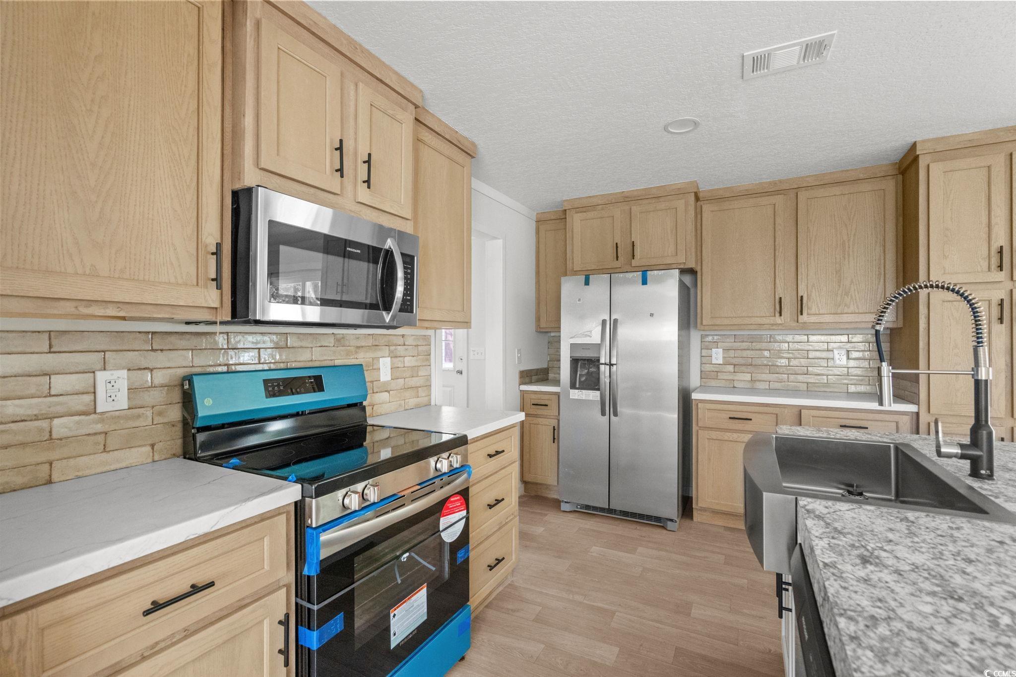Your place at the Beach. Brand New 2025 Quality Destiny home, 3BD/2BA, located in the heart of Myrtle Beach. This home is built to last and has it all with bright spacious rooms with plenty of room to entertain & relax. Brand new everything in this home and sitting on a spacious lot with room to add patios, porches or covered parking. Located minutes to the beach, restaurants, groceries, shopping, airport, pharmacies, golf, endless entertainment and more. SouthPark Village is a beautiful beach community with modest rent and owners only. Golf carts are pets are welcome. This home comes completely set up with a new HVAC, , 4X6 deck on the front and back doors, 6X8 deck on the back sliders, lots of natural light, farmhouse sink, stainless appliances, fireplace, baseboards and molding, soft close cabinets, window treatments, energy star rated, factory home warranty, 10 year structural warranty and much more. Financing is available and no closing cost. Perfect place for beach home or primary.