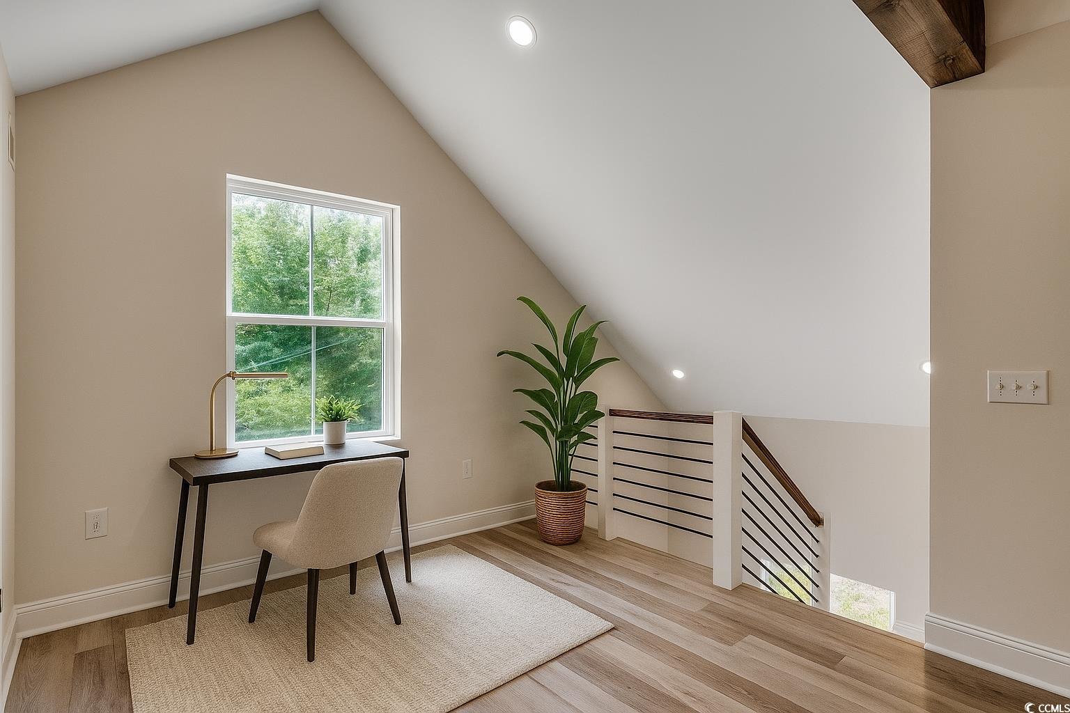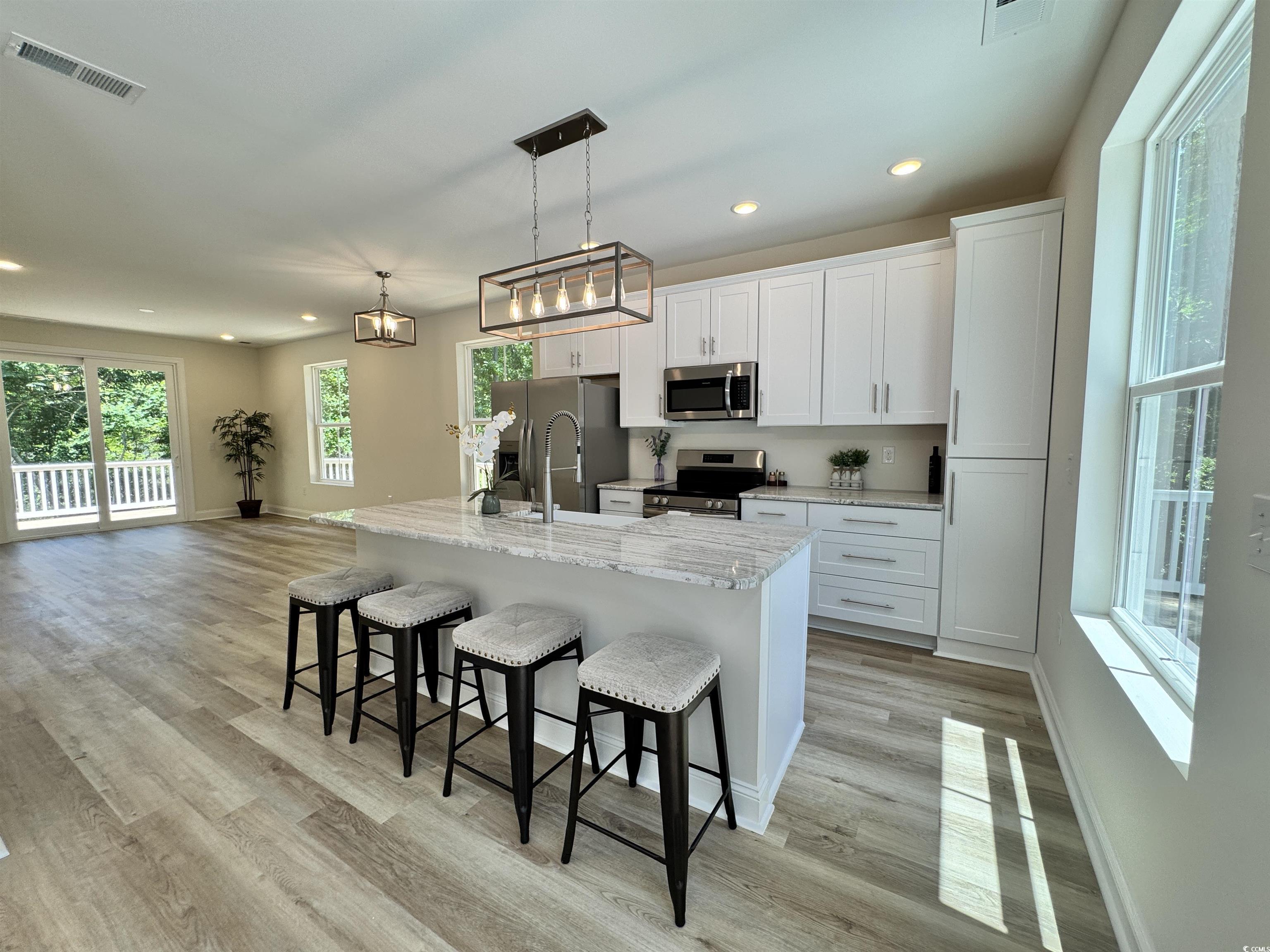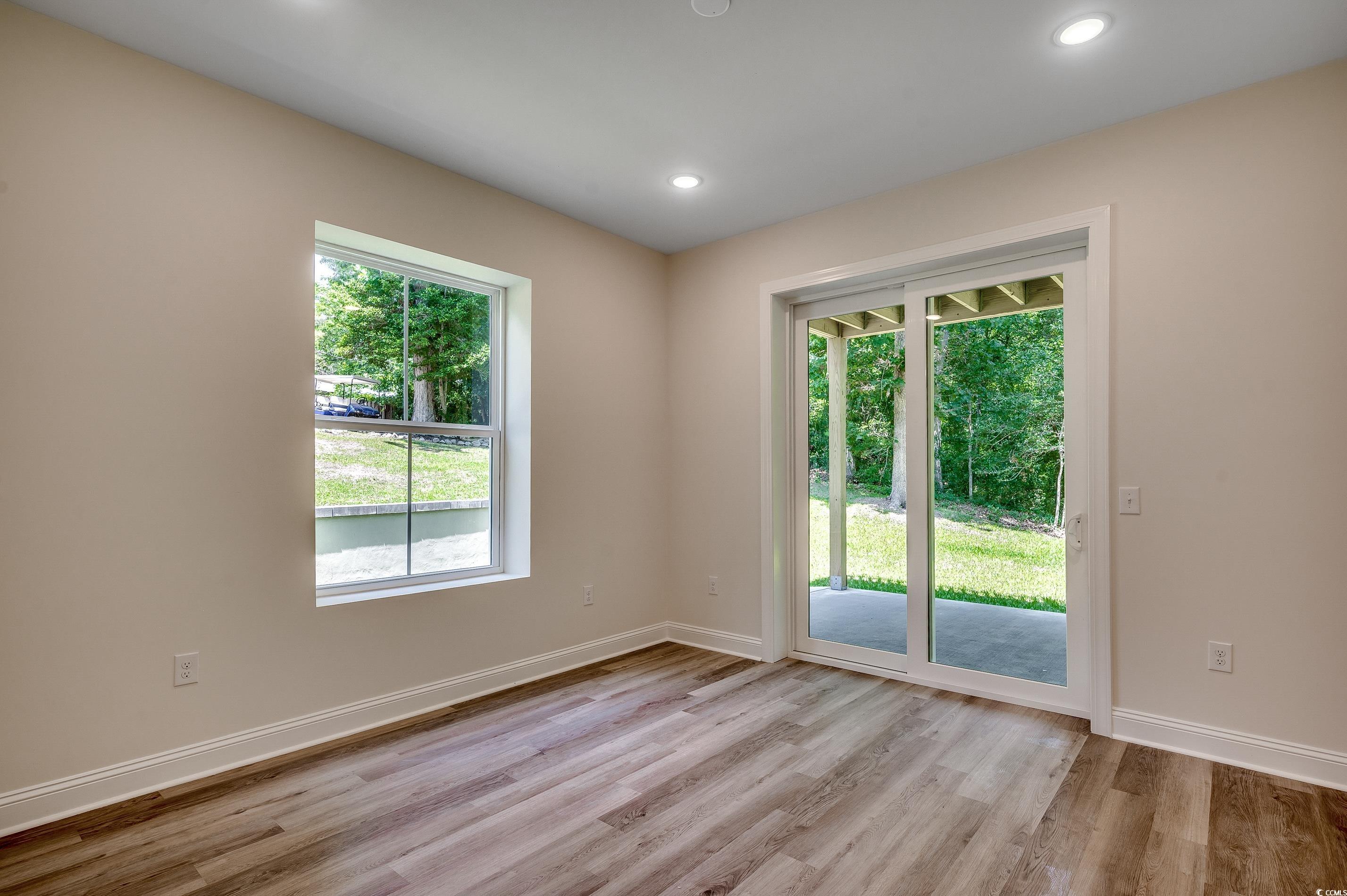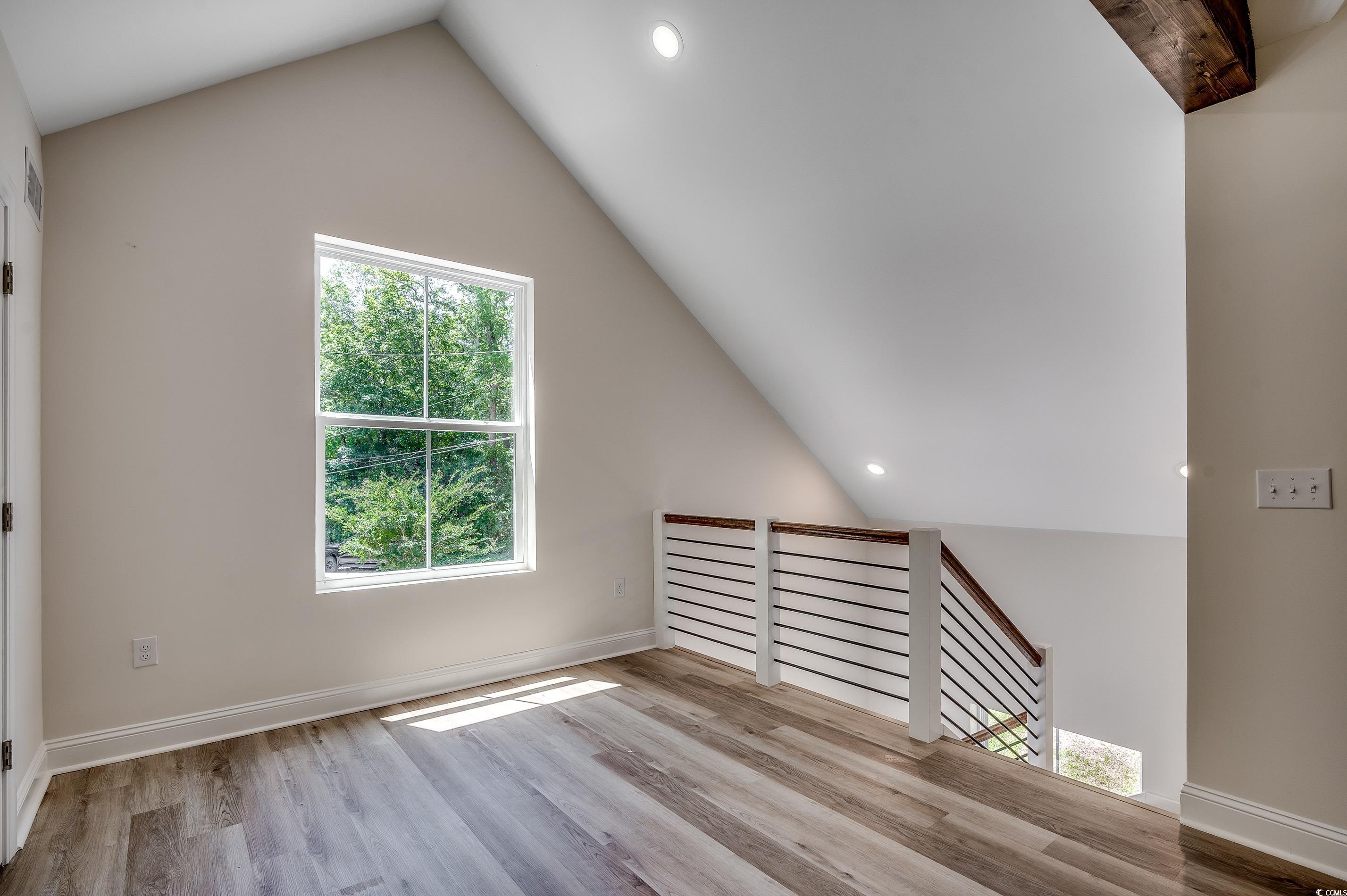 Welcome to 1673 Carriage Ln in Little River, SC a modern Chalet-inspired 3-level home with over 2,700 heated sq ft, designed for comfort, style, and flexibility. This 4 Bed / 3 Bath property features shaker-style cabinets, granite countertops, stainless steel appliances, luxury vinyl plank flooring, and contemporary pipe railings. The expansive loft/bonus room with vaulted ceilings and exposed beams offers the perfect flex space ideal for a 4th bedroom, office, or entertainment area. This home is loaded with 5 walk-in closets for ample storage and convenience, plus massive 4 x 6 windows and four oversized 8 x 6 sliding doors, bringing in tons of natural light and views of the protected lands. Climate control is a breeze with a Bryant 3-zone HVAC system and Wi-Fi thermostats you can adjustright from your phone. Enjoy outdoor living on the wrap-around porch and lower-level patio, all with tranquil views of protected land behind the home. Best of all? No HOA. Located just minutes from the Historic Little River Waterfront along the Intracoastal Waterway a hot spot for waterfront dining, live music, festivals, and casino boat cruises. Golf cart to restaurants, golf courses, and reach the beach in under 10 minutes! Perfect as a primary home, vacation escape, or short-term rental investment. *Owner is an SC Licensed Agent.