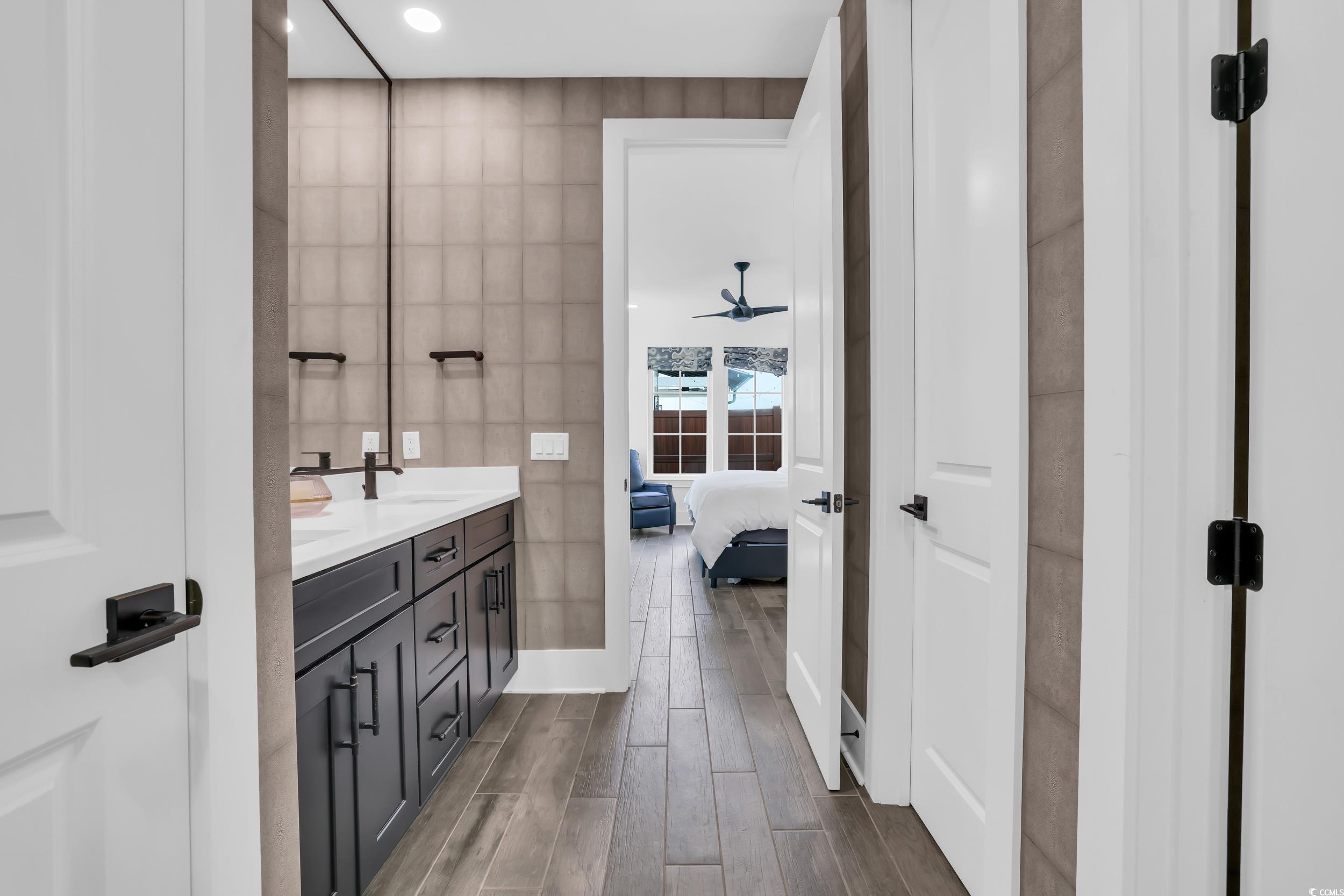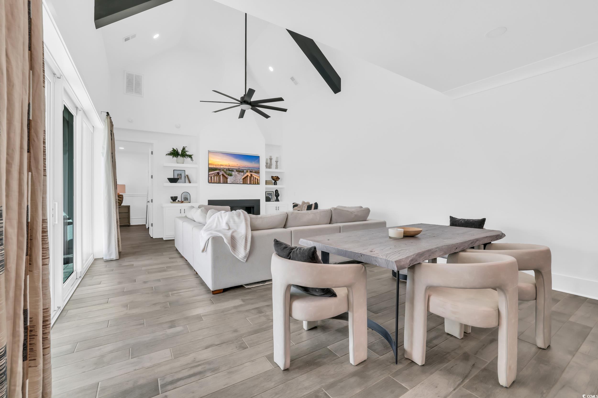 Welcome to 82 Dunes, one of Myrtle Beachs most sought-after coastal communitieswhere luxury design meets prime location. This custom Antilles-style home offers 4 bedrooms, 3.5 baths, and a spacious 1.5-story layout designed for comfort and function. The primary suite is conveniently located on the main level, featuring a glass walk-in shower, tiled flooring, custom built in closets in a generous walk-in closet, that all leads out to the in-ground spa. Upstairs, youll find three additional bedrooms and two full baths, including a second master suite and a Jack-and-Jill bath connecting the remaining bedroomsperfect for family or guests. Throughout the home, youll find custom tile flooring, quartz countertops, and designer finishes that showcase meticulous craftsmanship. A pocket sliding glass door seamlessly merges indoor and outdoor living, opening to your private backyard oasiscomplete with an in-ground hot tub/splash pool, perfect for relaxation or entertaining. Additional highlights include a two-car garage, low-maintenance exterior, and a prime location within Myrtle Beach city limits. Youre just steps from the beach and minutes from shopping, dining, hospitals, and grocery stores. This is a rare opportunity to own a one-of-a-kind custom home in a premier coastal neighborhoodwhere lifestyle, design, and location converge.