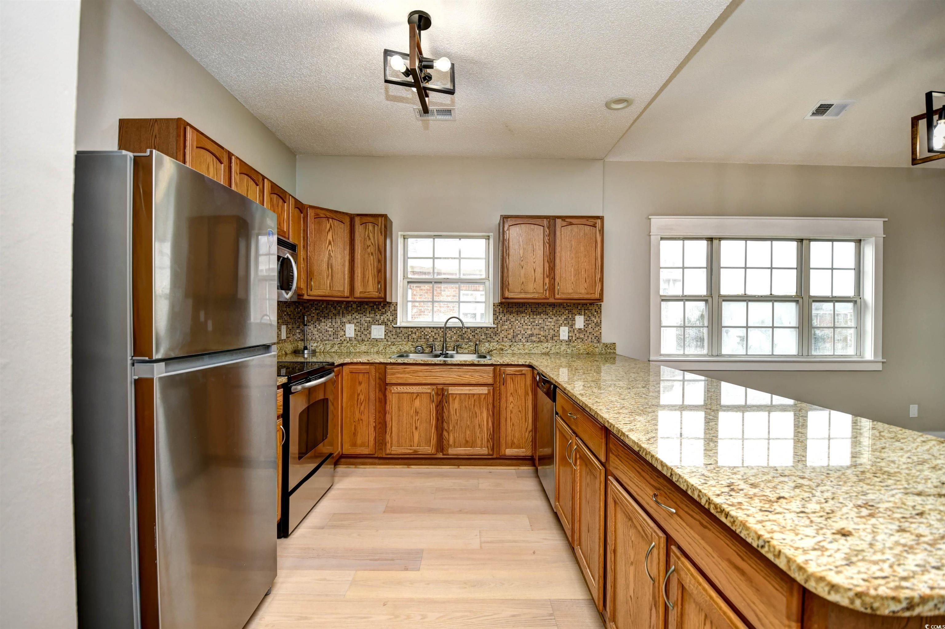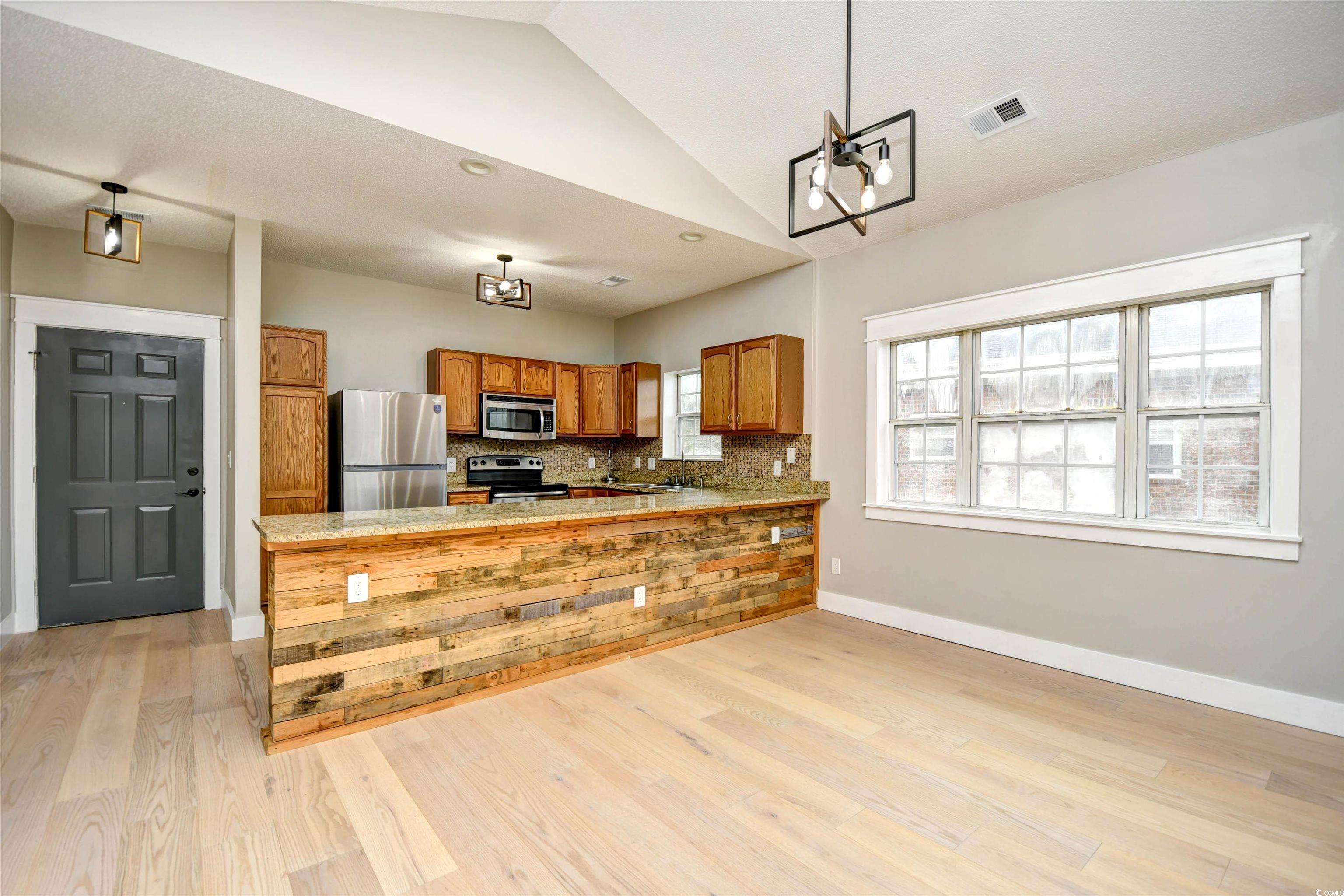 Welcome to your third-floor retreat in the desirable Azalea Lakes community! This 2 bed / 2 bath condo features vaulted ceilings, an open floor plan, and abundant natural light. The primary suite includes its own ensuite. The guest bedroom is conveniently adjacent to a full bath that also houses the in-unit washer/dryer. Step out onto your private balcony overlooking peaceful pond views a perfect place to relax with morning coffee or evening breezes. Rare for this community. Updates include: new flooring, all new base boards, fresh paint on ceilings and walls, all new fixtures, brand new refrigerator, transom windows above the inside doors. Azalea Lakes offers resort-style amenities: indoor and outdoor pools, fitness center, and beautifully landscaped grounds. Ideally located just minutes from shopping, dining, entertainment, and all that the Grand Strand has to offer. Whether you're seeking a primary residence, vacation getaway, or investment property, this condo delivers comfort, convenience, and value.