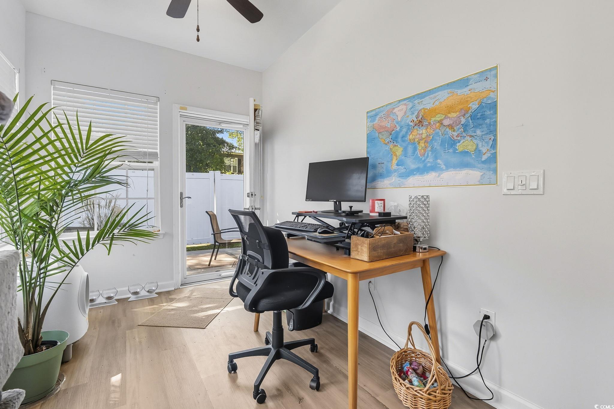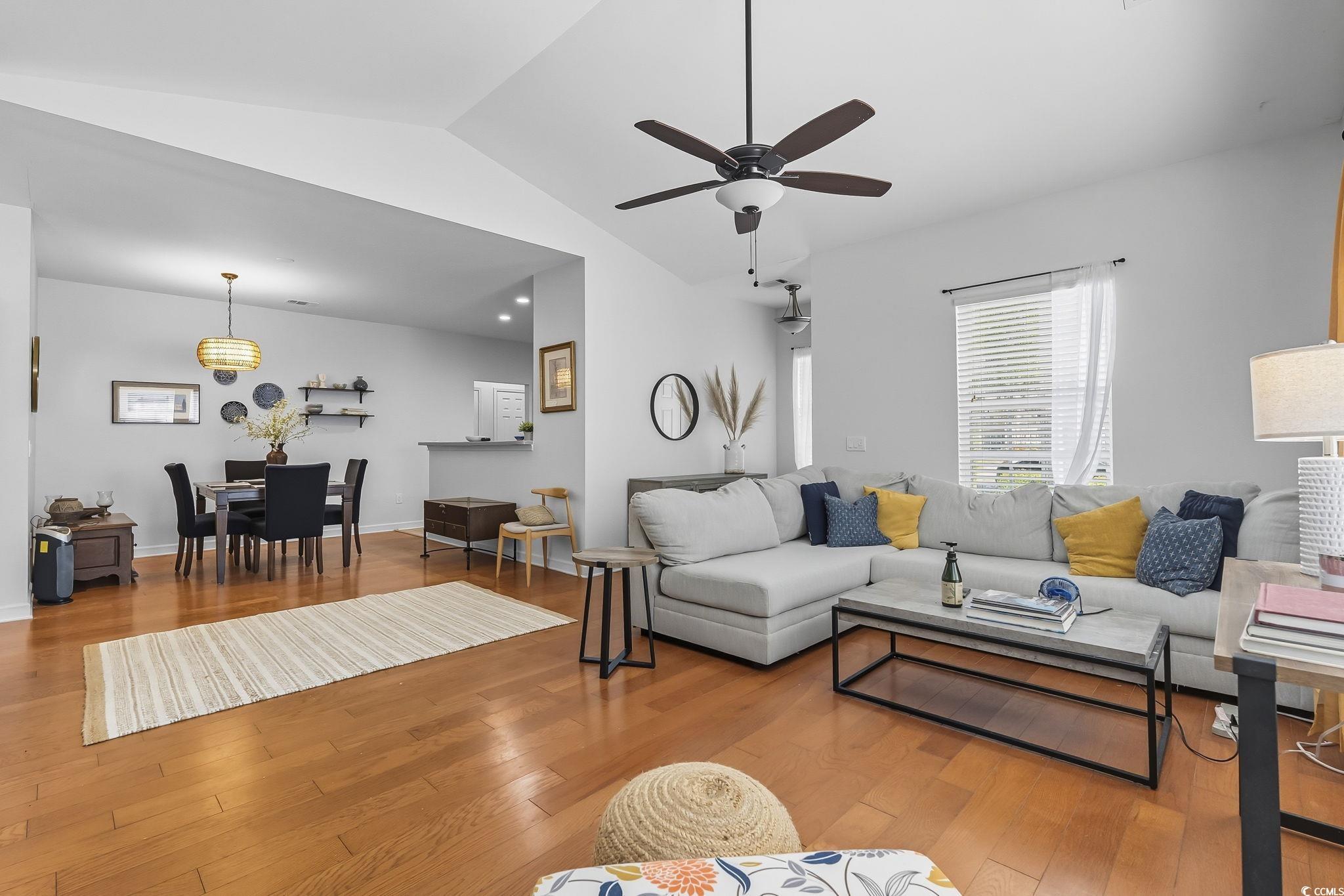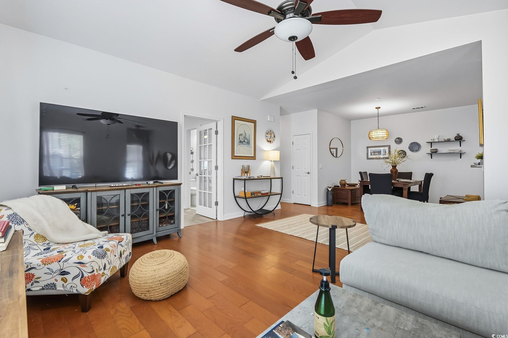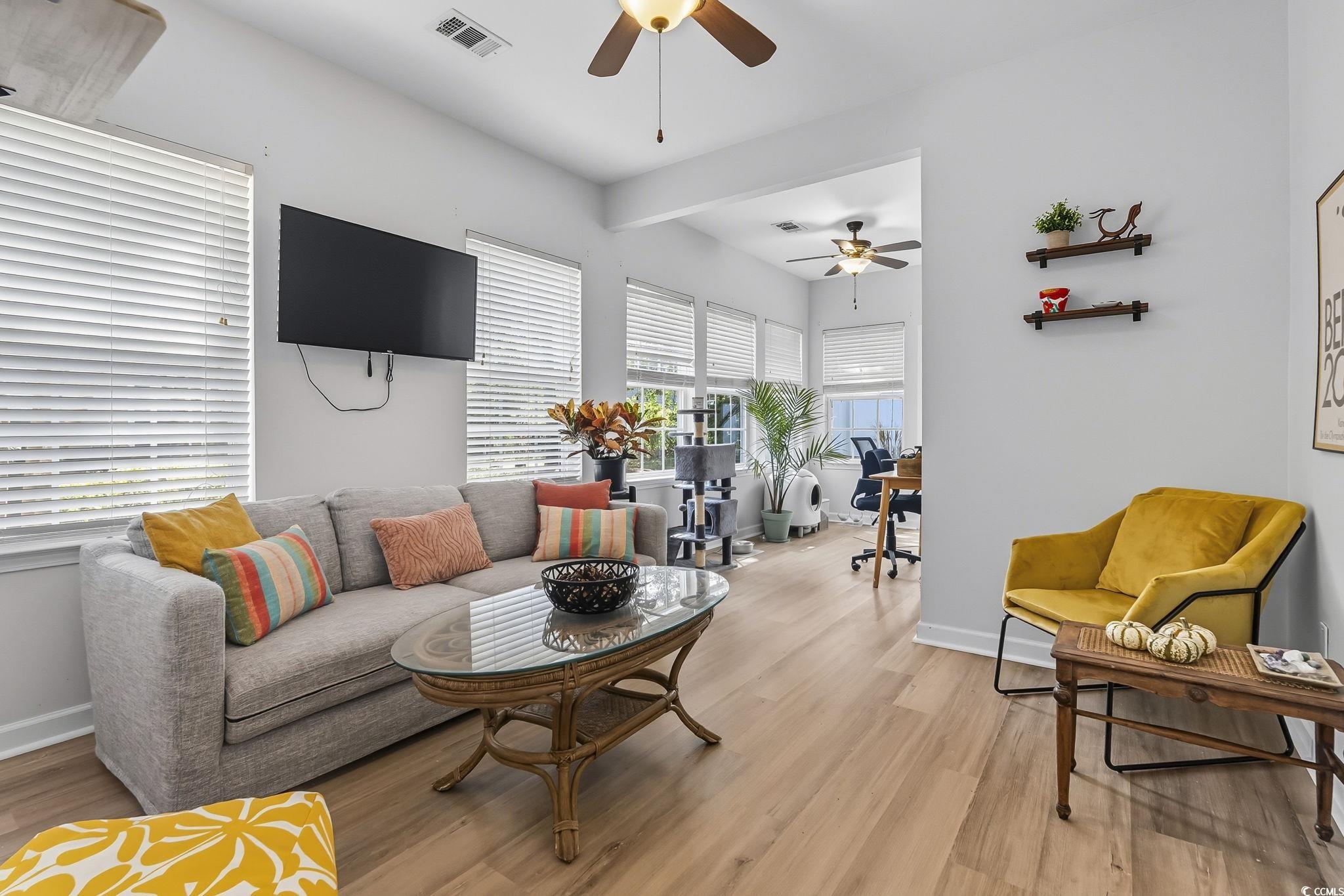 Welcome to Hidden Oaks, a quiet and charming community nestled in beautiful Pawleys Island. This well-maintained 2-bedroom, 2-bath townhouse offers a bright, open layout with smooth ceilings and abundant natural light throughout. Enjoy hardwood floors in the main living areas and brand-new LVP flooring in the sunroomperfect for relaxing year-round. The kitchen opens seamlessly to the living and dining areas, making entertaining easy and enjoyable. This home features plenty of storage throughout, including extra built-in cabinets/shelves in the garage, an extra-tall cedar closet in the second bedroom, and a walk-in closet plus an additional hanging closet in the primary suite. Hidden Oaks is truly low maintenance, with the HOA covering lawn care, water & sewer, pest control, exterior insurance, trash pickup, and routine pressure washing. Dont miss this move-in-ready gem just 1.4 miles from Pawleys Island beaches, and minutes to top-rated golf and dining! Buyer is responsible for square footage verification.