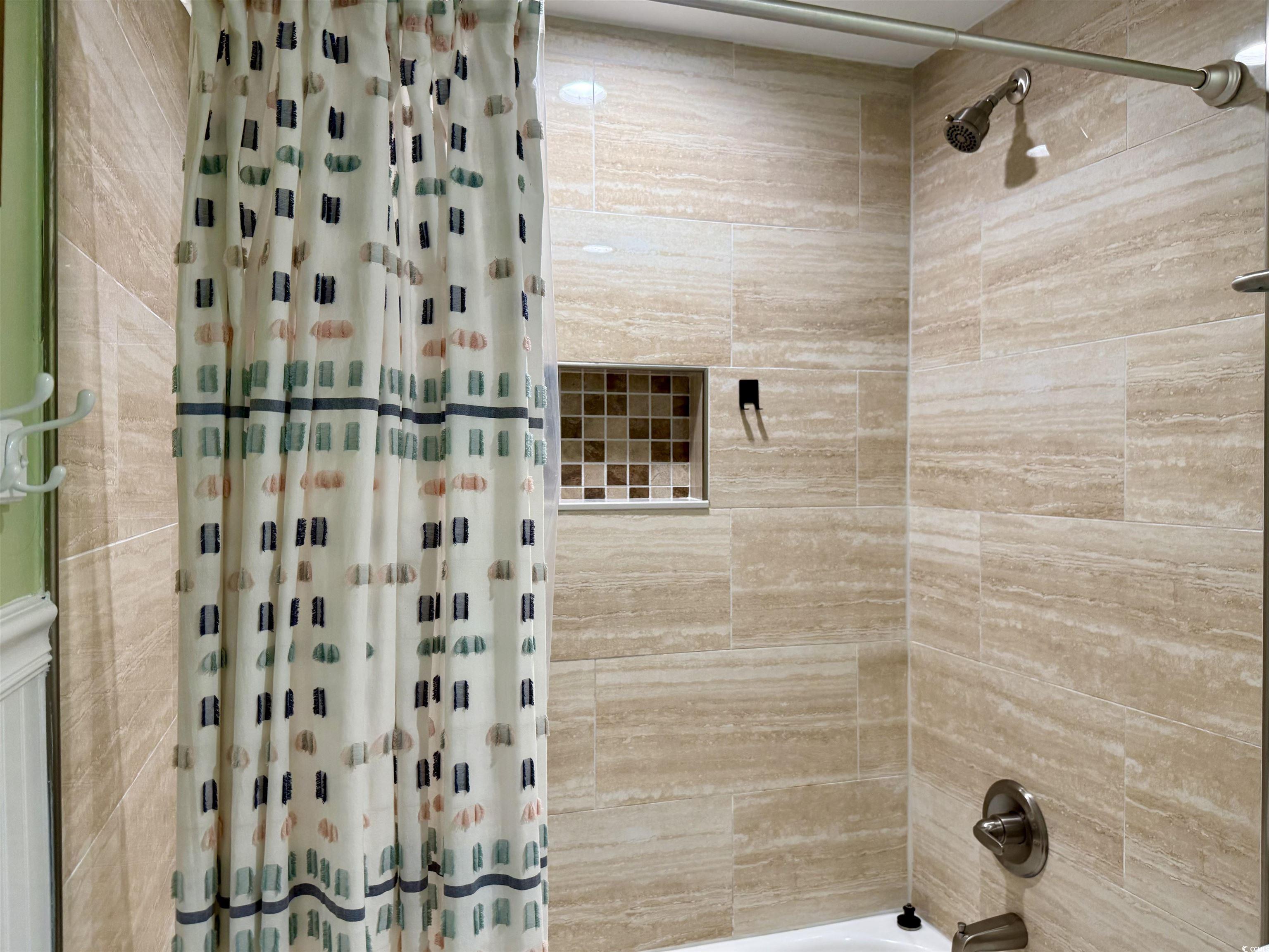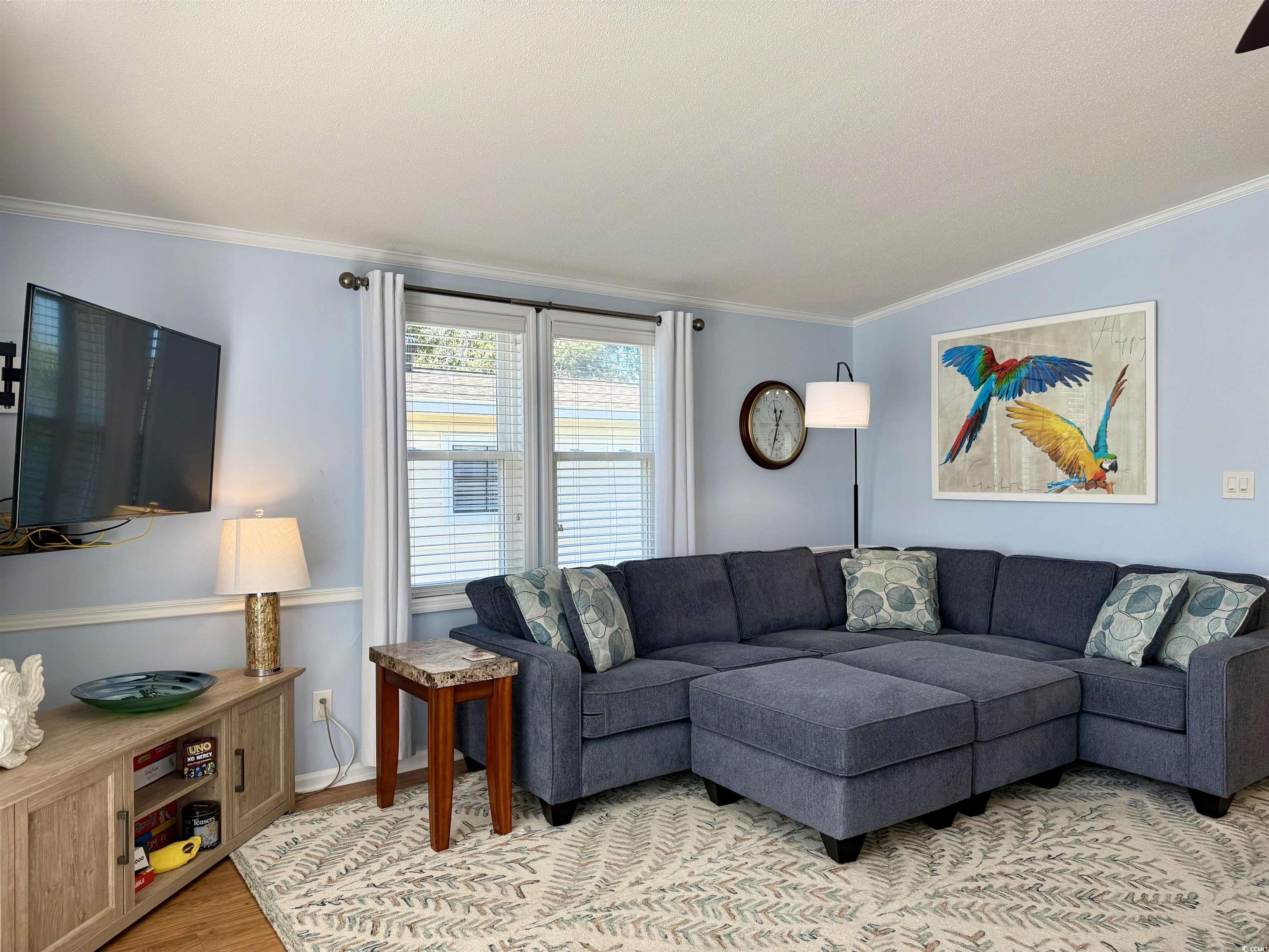 This beautifully renovated oasis is just two blocks from the sandy shores! This 3-bedroom, 2-bathroom home has been meticulously updated to offer style, comfort, and an unbeatable coastal lifestyle. The open concept layout seamlessly connects the spacious living room, dining area, and kitchen, creating an inviting space perfect for entertaining family and friends. The kitchen features stainless steel appliances and an eat-in bar that invites casual dining. Experience spa-like tranquility in the completely renovated bathrooms, featuring new flooring, sleek tiles, a dual master bath vanity, and an impressive walk-in tiled shower. The stylish barn door closure adds a touch of rustic charm to this modern sanctuary. This home is flooded with ample natural light, enhancing the spacious feel of the living, kitchen, and dining areas. The thoughtful layout provides plenty of room for both relaxation and entertaining, making it an ideal choice for families or those who love to host. Step outside to your private outdoor oasis, perfect for relaxation and social gatherings. Whether you're grilling under the stars, enjoying a game of corn hole, or simply relaxing, this space is designed for your enjoyment. The Trex decking with vinyl rails ensures durability and low maintenance, allowing you to focus on making memories. Whether you're looking for a new home or an investment property, this residence boasts an excellent rental history, providing a seamless opportunity for income and growth in a desirable beach community.