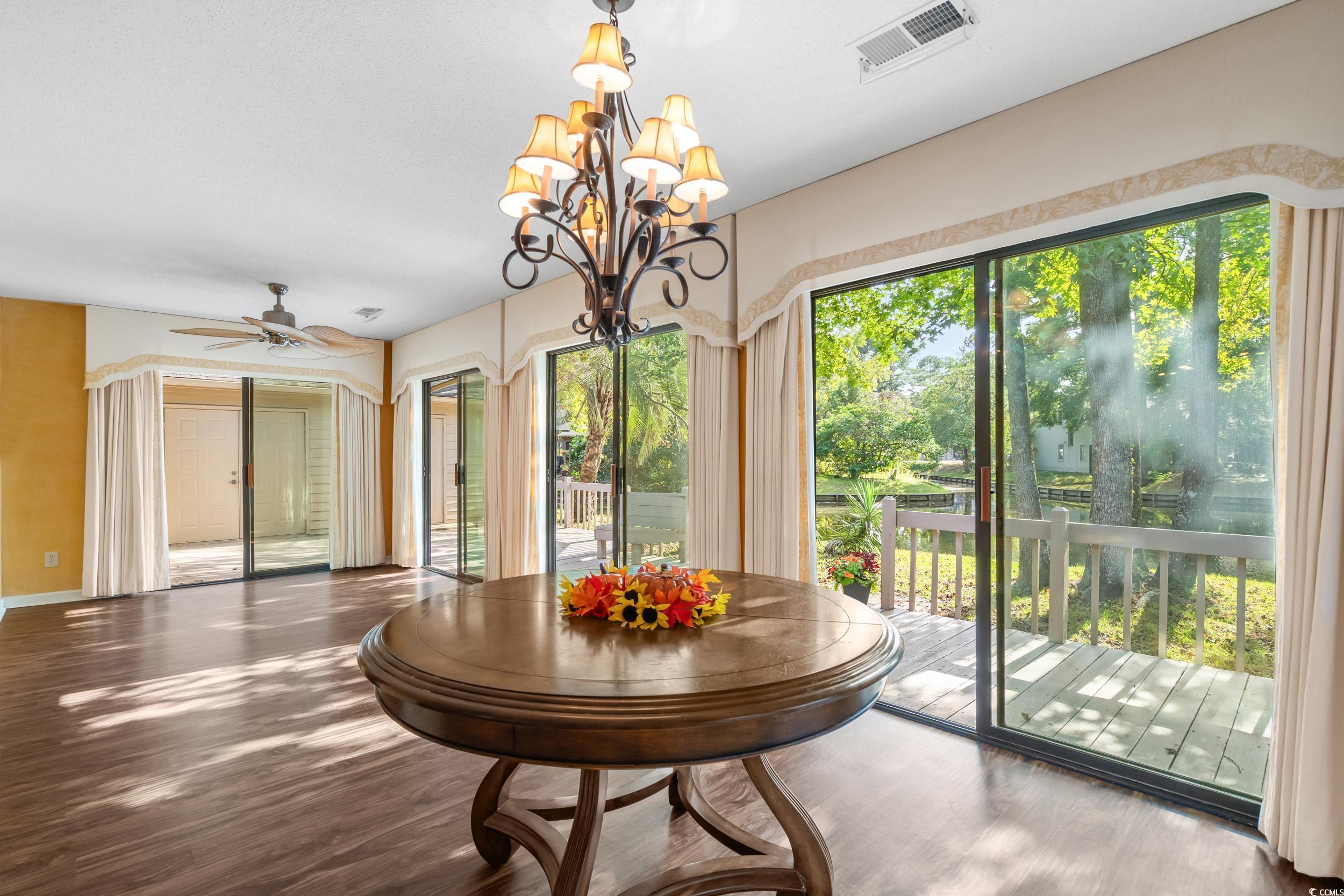 OPEN HOUSE Sat 12/20 11-1pm Nestled on a peaceful lakefront lot in the sought-after 55+ community of Myrtle Trace, this charming 3-bedroom, 2-bath home offers an inviting floor plan designed for easy living and entertaining. The spacious family room features a cozy fireplace, built-ins, and direct access to the patioperfect for relaxing or hosting guests. Enjoy meals in the nicely sized dining area or in the beautiful kitchen, complete with abundant cabinet space, plenty of countertop area, a tile backsplash, and convenient access to the Carolina room.The luxurious primary suite includes French doors leading to the patio, a large walk-in closet with built-in shelving, and walk in tiled shower and vanity. Two additional bedroomsone featuring a Murphy bedshare a full bath with a tub/shower combination. A laundry area with upper cabinets adds convenience.Outside, the patio provides a tranquil setting for your morning coffee or unwinding in the evening with wine and appetizers while enjoying the lake views. Let me also mention it has 2 large attached storage areas and one is big enough for a small workshop. Myrtle Trace amenities include a saltwater pool, clubhouse, bocce and shuffleboard courts, plus a full calendar of community activitiesmonthly parties, game nights, and holiday celebrations. Ideally located near shopping, dining, medical facilities, historic downtown Conway, top golf courses like Burning Ridge, Tanger Outlets, and just minutes from the beach and all Myrtle Beach attractions. Whether youre looking for your forever home or the perfect coastal retreat, this one is a must-see!