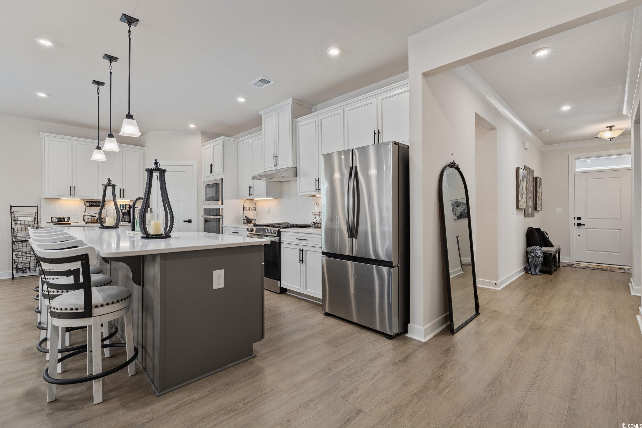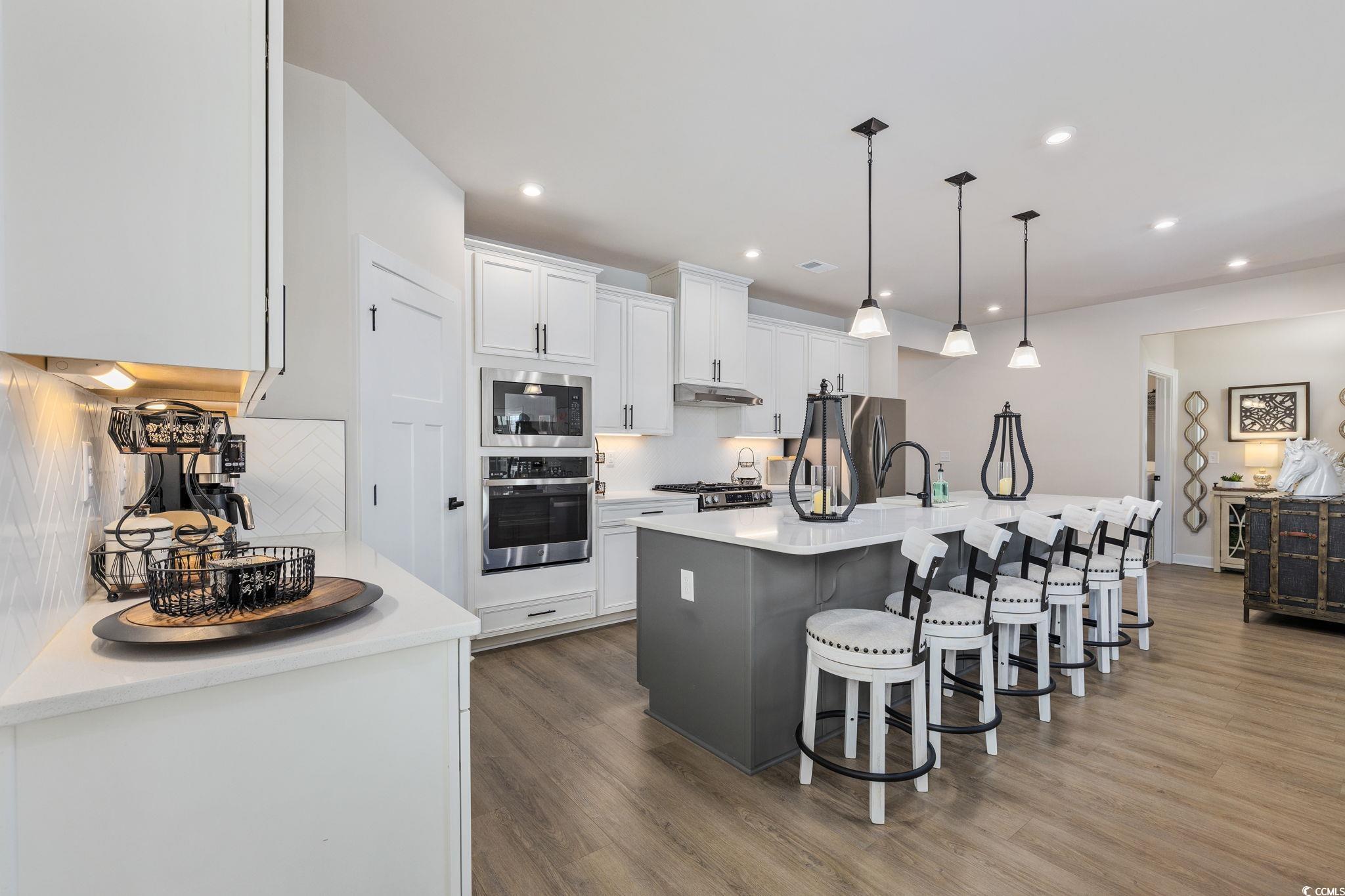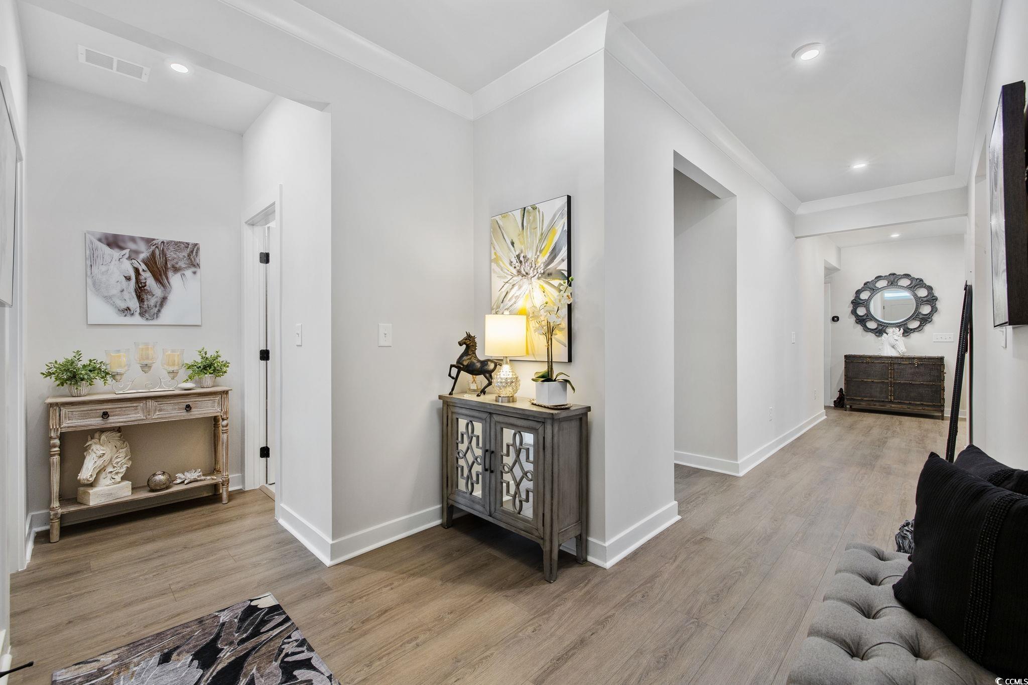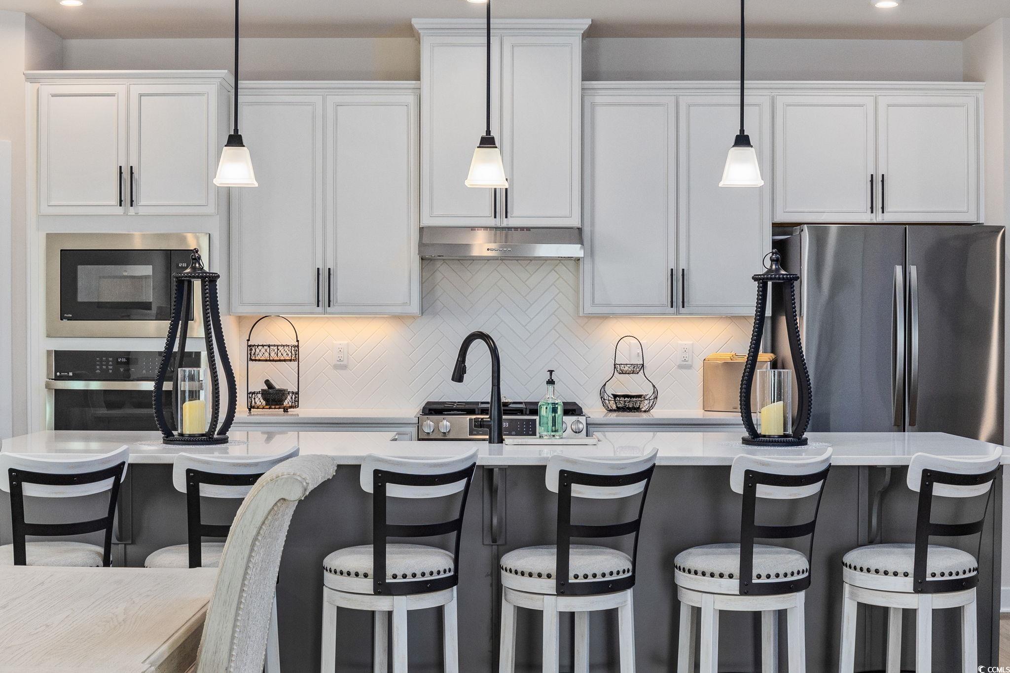 Welcome to Indigo Bay, a premier gated community in the heart of Carolina Forest, where lakeside living meets effortless luxury just five miles from the beach. Centered around a breathtaking 56-acre recreational lake, Indigo Bay is a serene escape designed for connection, recreation, and relaxation. Located toward the rear of the community on one of the most desirable lakefront lots, this like-new 2024 single-level home offers one of the longest and most captivating views of Indigo Bay. Wake up to the sound of nature, spend your mornings kayaking or paddle boarding, and enjoy peaceful evening walks along the wide sidewalks that wind through the neighborhood. Built with durable and stylish Hardie Board siding, this home combines lasting quality with timeless curb appeal. Inside, youll find 3 bedrooms and 2 baths with an open-concept layout that fills every space with natural light and warmth. Luxury vinyl plank flooring flows throughout, adding a modern, seamless touch to the home. The spacious primary suite overlooks the lake and features a custom-built closet and a spa-inspired bath with a double vanity and a walk-in shower featuring dual shower heads and a built-in bench seat for added comfort. The chef-inspired kitchen showcases soft-close cabinetry, double ovens, a striking two-toned island, and a beautiful porcelain farmhouse sink. Generous counter space makes meal preparation a breeze, while large windows invite you to prepare your meals as you take in the tranquil lake views. Elegant details like crown molding in the foyer and a cozy gas fireplace create a sense of refined comfort. Enjoy the expansive covered front porch with its tiled floor, perfect for welcoming guests or relaxing with your morning coffee. Out back, the screened-in porch provides a private retreat for peaceful sunsets over the water. The home also includes a full irrigation system and a garage with a convenient bump-out, ideal for a workshop or extra storage. Every detail of this home invites you to slow down, unwind, and savor the serenity that surrounds you. Beyond your backyard, the amenities of Indigo Bay bring an unmatched sense of community and leisure. Residents enjoy access to a two-story clubhouse with a fitness center and pool, pickleball and basketball courts, a dog park, and wide scenic sidewalks perfect for walking, jogging, or biking. All of this, just five miles from the beach and minutes from shopping, dining, and the best of Carolina Forest living. Move-in ready and meticulously maintained, this home captures the essence of refined, relaxed lakefront livingall while enjoying life at the beach. This is more than just a home; its a lifestyle. Welcome home to Indigo Bay. *Owner is a licensed South Carolina real estate agent.*