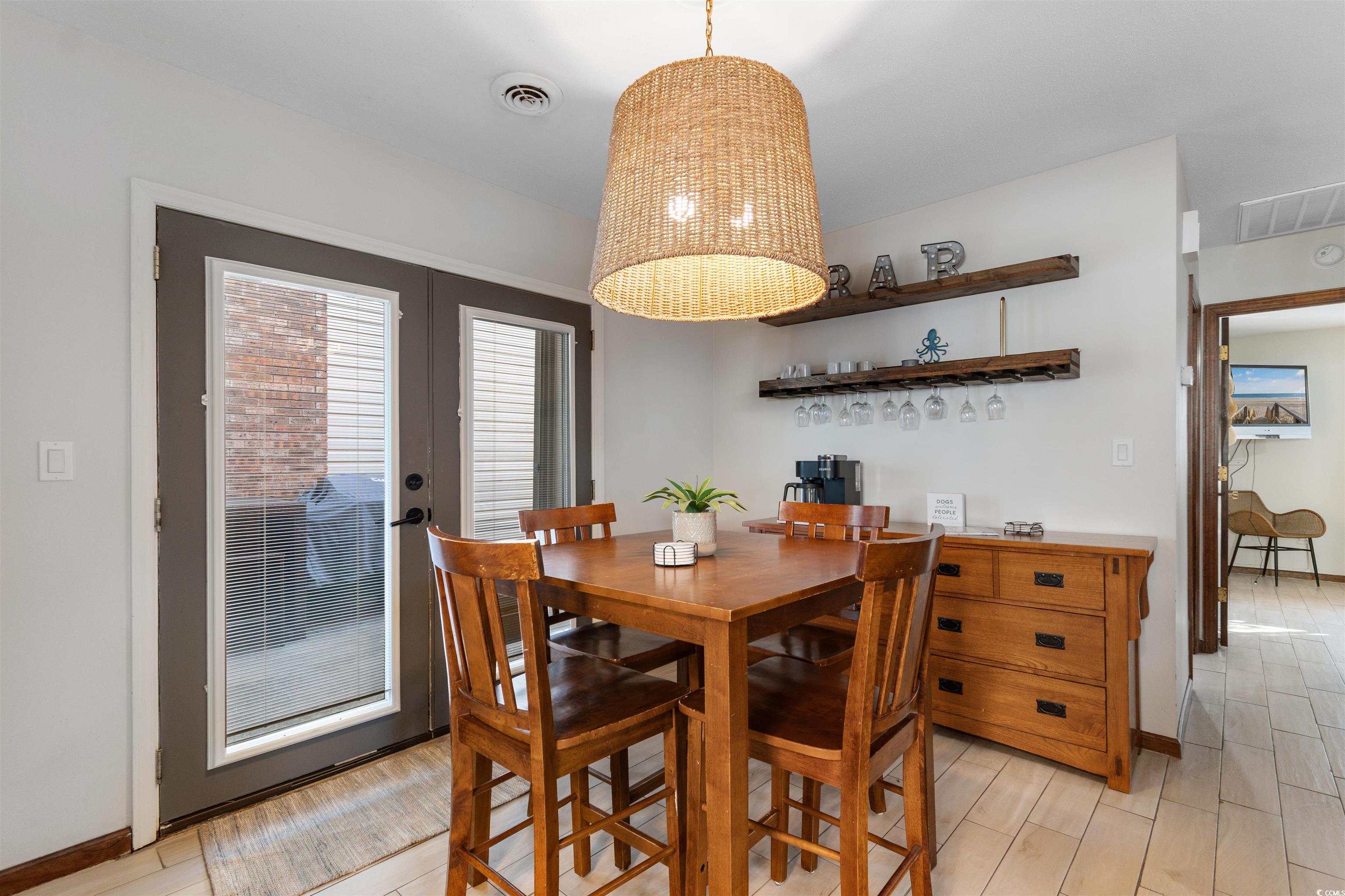 Welcome to The Lobster House - a charming coastal retreat just blocks from the ocean in the highly desirable Crescent Beach area! This home is perfect as a primary residence, vacation getaway, investment property with excellent rental history or 1031 Exchange. The kitchen features granite countertops, a bar seating area, and stainless steel appliances. The main living area offers beautiful tile flooring and a cozy fireplace, leading out to a private patiocomplete with an outdoor shower, perfect after a day at the beach! Upstairs, youll find two bedrooms with queen beds and bunk beds, along with a private balcony for relaxing in the ocean breeze. A first-floor bedroom adds convenience and flexibility. Golf cart-friendly community with easy beach access makes this an ideal spot to enjoy the coastal lifestyle.