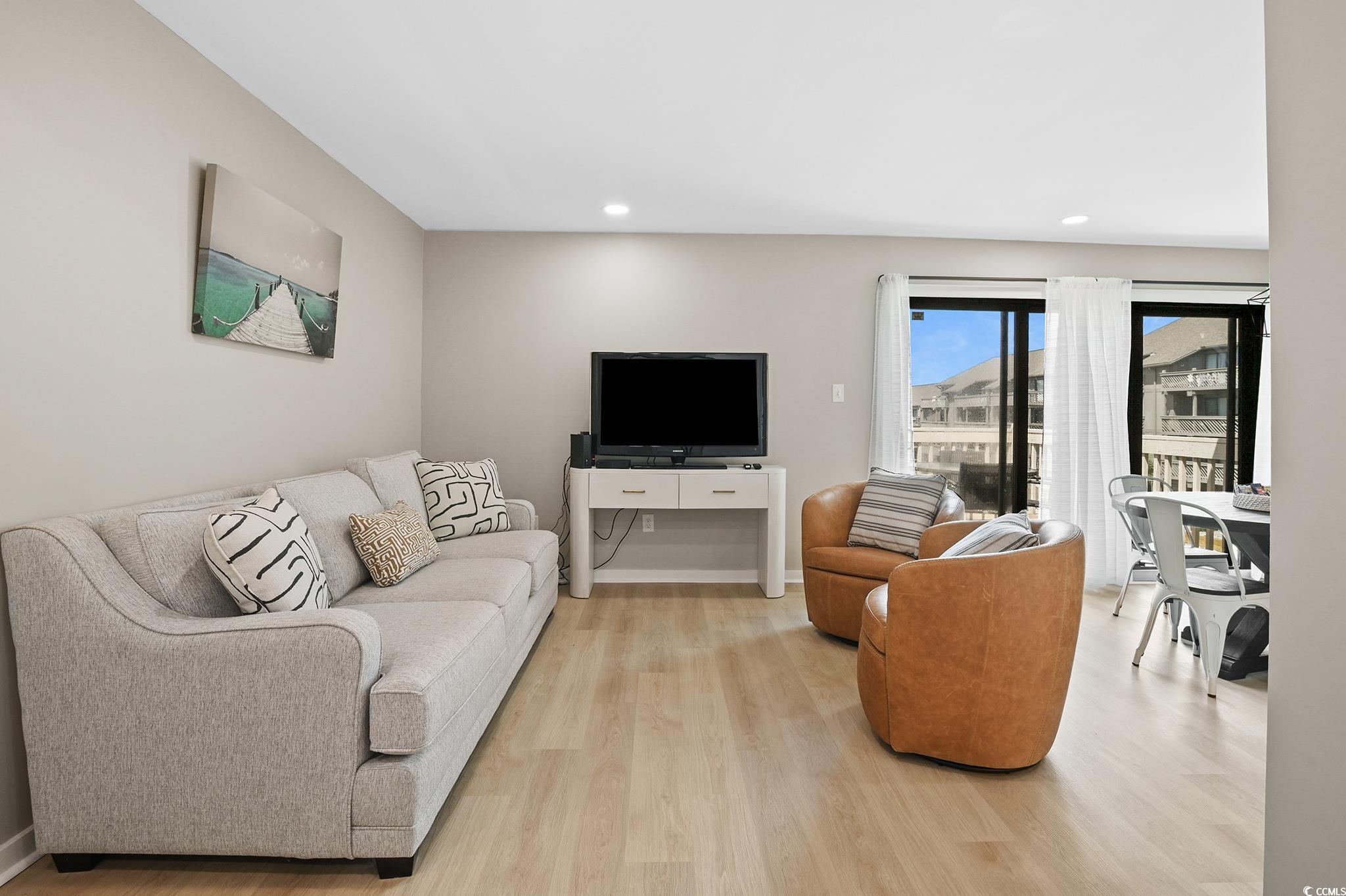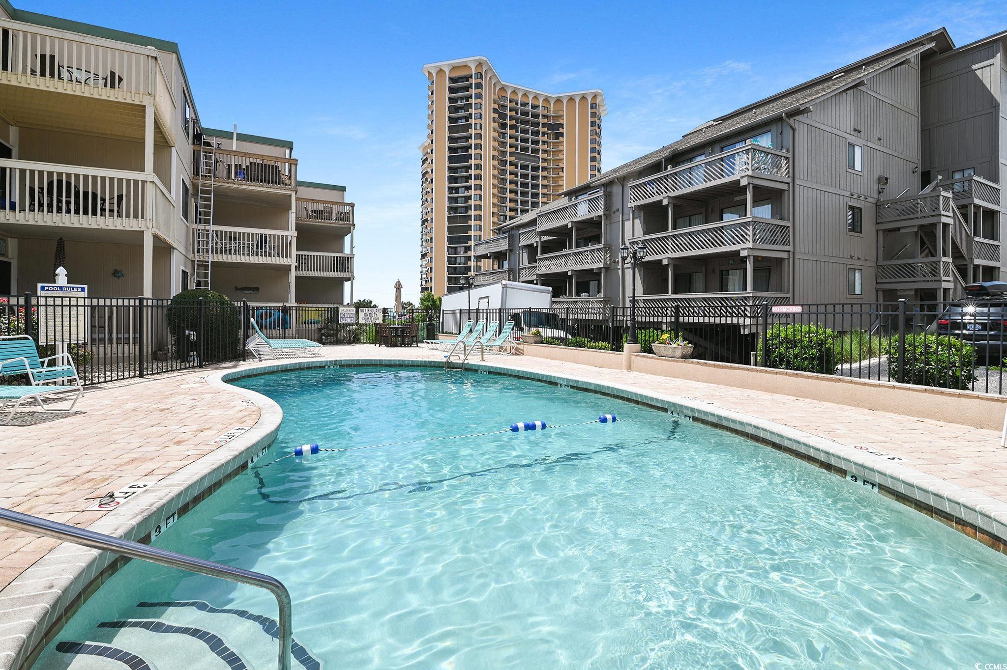 Welcome to your beautifully remodeled coastal retreat just steps from the shores of Myrtle Beach. This 2-bedroom, 2-bath condo offers 924 sq. ft. of thoughtfully updated living space with modern finishes, stylish dcor, and a relaxing seaside vibe. Being sold fully furnished and move-in ready. The open-concept living area features new flooring, fresh paint, updated lighting, and contemporary coastal furnishings. The living room opens to a private balcony overlooking the community pool. The remodeled kitchen includes sleek countertops, stainless steel appliances, ample storage, and a new 2024 water heater. The primary suite offers a king bed, private en-suite bath, and updated finishes. The second bedroom includes two full beds and comfortably accommodates up to four guests. Additional features include an in-unit washer and dryer, free Wi-Fi, and convenient on-site parking. New roof in 2025 - PAID IN FULL. Painted the exterior stairs and railing - PAID IN FULL. Located in a quiet, well-kept community just minutes from the beach. Close to Apache Pier, Barefoot Landing (10 minutes), Tanger Outlets (5 minutes), top golf courses, restaurants, entertainment, and Myrtle Beach International Airport (22 minutes). Looking for a second home, investment property or rental don't look any further!!