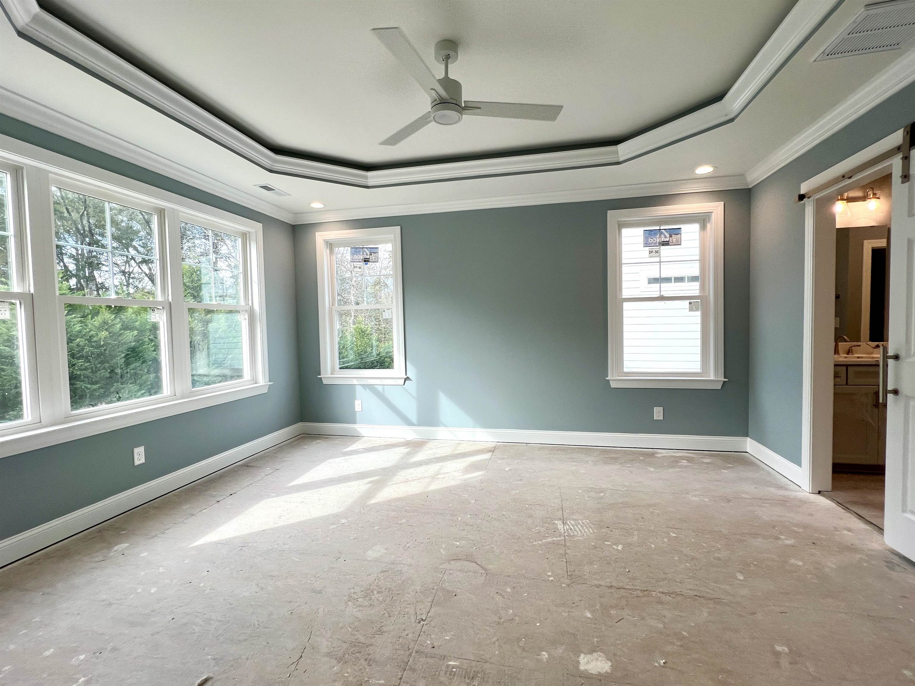 PrimaryBedroom: TrayCeilings, CeilingFans, LinenCloset, WalkInClosets