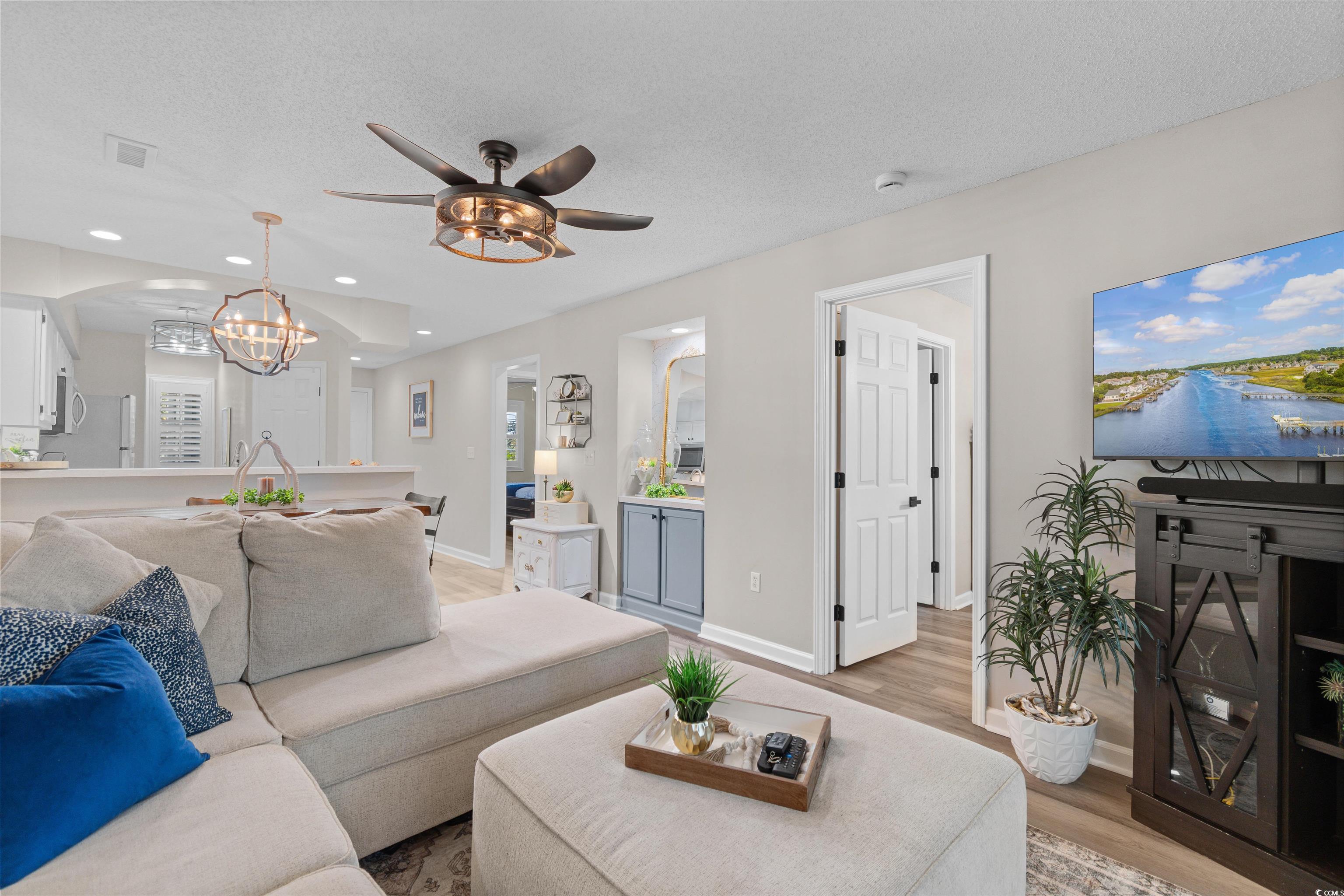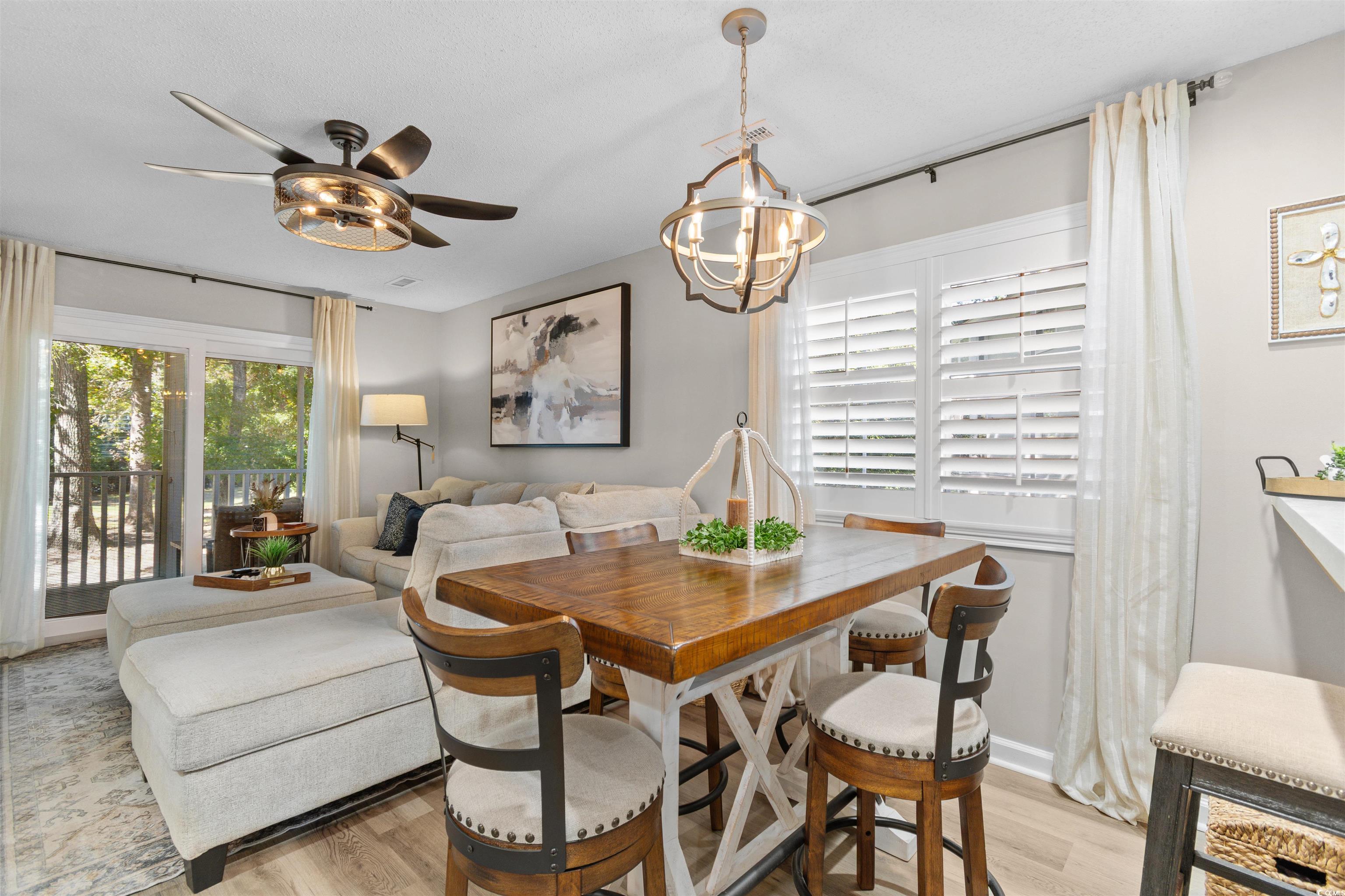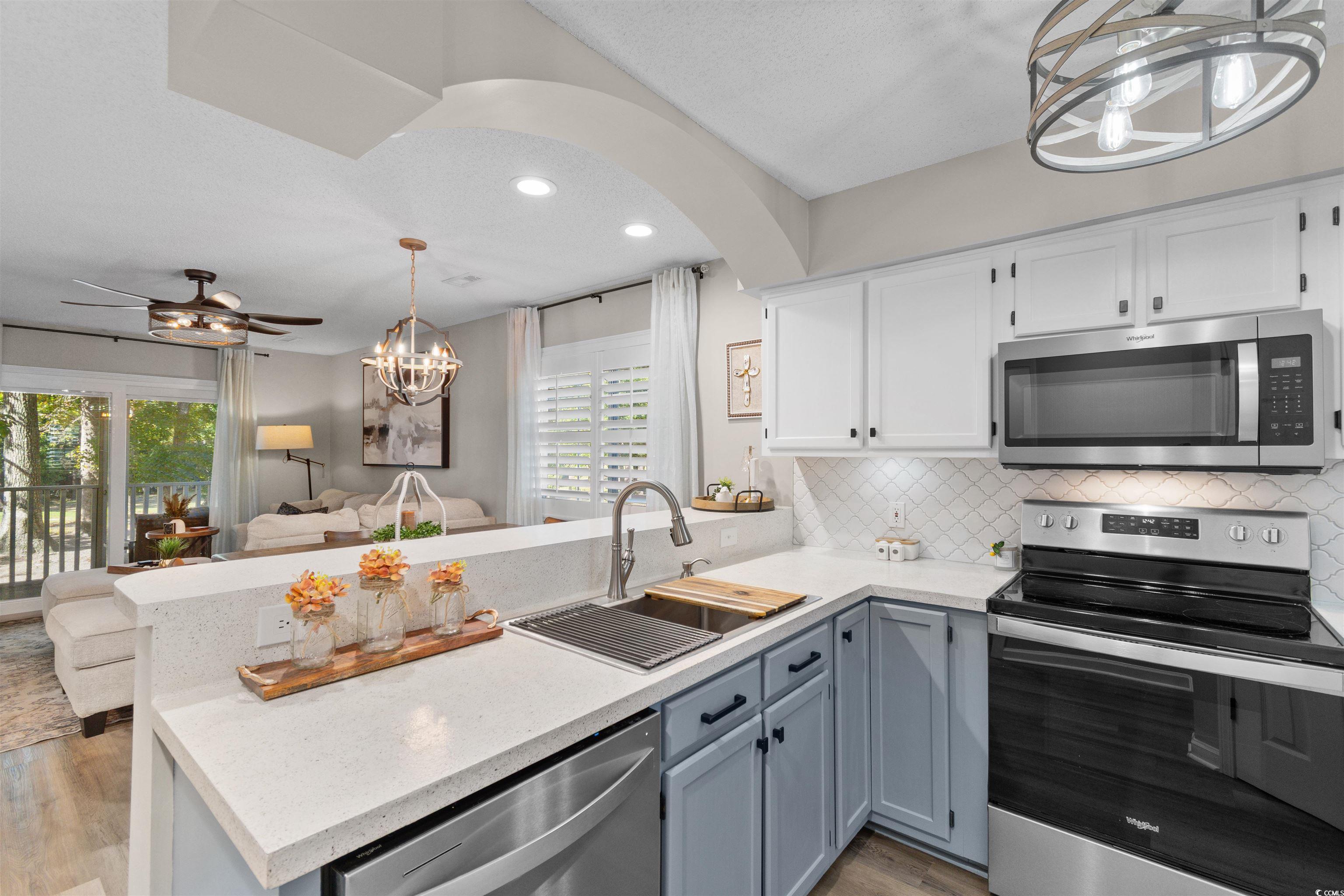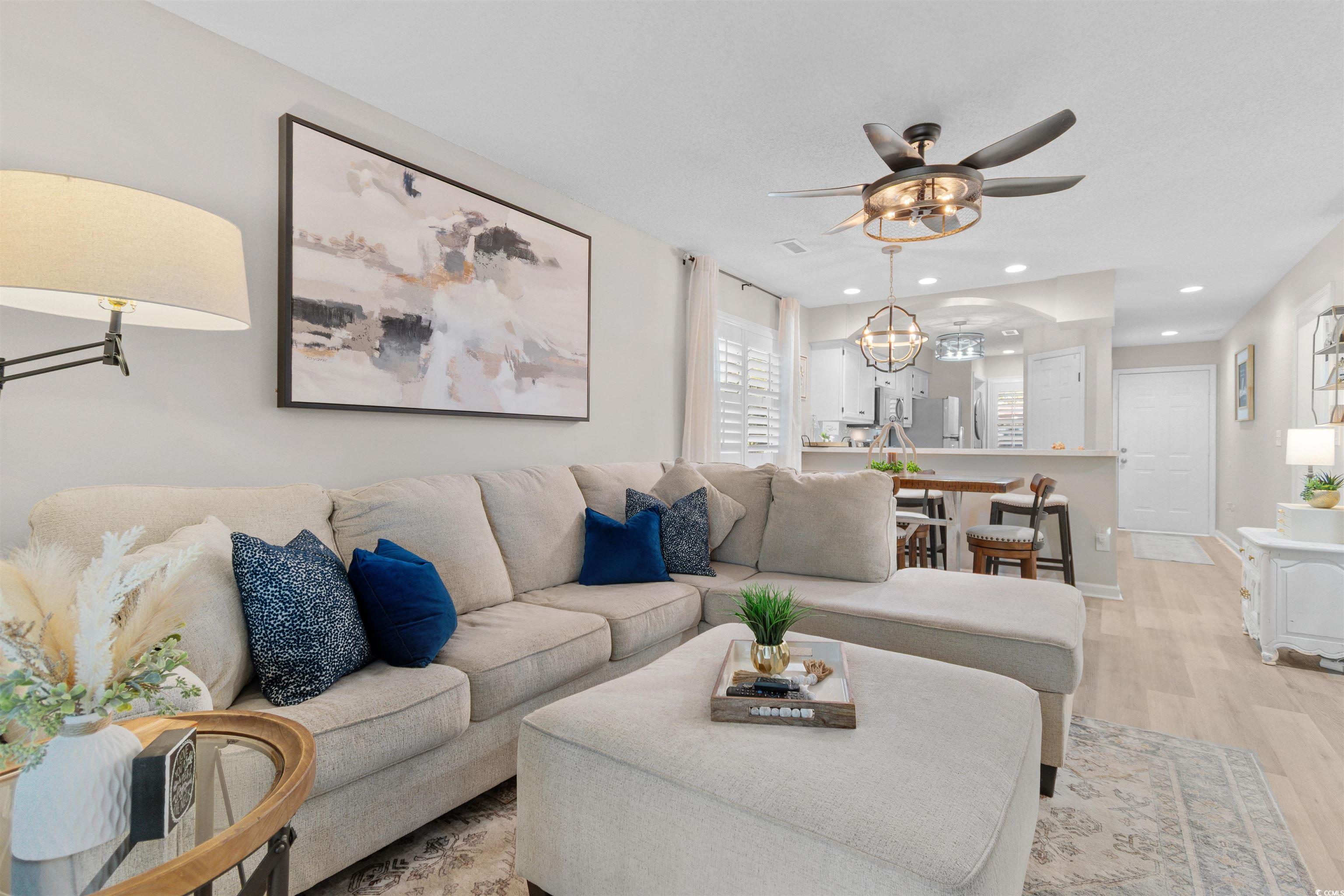Your perfect coastal retreat awaits in this charming 2-bedroom, 2-bathroom condo in the desirable Spinnaker Bay community of Little River. This beautifully maintained unit features LVP flooring throughout and an open, spacious floor plan ideal for relaxing or entertaining. The kitchen offers Whirlpool stainless steel appliances, a breakfast bar, and a dining area, plus a brand-new LG WashTower (Sept 2025) for added convenience. Additional upgrades include a new HVAC (April 2025), new sliding glass door (June 2025), and new ceiling fans and lighting throughout. Each bedroom includes a ceiling fan, ample closet space, and access to its own bathroom, while plantation shutters add timeless coastal appeal. Enjoy peaceful afternoons on your screened-in balcony overlooking the golf course tee box and Intracoastal Waterway views. Residents enjoy two community pools and a friendly neighborhood atmosphere. Conveniently located near the Grand Strands best dining, shopping, golf, and beaches, this condo is perfect as a primary residence, vacation getaway, or investment property. Furniture is negotiable--making it truly move-in ready! Schedule your showing today! Be sure to ask your agent for a full list of upgrades.