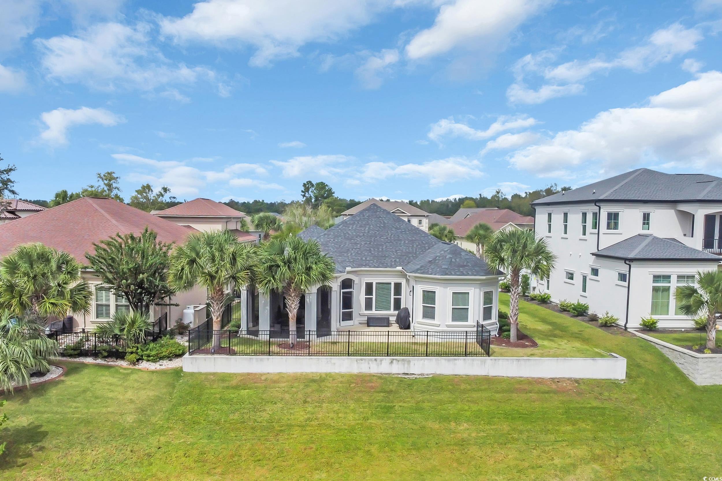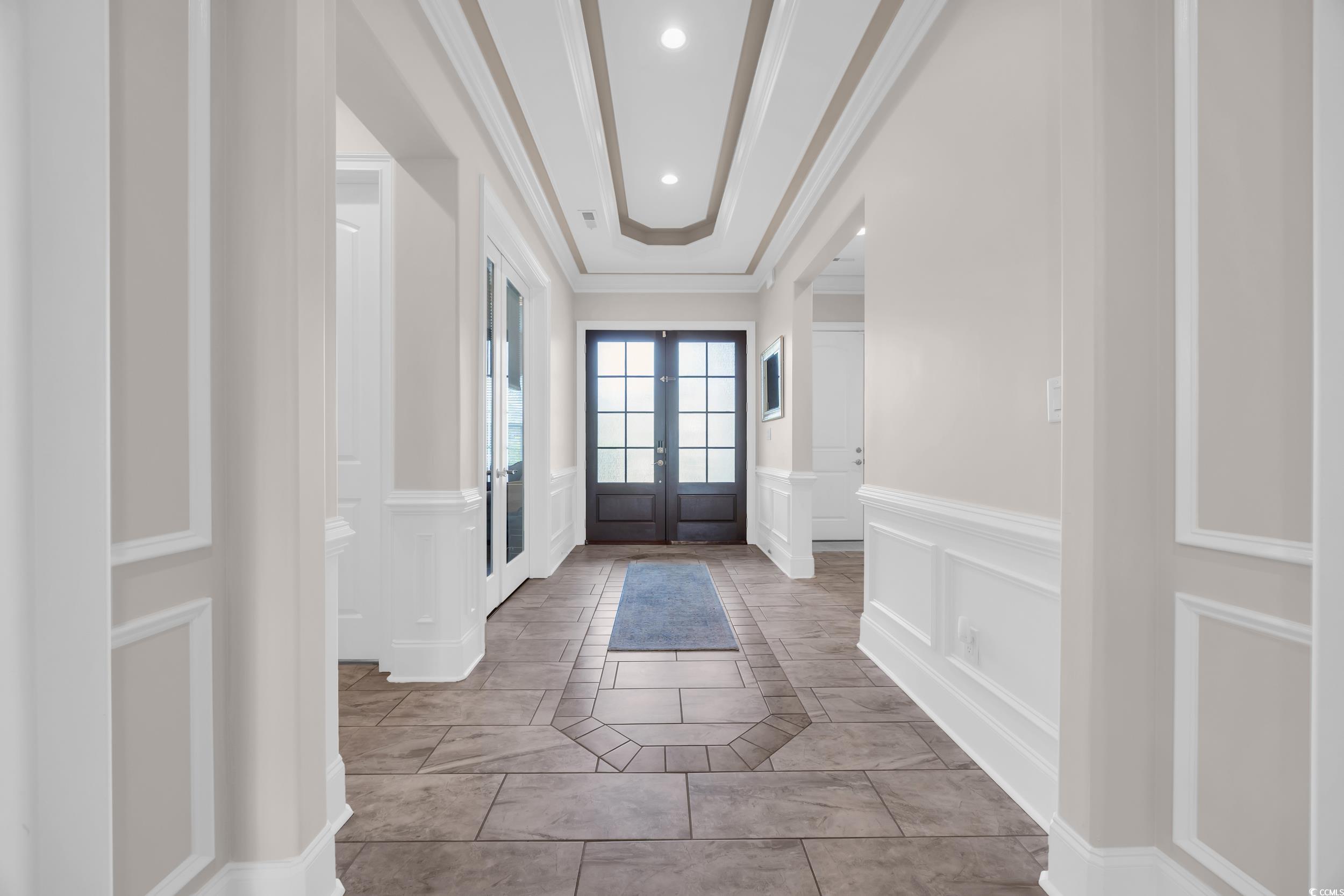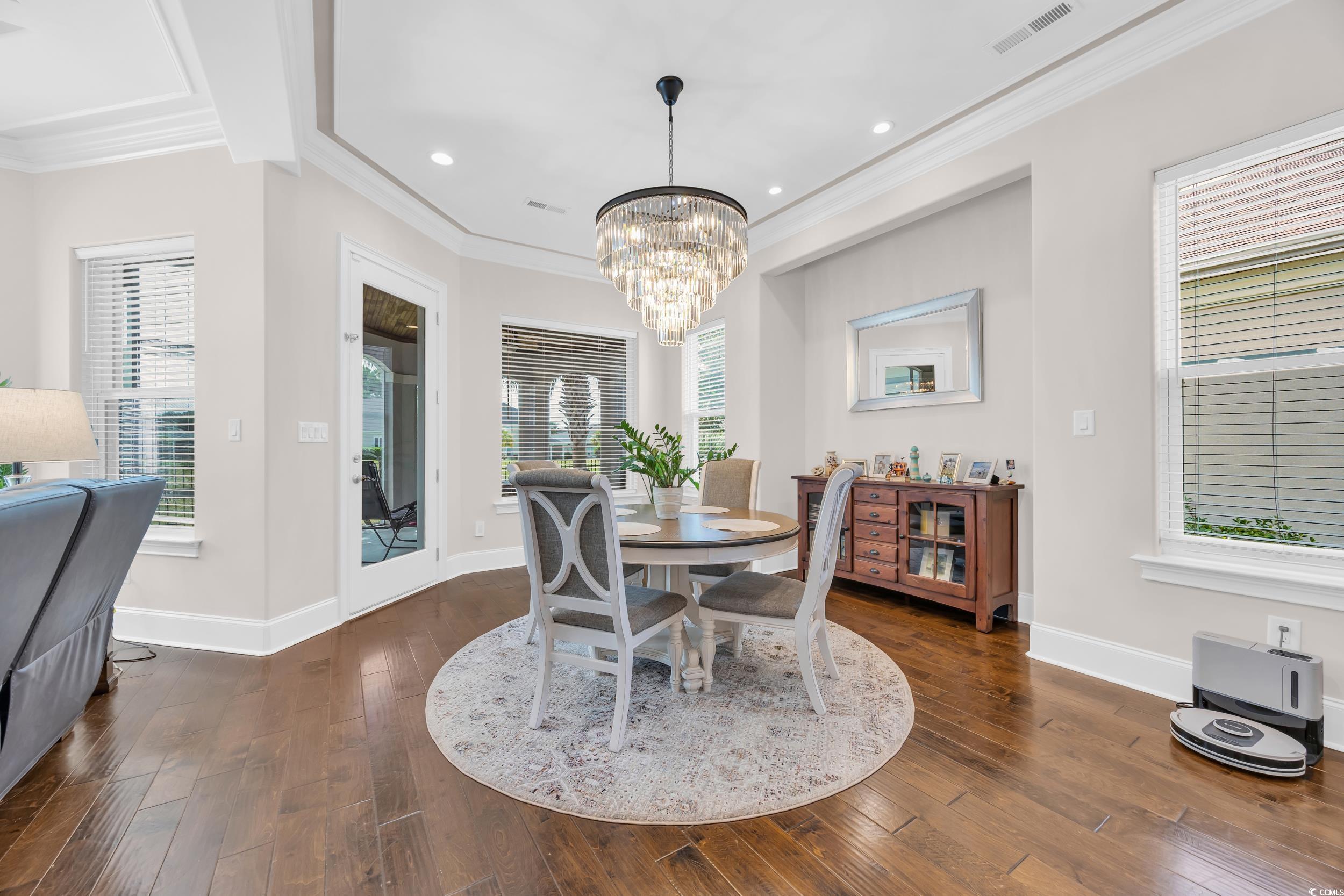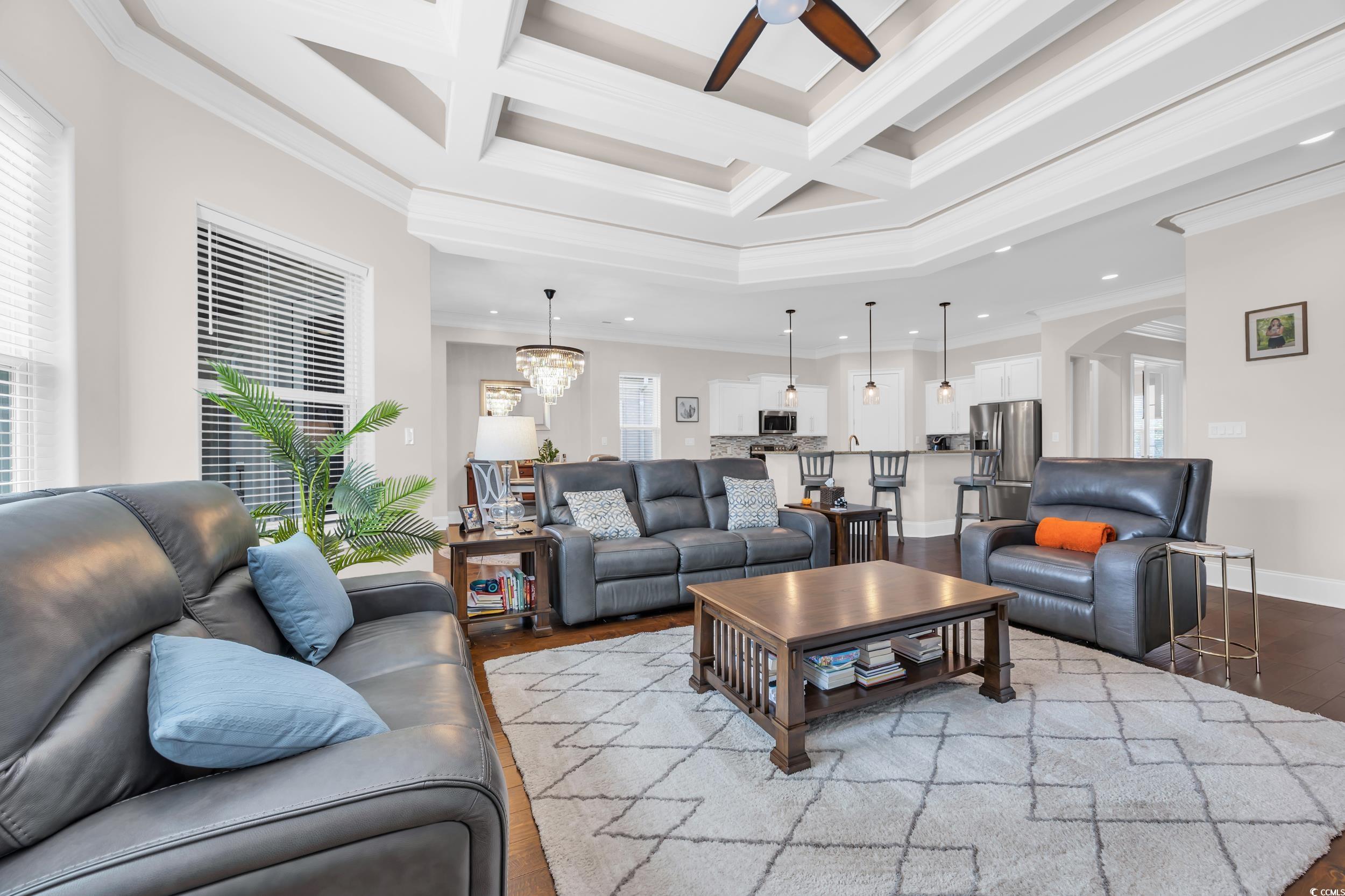 Four bedroom Mediterranean ranch with a three car garage and a tranquil pond view in The Bluffs on the Waterway, a gated community known for first class amenities including two elegant clubhouses, a resort style pool, private boat launch and day docks, boat and RV storage, tennis and pickleball, playground, and walking trails just minutes from the beach. This amenity rich lifestyle sets the tone the moment you arrive, promising everyday relaxation and effortless entertaining. Inside, the open concept great room flows into a chefs kitchen with granite countertops, stainless appliances, and a tile backsplash, while wide plank flooring, plantation shutters, custom lighting, and crown molding elevate every space. The owners suite pampers with a walk in shower and dual vanities, and a flexible office or bonus room offers abundant storage. Ideally located near Carolina Forest golf, shopping, dining, medical services, and the airport, this home is move in readybring your boat and start living the Waterway dream.Move in ready and golf cart friendly, so bring your boat and start living the Waterway dream!