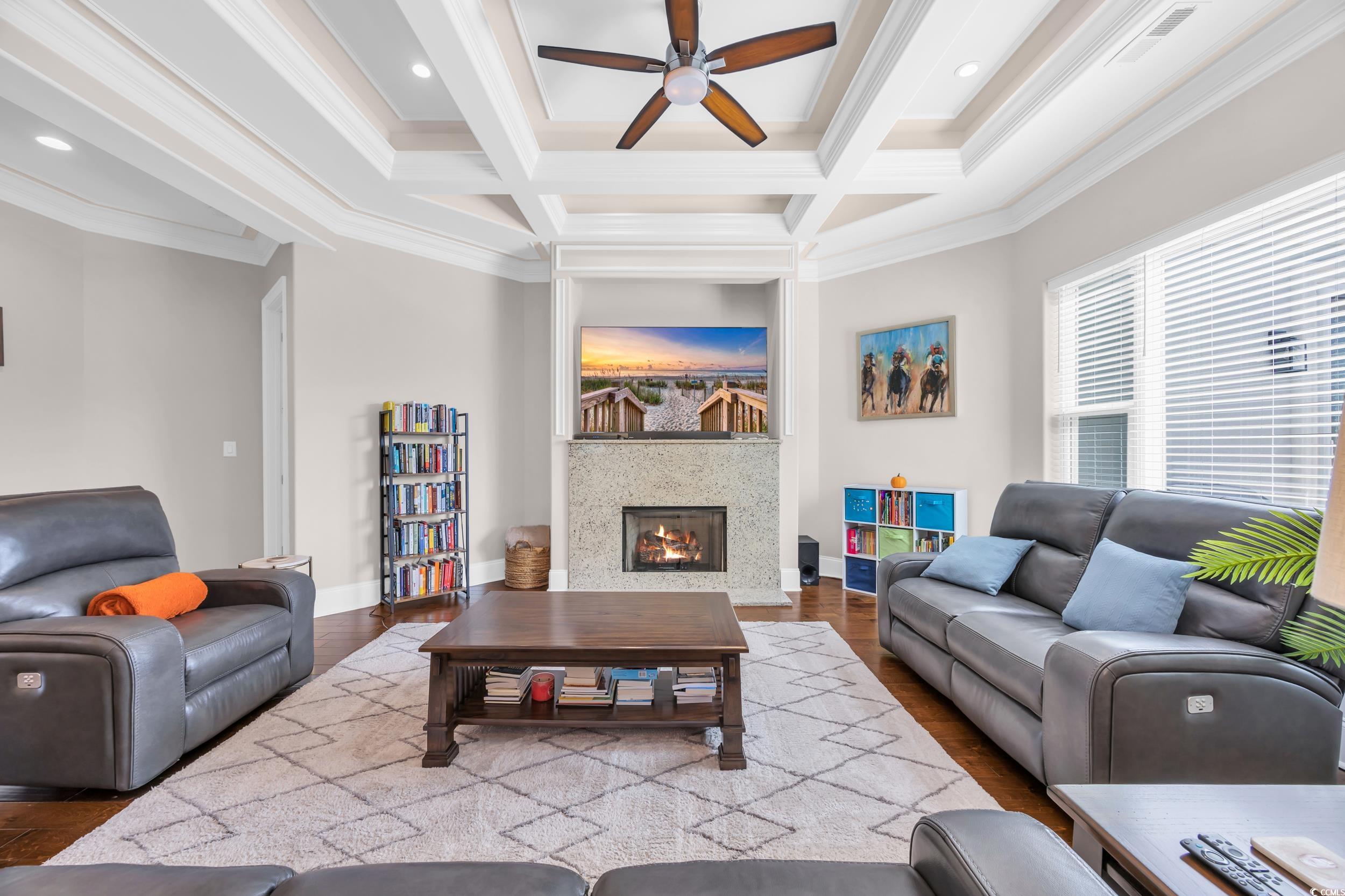 FamilyRoom: TrayCeilings, CeilingFans, Fireplace