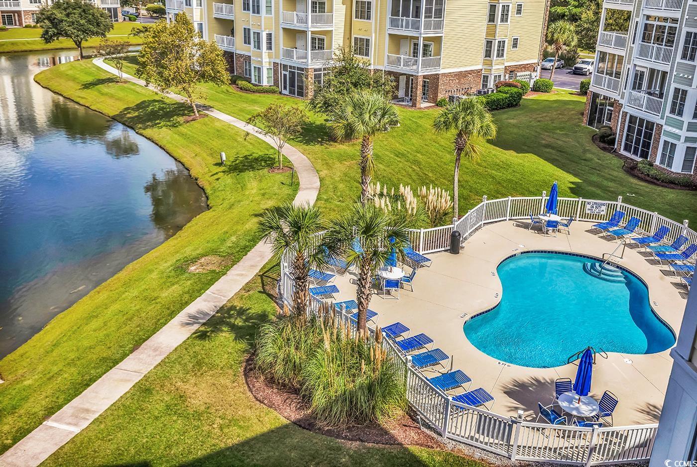 Rare Top-Floor 2BR/2BA Fully Furnished Condo with Water View. Take the elevator right to your front door and step into this exceptional condo at 4812 Magnolia Lake Drive #403. From the moment you enter, youll be greeted by the vaulted ceilings and an open floor plan that create a bright, grand feeling. The large kitchen is designed for convenience and style, featuring abundant cabinet and counter space along with a breakfast barperfect for casual meals or entertaining. The kitchen flows seamlessly into the dining area, where family and friends can gather after enjoying all that the Grand Strand has to offer. Relax and unwind in the spacious living room with cathedral ceilings, an inviting space for year-round comfort. Both bedrooms are generously sized, with the primary suite boasting a massive walk-in closet plus an additional closet, as well as a double-sink vanity in the en-suite bath. Step out onto your private balcony to take in the beautiful water viewsthe perfect spot to sip your favorite beverage after a day at the beach or on the golf course. Magnolia Pointe provides an array of amenities for its residents and guests, including multiple pools, grilling stations, a clubhouse, and scenic walking trails. Youll love the unbeatable locationjust five minutes from some of the areas best beaches, with attractions like Broadway at the Beach, Barefoot Landing, world-class dining, entertainment, golf, and the Myrtle Beach International Airport only a short drive away. Dont miss this rare opportunity to make 4812 Magnolia Lake Drive #403 your new home at the beach!