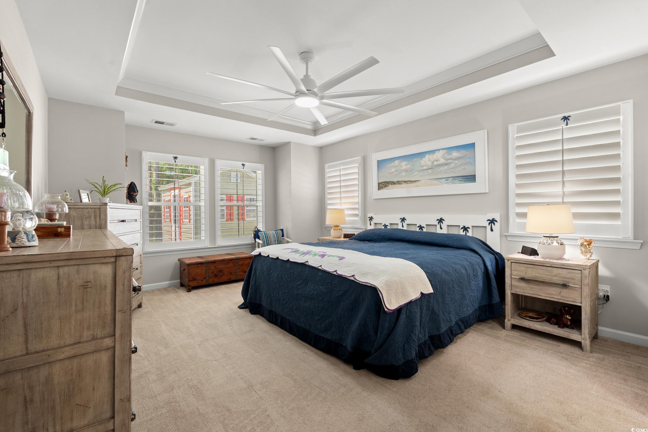 PrimaryBedroom: TrayCeilings, CeilingFans, LinenCloset, WalkInClosets