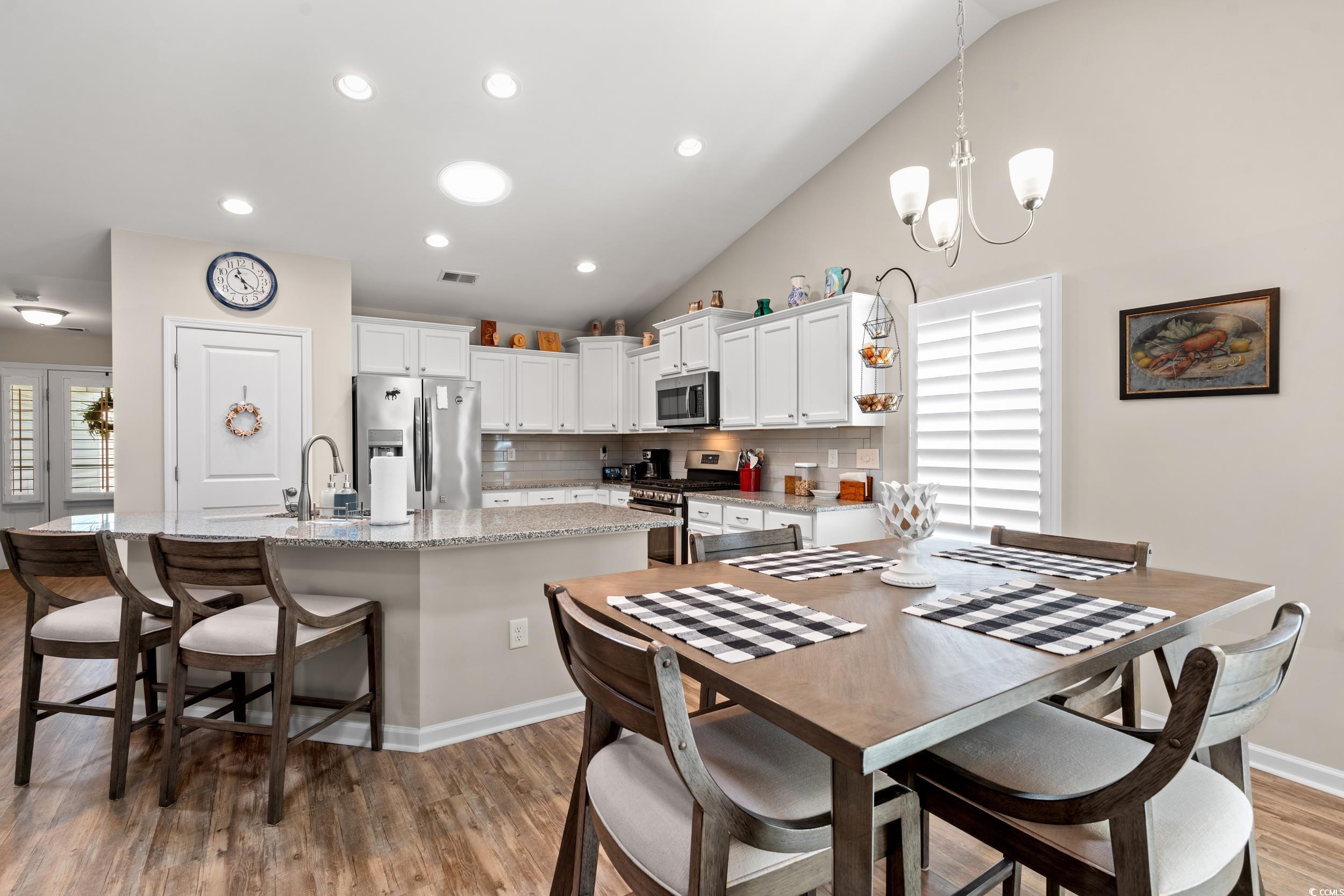 Beautifully upgraded home in the sought-after Park Pointe community, just minutes from North Myrtle Beach. The fully upgraded kitchen features stainless steel appliances, a natural gas stove, touchless faucet, and custom cabinetry with clever storage. The open living area offers skylights, plantation shutters, and a marble gas fireplace. The master suite includes a trayed ceiling, walk-in closet, and upgraded bath with tile flooring. Enjoy outdoor living with a outdoor entertainment area that allows for great gatherings, fenced backyard, stone pathways, and a whole-house generator. Smart home features include WiFi-enabled garage doors, thermostat, and tankless water heater. The epoxy-finished garage and widened driveway add function and style. Low HOA with pool, clubhouse, and friendly neighborscoastal comfort and convenience at its best.