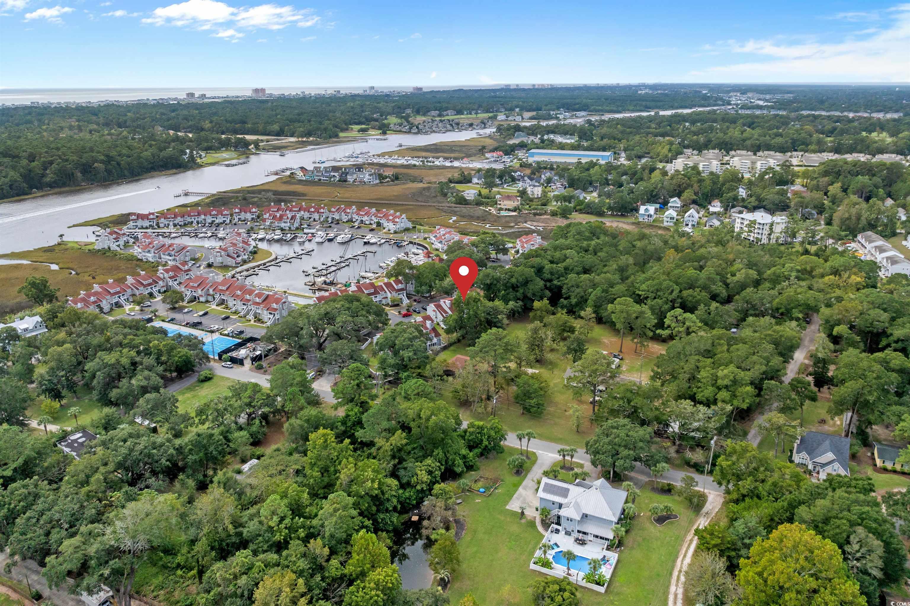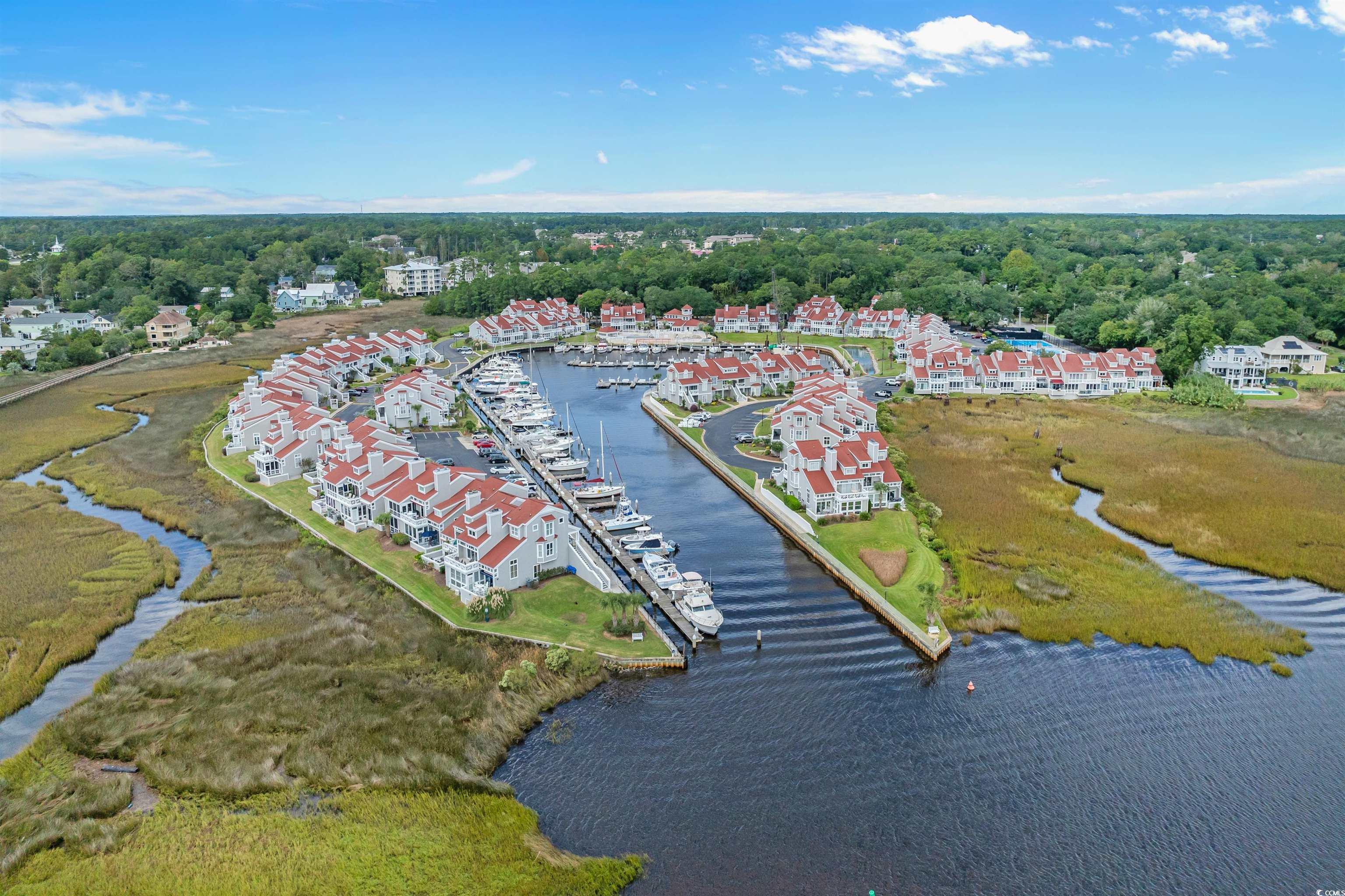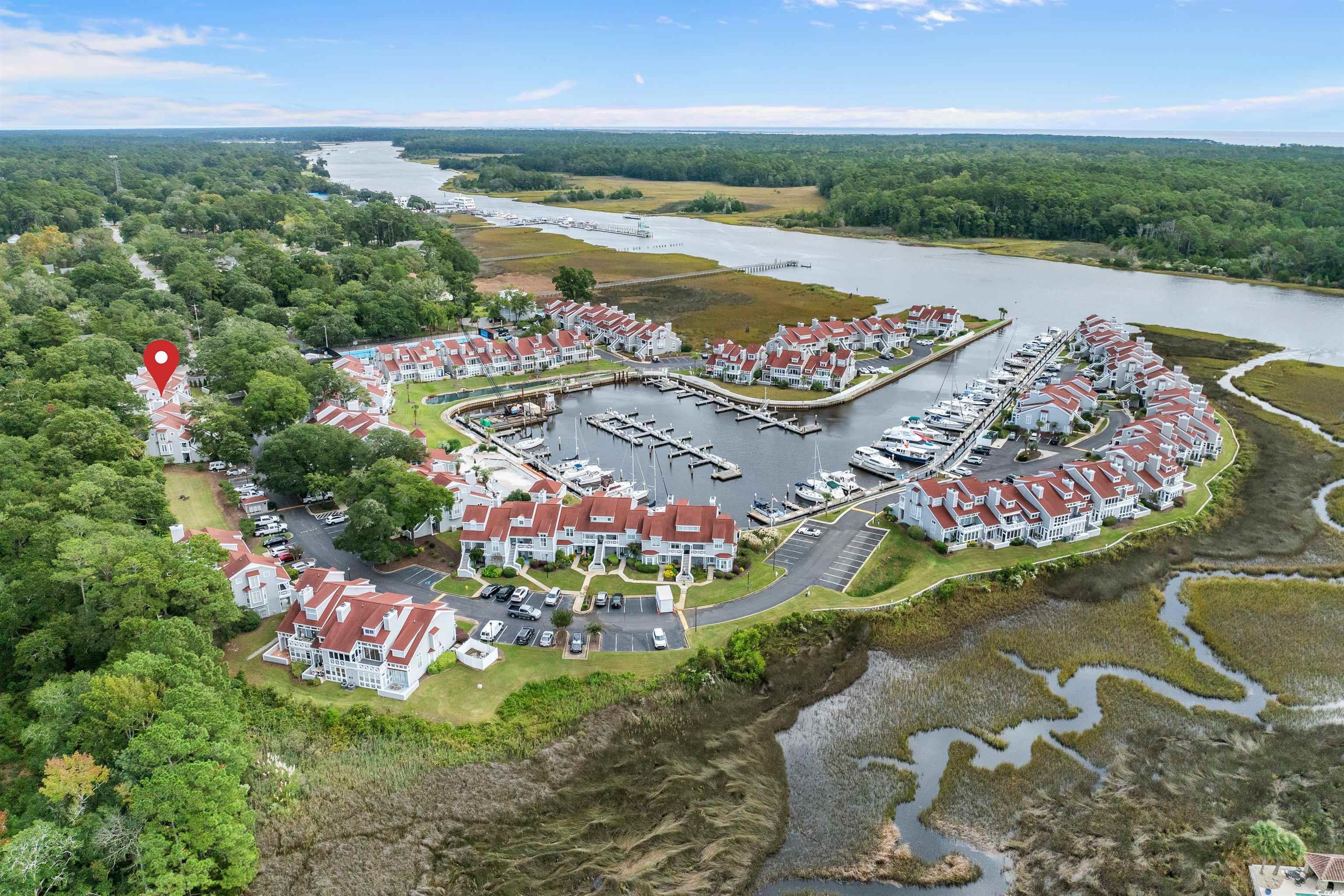 This townhouse style condo within Mariners Pointe, a gated Nantucket style community nestled among huge oak trees near Little River's historic waterfront fishing village & bordering the Intracoastal waterway is full of charm & spaciousness. The upstairs loft has been converted into the 3rd bedroom & there is a 2nd bedroom & bath upstairs as well. A fenced in patio allows for privacy, fresh air & space for fun family & friends entertaining, or intimate outdoor dining under the stars! There is easy access to the adjacent Carolina Room and Living Room with cozy fireplace! Roomy primary bedroom with dressing area & bathroom with large corner tub and walk-in shower are on first floor. Galley style kitchen has convenient pass thru to dining area. Breakfast area with windows provides cheerful sunny start to your day! For the boating enthusiast, boat slips may be available for separate purchase. Tennis, pickleball & basketball courts for your pleasure now as well as a newly renovated swimming pool coming in Spring 2026. Residents enjoy fun social events in the lovely community clubhouse overlooking the marina. Come live the Mariners' lifestyle in this beautiful waterway setting with SC & NC beaches just a few miles drive away! NOW is time to buy!