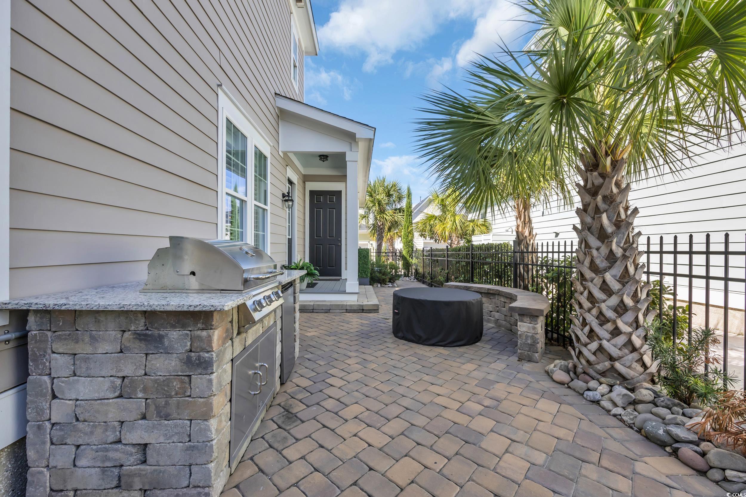 This charming 2 bed 2.5 bath Lowcountry home offers relaxed coastal living with two spacious covered porches perfect for morning coffee or evening cocktails. The open floor plan is ideal for entertaining, featuring a beautifully appointed kitchen with granite countertops, custom maple cabinetry, and sleek slate appliances. Step outside to your private oasis, complete with a gas firepit for cozy evenings under the stars and a built-in outdoor kitchen that makes al fresco dining a breeze. The owners suite is a true retreat, offering a private covered balcony, dual granite vanities, and a luxurious walk-in tile shower. An attached two car garage adds convenience and makes beach parking easy. All of this just steps from the sand and some of the areas finest restaurants, shops, and local attractions the best of coastal living is right at your doorstep.