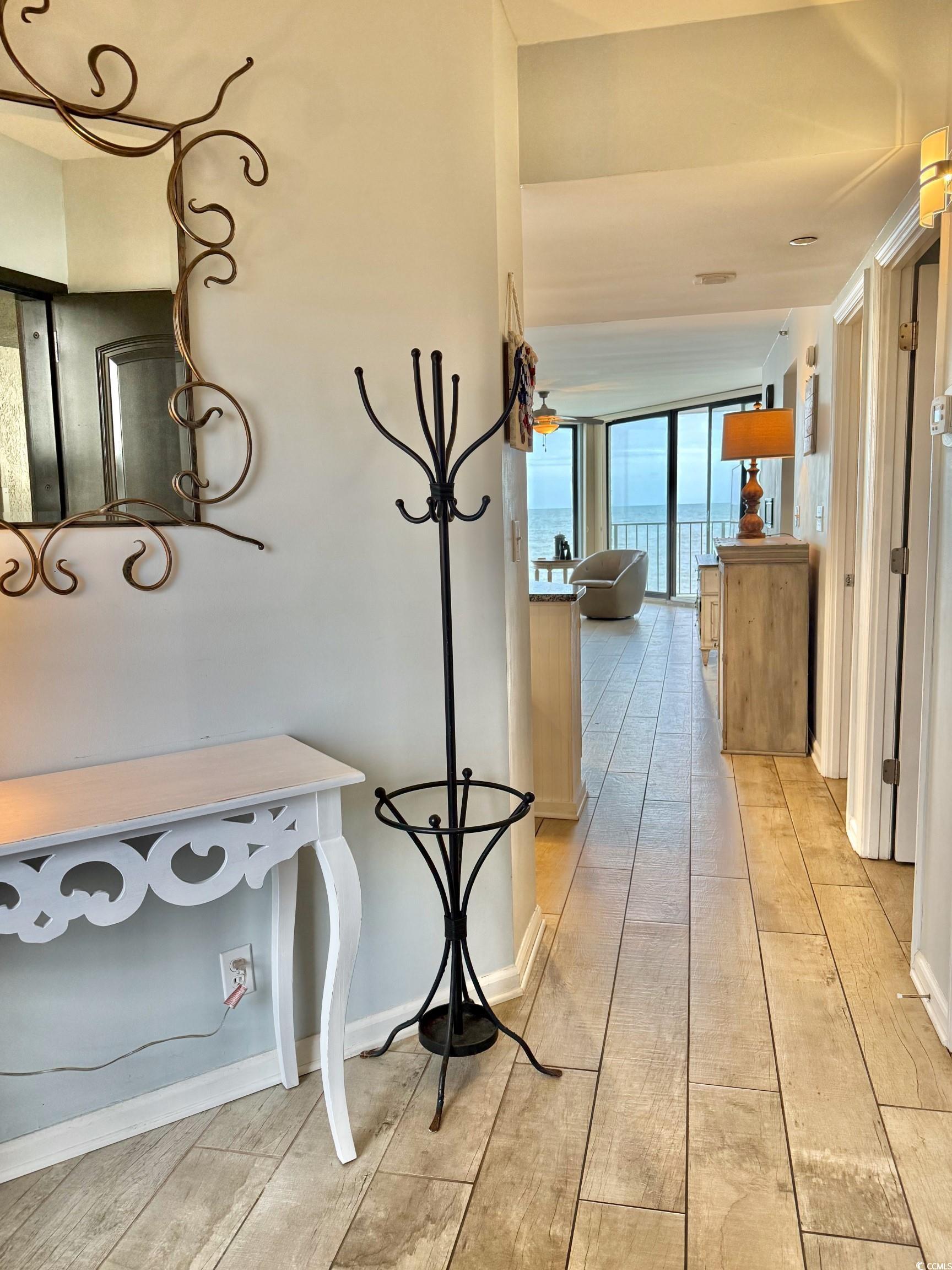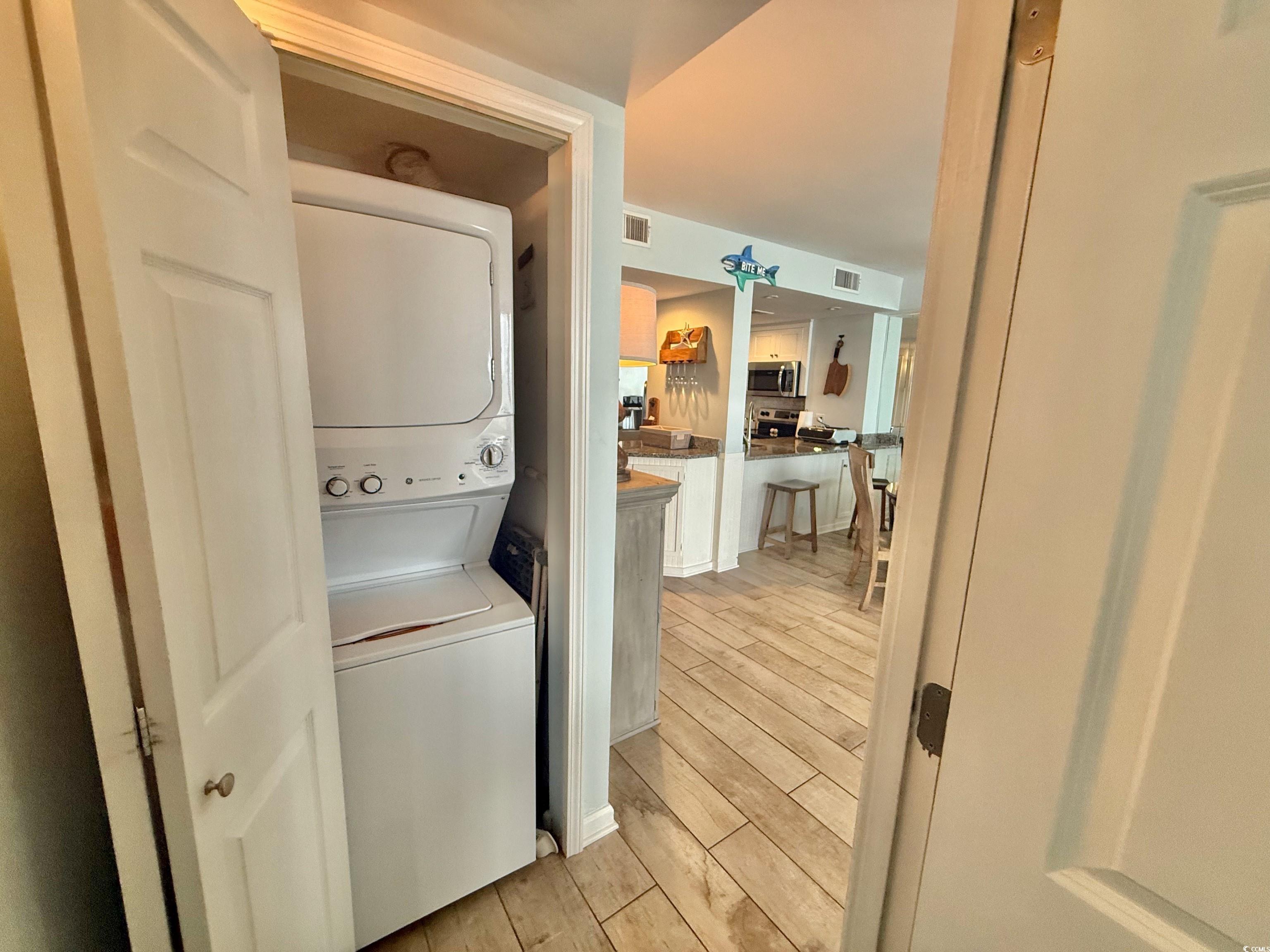 Beautifully renovated direct oceanfront two-bedroom, two-bathroom condo in One Ocean Place in Garden City. Enjoy stunning panoramic ocean views the moment you walk in. Open floor plan with V-shaped glass wall, wood-look tile throughout, smooth ceilings and updated kitchen with white shaker cabinets, granite counters, island, and stainless steel appliances. The living room and primary bedroom have remote controlled electric blinds. The primary oceanfront suite has a balcony access, a walk-in tiled shower, and ocean views from the bathroom. The second bedroom can hold two double beds and has access to the hall bath with a large tiled walk-in shower. One Ocean Place offers two elevated pools, hot tubs, an owner's lounge, and a fitness center. Well-managed building in the desirable ""family beach"" area - perfect for primary residence, second home, or investment.