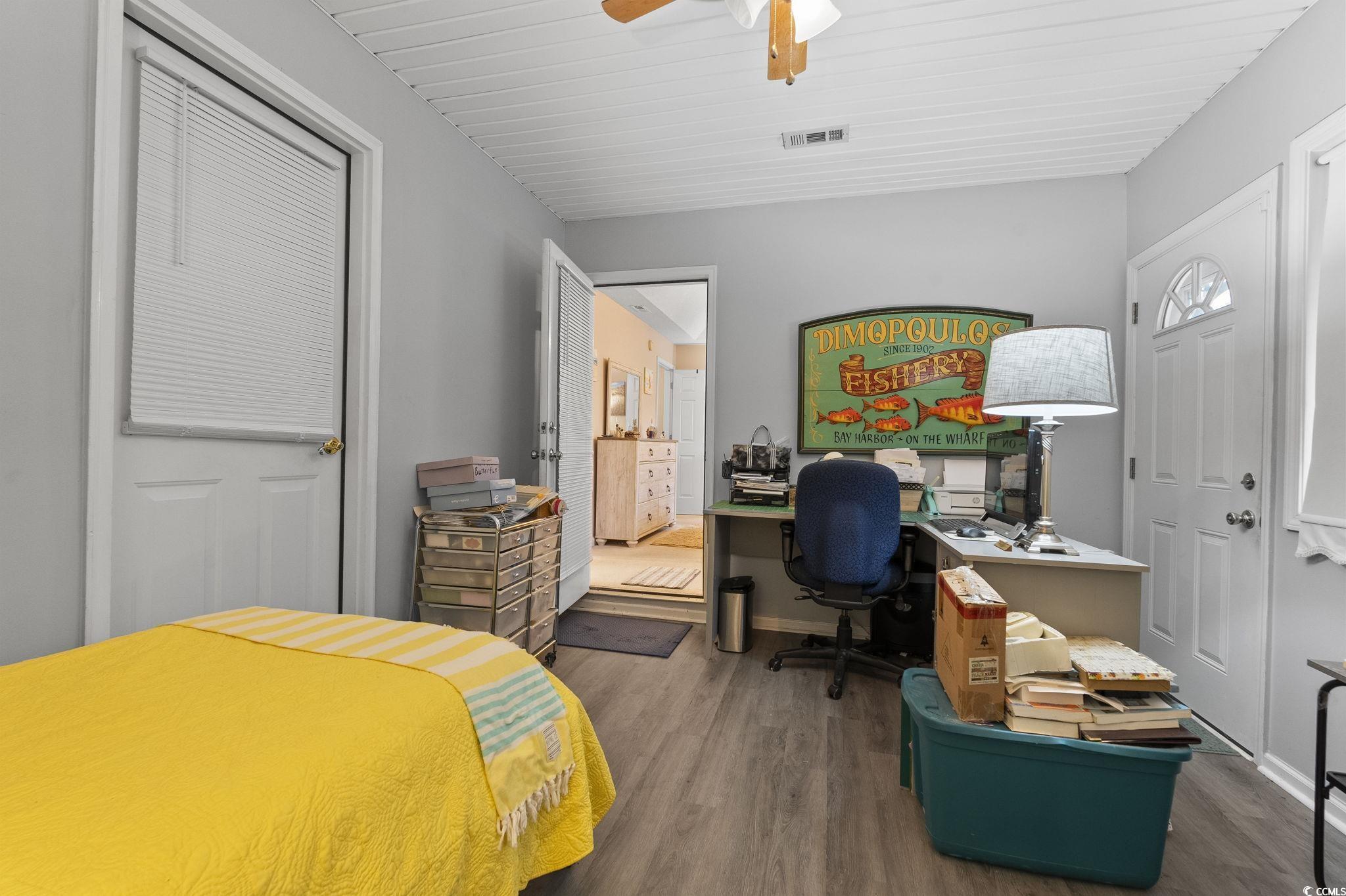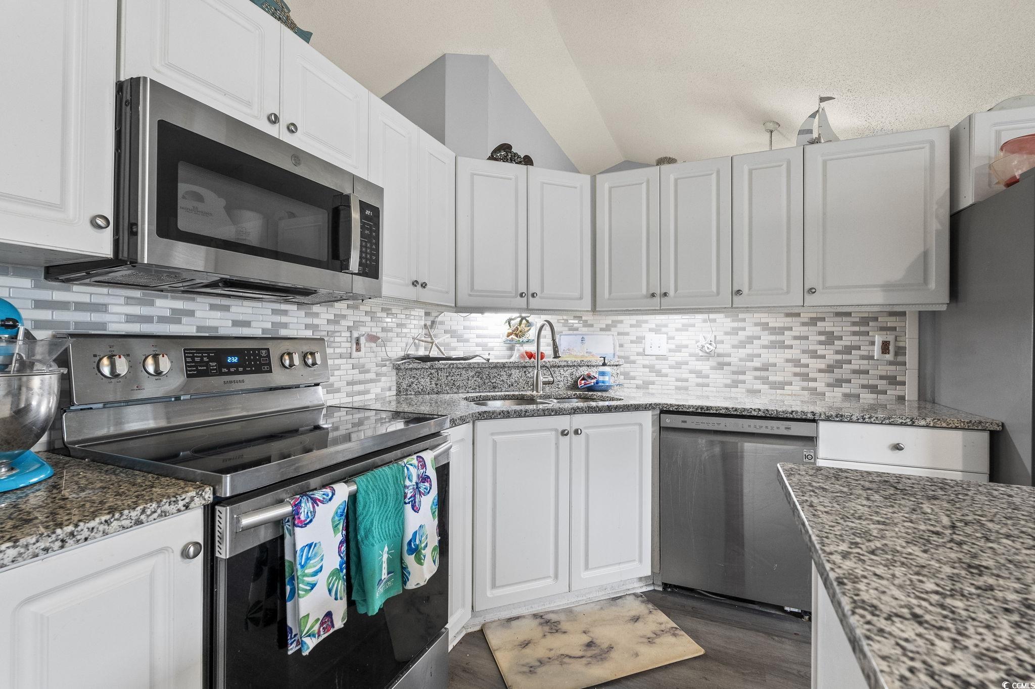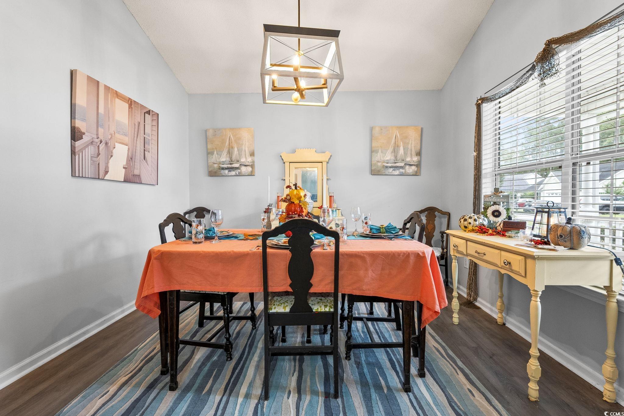 Thoughtfully designed for everyday living, affordable entry into homeownership, perfect for downsizing! This beautifully maintained single-level home offers a bright, open layout with coastal charm throughout. The spacious living room features vaulted ceilings, neutral tones, and abundant natural light - an ideal space for relaxing or gathering. The kitchen is designed for both style and functionality with granite countertops, stainless steel appliances, tile backsplash, and a large peninsula with bar seating that opens seamlessly into the main living area. The split-bedroom floor plan provides privacy, with the primary suite featuring a tray ceiling, walk-in closet, and private en-suite bath. Two additional bedrooms are perfect for guests, or a home office, offering flexible options to suit your lifestyle. A bright sunroom extends the living space and opens to a covered patio, ideal for outdoor dining or morning coffee. The fenced backyard includes a storage shed - great for tools, outdoor equipment, beach chairs, and coolers. Out front, a welcoming porch framed by mature landscaping creates a perfect spot to relax and enjoy the coastal breeze. This home is ideally located just a short drive to Market Common, golf courses, restaurants, water sports, entertainment, and the Murrells Inlet MarshWalk - plus the beautiful Atlantic beaches. If you've been searching for a convenient, low-maintenance lifestyle close to everything the Grand Strand has to offer, this is the one. Square footage is approximate and not guaranteed. Buyer is responsible for verification.