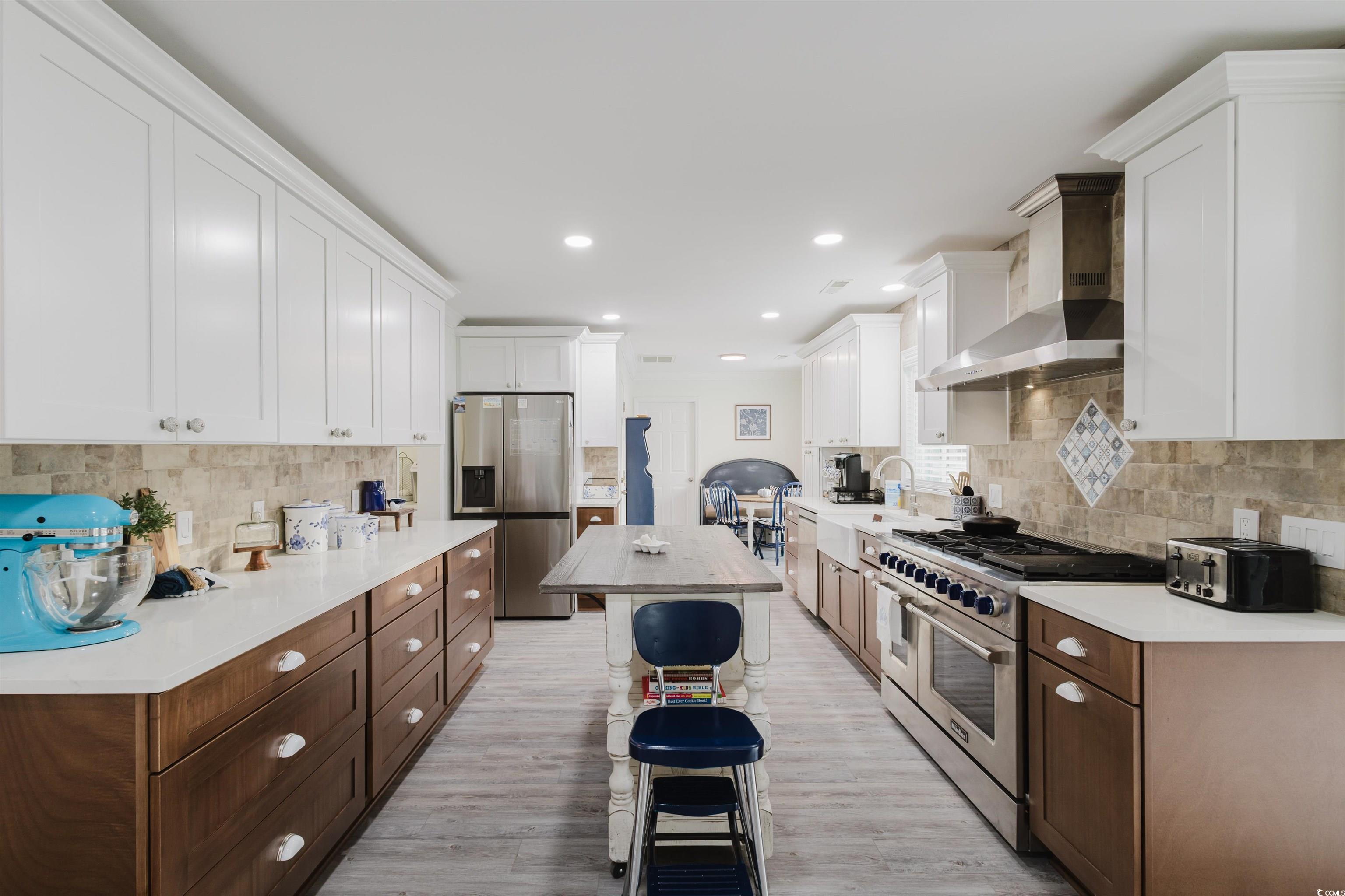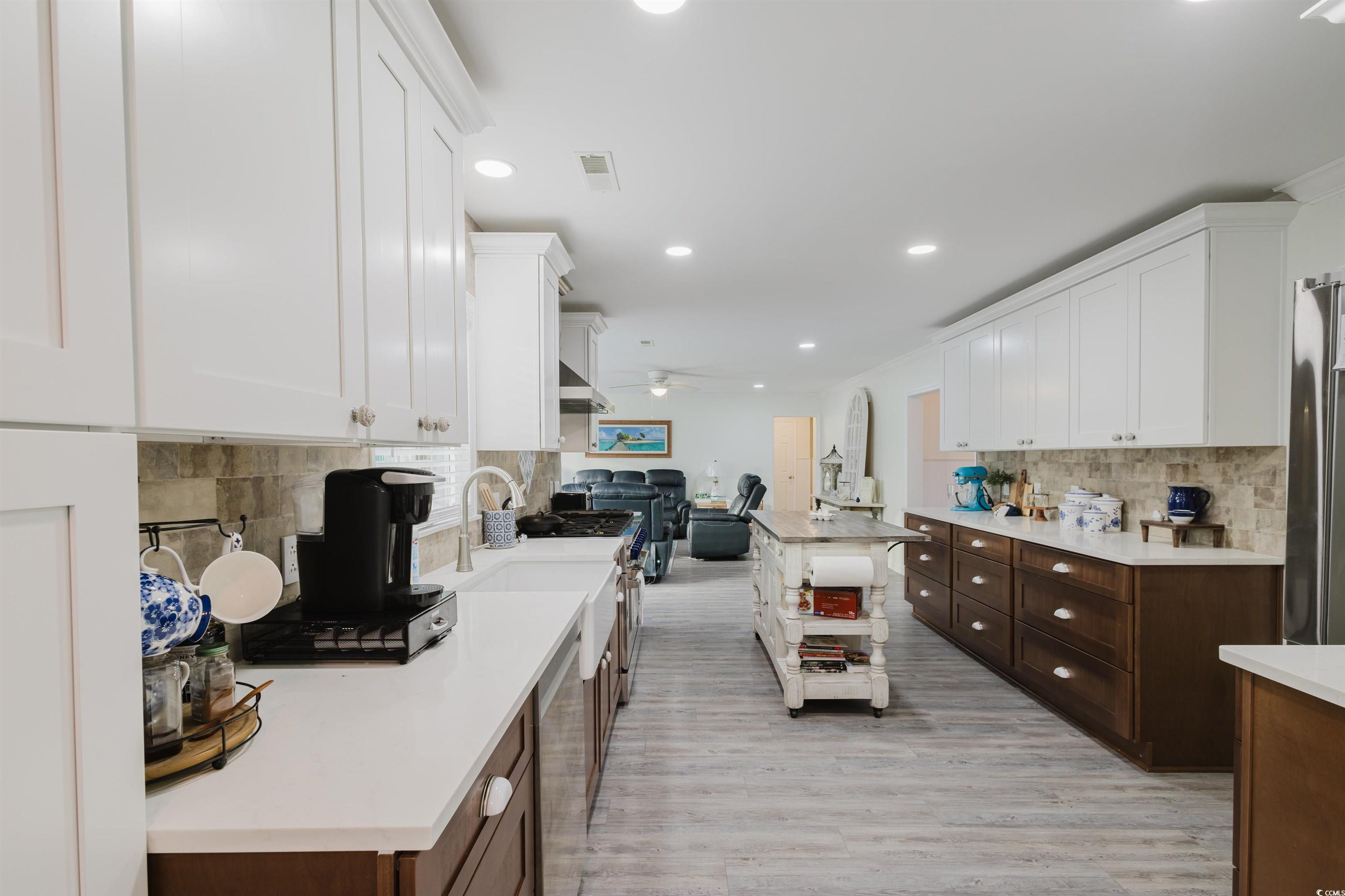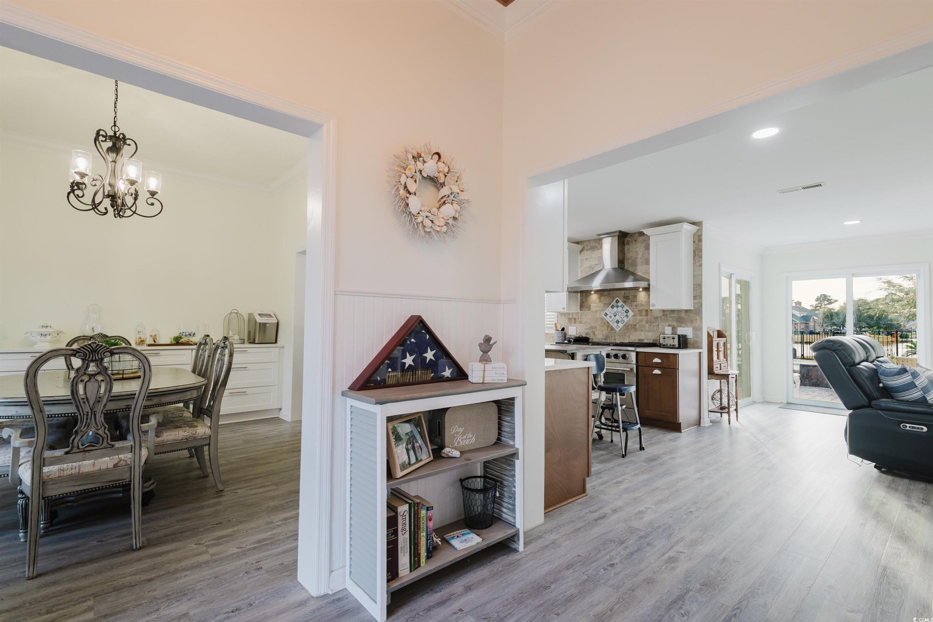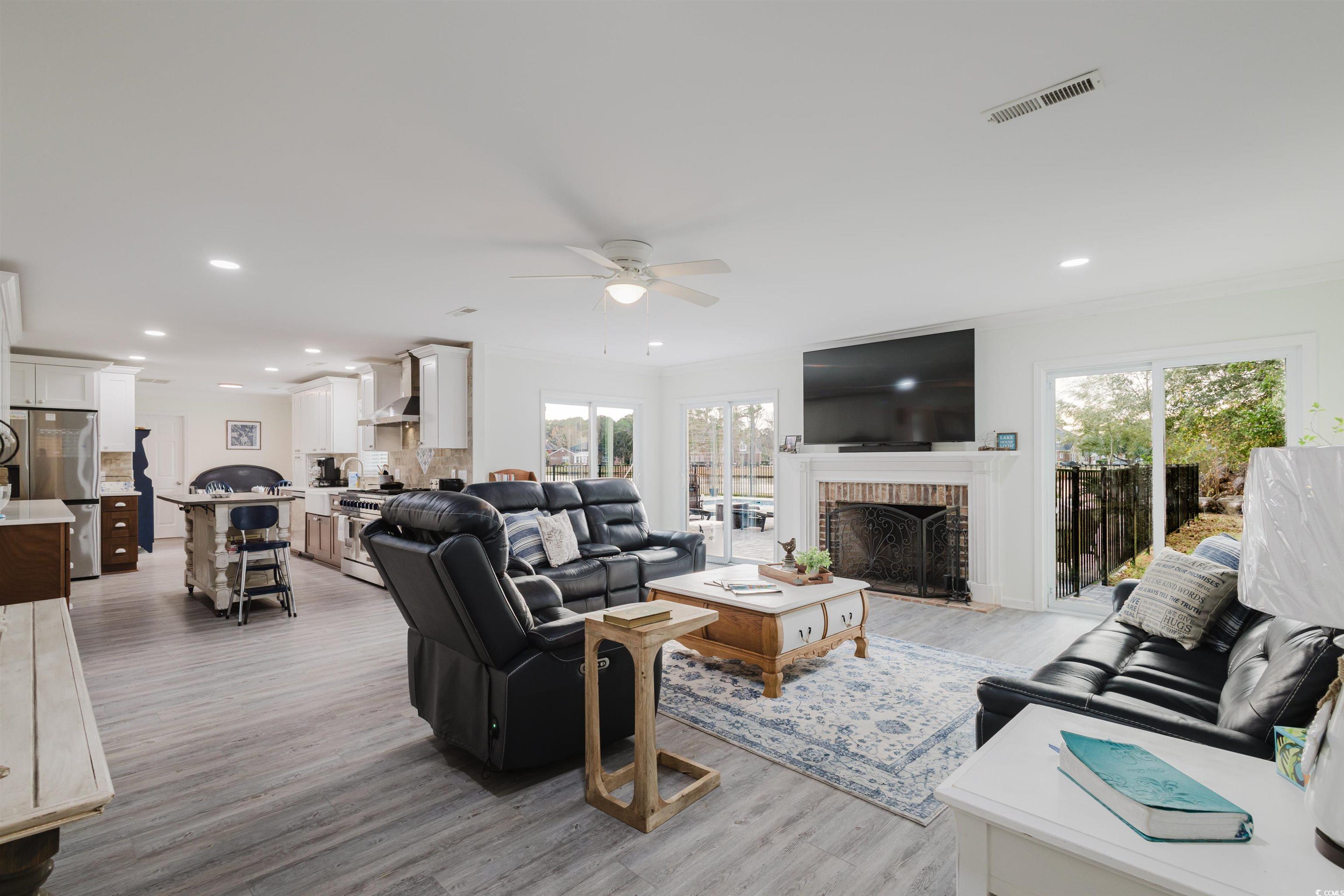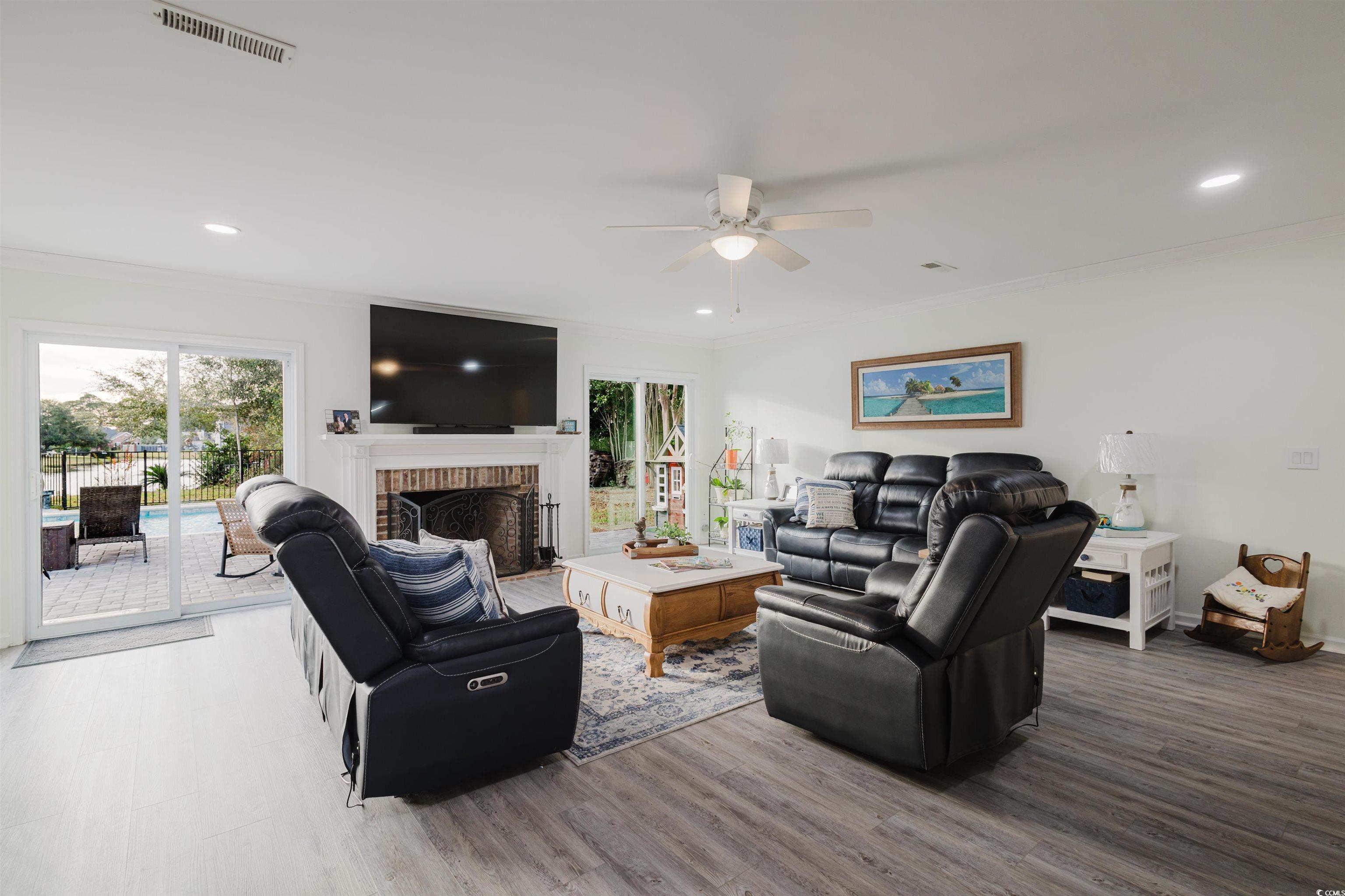 Imagine waking up in a home that truly has it all. Nestled within a serene, golf course community, this stunning all-brick ranch home offers breathtaking views of a tranquil lake. From the moment you step into the spacious foyer with its soaring 10-foot ceilings and custom wood-finished ceiling, you'll feel the elegance and warmth of this exceptional property. The formal dining room and office also boast 10-foot ceilings, adding to the grandeur of the living space. The heart of the home, the kitchen, has been completely remodeled to perfection. It features a 48"" commercial gas stove with double ovens, crowned by a 48"" hood, and complemented by stainless steel appliances. Custom soft-close cabinets, solid surface countertops, a tile backsplash with a medallion accent, and additional cabinetry in the dining room, laundry, and office ensure both beauty and functionality. The new flooring throughout the home ties everything together seamlessly. The bathrooms have been thoughtfully updated, and the large living room invites you to relax by the cozy wood-burning fireplace. Step outside to your own private oasisa brand-new 36' x 18' pool with a 12' x 8' tanning ledge, complete with a bubbler and four jets. The pool, which reaches six feet in depth, is surrounded by elegant pavers and a secure fence. Whether you're taking a refreshing swim or lounging by the water, you'll enjoy stunning views of the lake, perfect for canoeing or paddleboarding. The pool's heater and cooler are conveniently controlled remotely via the Pentair control center. The backyard offers even more to love, with a charming patch of woods, grapevines, orange and peach trees, and a small garden area. The property is designed for both relaxation and recreation, with a circle driveway leading to an oversized sideload garage. This home is located between downtown Conway and the Carolina Forest area. Only a few minutes to Downtown Myrtle Beach and the Beach. Driving Directions: Hwy 501 to Burning Ridge Golf Course. Turn Left on Timber Ridge Rd, house on the Right. **Do not use Myrtle Trace Road - Gated for homeowners only** This peaceful community, gated at one end to prevent through traffic, offers a sense of security and tranquility, all with an incredibly low HOA fee. Don't miss the chance to experience this extraordinary home for yourself. It's more than a houseit's a lifestyle. A golf cart ride to Walmart, Restaurants, Conway Medical Center, and the new Hobby Lobby.