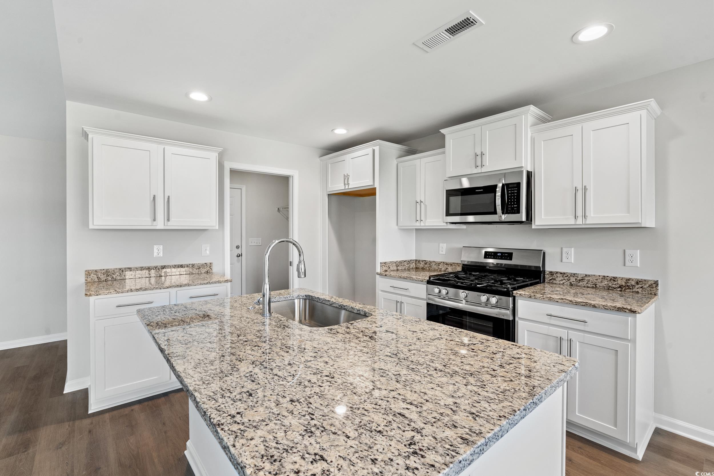 Enjoy the freedom of owning a low maintenance, single level home that checks all the boxes. The popular Oak II floor plan located on a Spacious corner lot features Aristokraft cabinets and ample counter space with a floating island great for entertaining, spacious pantry, ample closets for storage, and low maintenance waterproof laminate flooring gives the look of wood with easy care and cleanup. The private master suite also offers a large walk-in closet and 5' shower and spacious vanity. Other features and benefits of this home include but are not limited to; designer kitchen featuring stainless Steel appliances, profiled Aristokraft Shaker style Cabinets with hardware, granite countertop package with polished stainless steel sink and pull out faucet, durable waterproof LVP flooring in living areas with stain resistant carpet in bedrooms, interior trim package includes window casings and stool for durability and appeal, relaxing baths with cultured marble countertops with integral bowl; executive height vanities in all bathrooms; elongated toilets; contoured fiberglass shower and tub units, maintenance free exterior features such as premium vinyl siding, soffits and fascia; and high performance GAF Architectural shingles, spacious covered rear porch overlooking extra grilling patio, natural gas package including gas heat, Rinnai tankless Hot water, and gas range, covered rear porch and patio, vaulted ceilings, 2 car painted and trimmed garage with Liftmaster MyQ wifi enabled garage door opener, and drop down attic access for storage. Woodside Crossing is located on Four Mile Rd just 10 minutes to downtown Conway and minutes from Hwy 22 with quick access to Myrtle Beach, Little River, North Myrtle Beach, etc. Building lifestyles for over 40 years, we remain the premier home builder along the Grand Strand. Were proud to be the 2021, 2022, 2023, and 2024 winners of both WMBF News' and The Sun News Best Home Builder award, 2023 and 2024 winners of the Myrtle Beach Herald's Best Residential Real Estate Developer award, and 2024 winners of The Horry Independents Best Residential Real Estate Developer and Best New Home Builder award. Pictures, photos, colors, and layouts are for illustration purposes only and can vary from home to home. Customization may be possible - call listing agent for availability. Square footages are approximate.