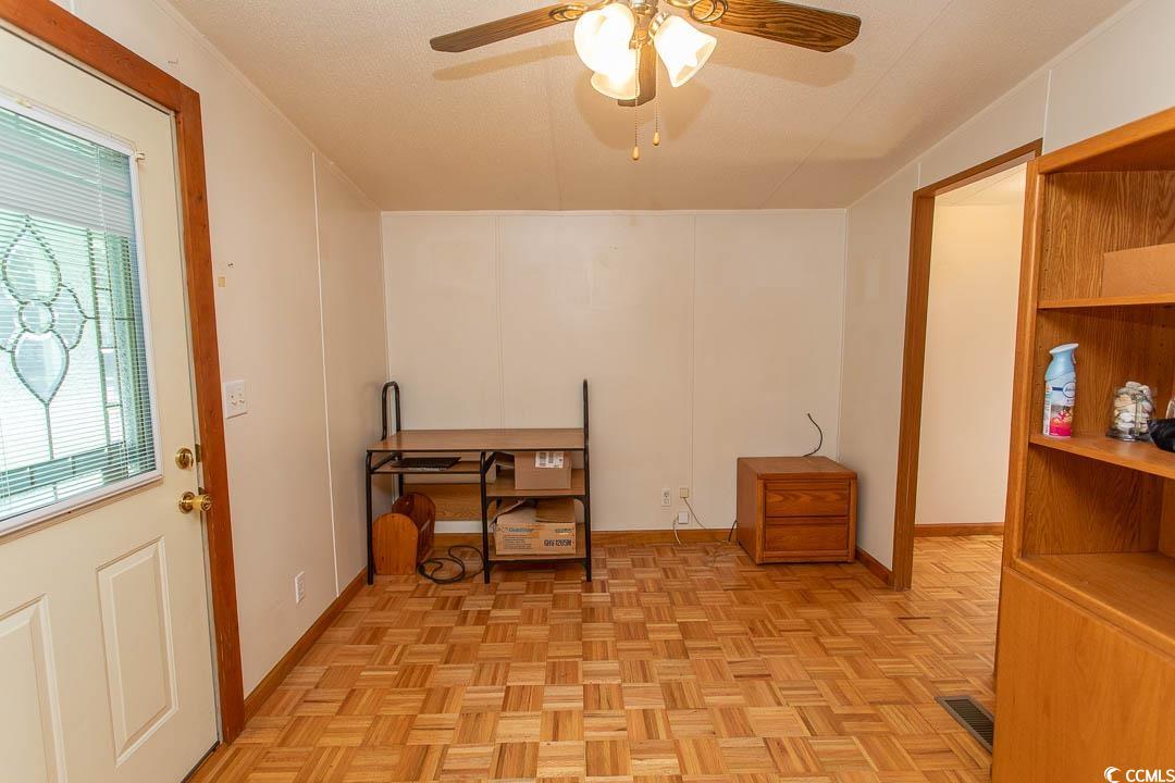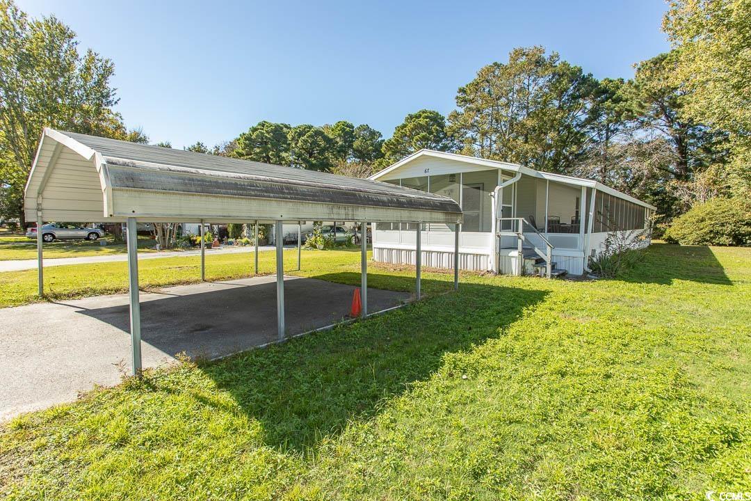 Affordable Coastal Living in a 55+ Community! Enjoy life at the beach in this spacious 2-bedroom, 2-bath home featuring a huge screened-in front and side porch totaling 455 sq. ft. of outdoor living space. Step inside to a flexible bonus room, a split floor plan, and a large kitchen that opens to the family room. Partially furnished with ample storage, including a 14' x 14' shed and plenty of cabinets and closets. Located in the desirable Oceanside Landing 55+ community, enjoy a clubhouse, pool, small dog park, pickleball court, and outdoor gathering areas. With planned social activities and proximity to the MarshWalk, beaches, dining, shopping, and Brookgreen Gardens, this home is perfect for full-time living or a vacation getaway. Sellers are motivated!