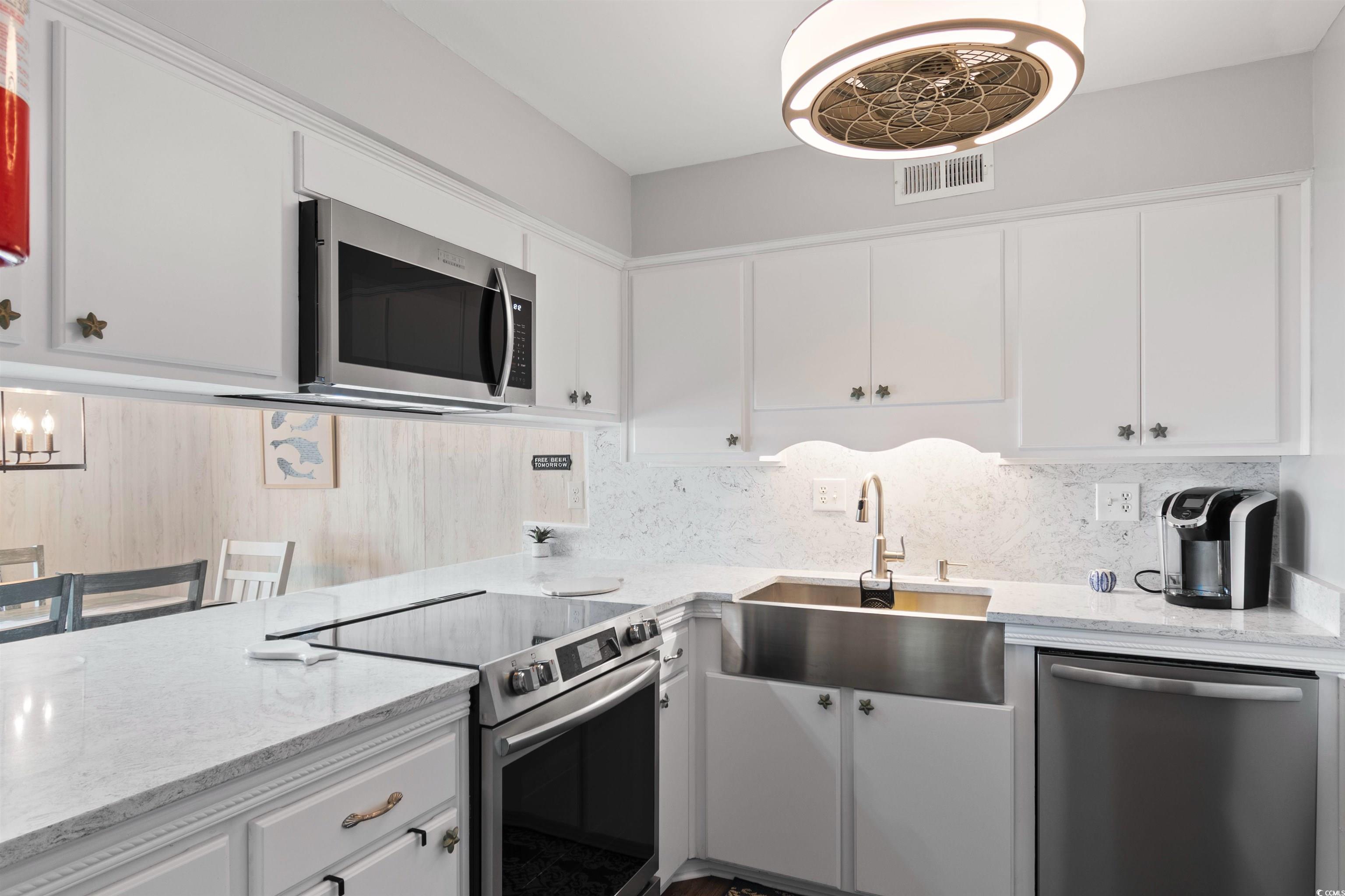 Kitchen: BreakfastBar, CeilingFans, StainlessSteelAppliances, SolidSurfaceCounters