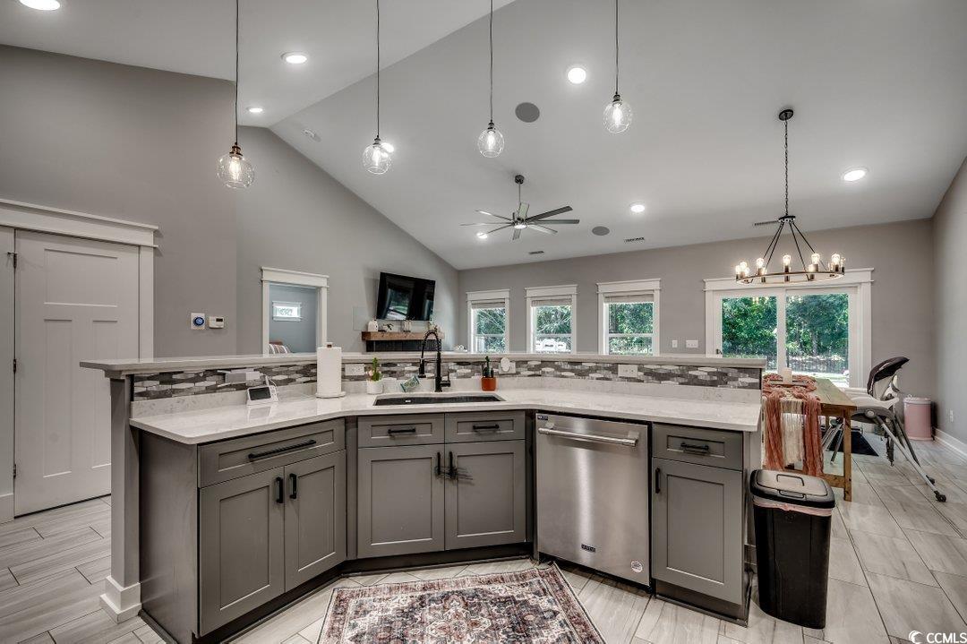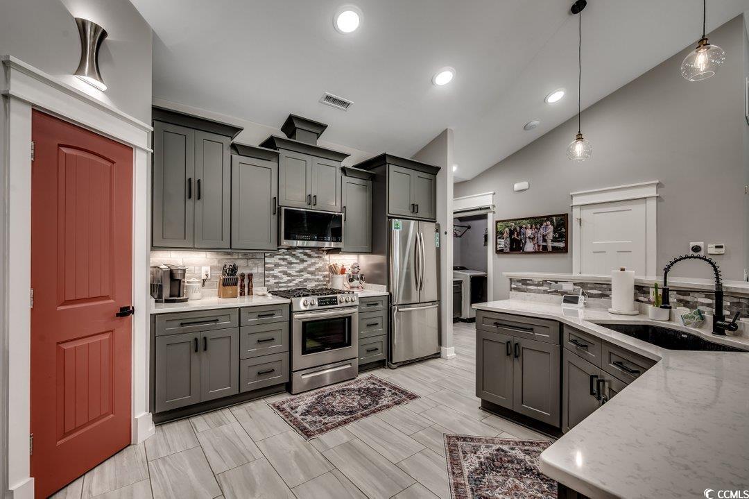 Gorgeous custom built home in the quiet community of Red Bluff Village. Enjoy beautiful country life while still being just minutes away from the beach and all local area attractions. This 3 bedroom, 2.5 bath split floorplan home boasts too many upgrades to mention. Ceramic tile throughout the entire home, nine foot and vaulted ceilings, custom trim package and tray ceilings give the home it's expansive feel. Kitchen boasts oversized quartz countertop work island, separate office area, and stainless steel appliances with gas cooktop. Master bedroom has a large walk-in custom closet, oversized high end tile shower, and extra windows to maximize and lighten the space. The home also features an HVAC nest dual stage heating and cooling system and a gas hot water heater. Outside of the home you will find a beautifully built brick paver driveway and brick paver patio with custom planters in the fully fenced backyard. Check out our virtual tour online and come and see this home soon as it certainly will not be on the market for long!!!