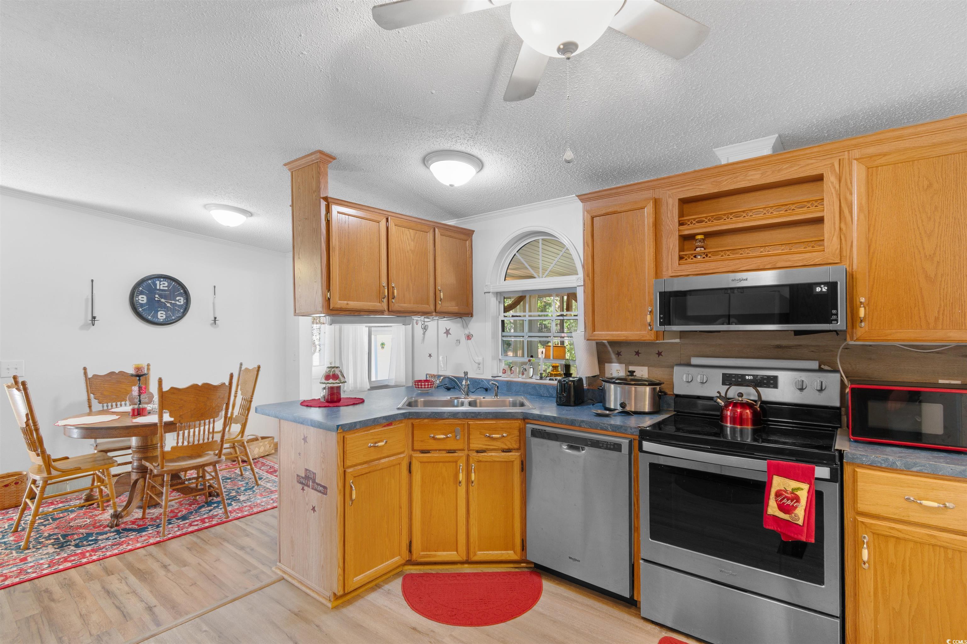 Wrap this one up for the holiday!! Captains Choice is a hidden gem in Little River. Close to McLeod Health, NMB High, and 31... this home is more affordable than rent! This seller has beautifully maintained this 3 bedroom 2 bath home offering 1560 sqft of comfortable coastal living. Freshly painted inside, this home shines with a clean, inviting feel. Enjoy peace of mind with a brand new roof installed in 2024 and spacious rooms designed for easy living and entertaining. The seller enjoys hanging out in the Carolina Room that also has a gas fireplace. The kitchen is lined with plenty of cabinets and decorated with SS appliances and the laundry (just off the kitchen) has a brand new washer and dryer. This home also has a detached one car garage perfect for your fishing boat, a workshop or extra storage. Home has new screens on windows, new hurricane straps and new vapor barrier just installed 2024. You'll love being in Captains Choice which is just 10 minutes to the beaches of Cherry Grove, shopping, dining, and all the fun that North Myrtle Beach has to offer. So whether you're looking for a primary residence, vacation getaway, or investment opportunity, this home is move in ready, furnished, and waiting for you.