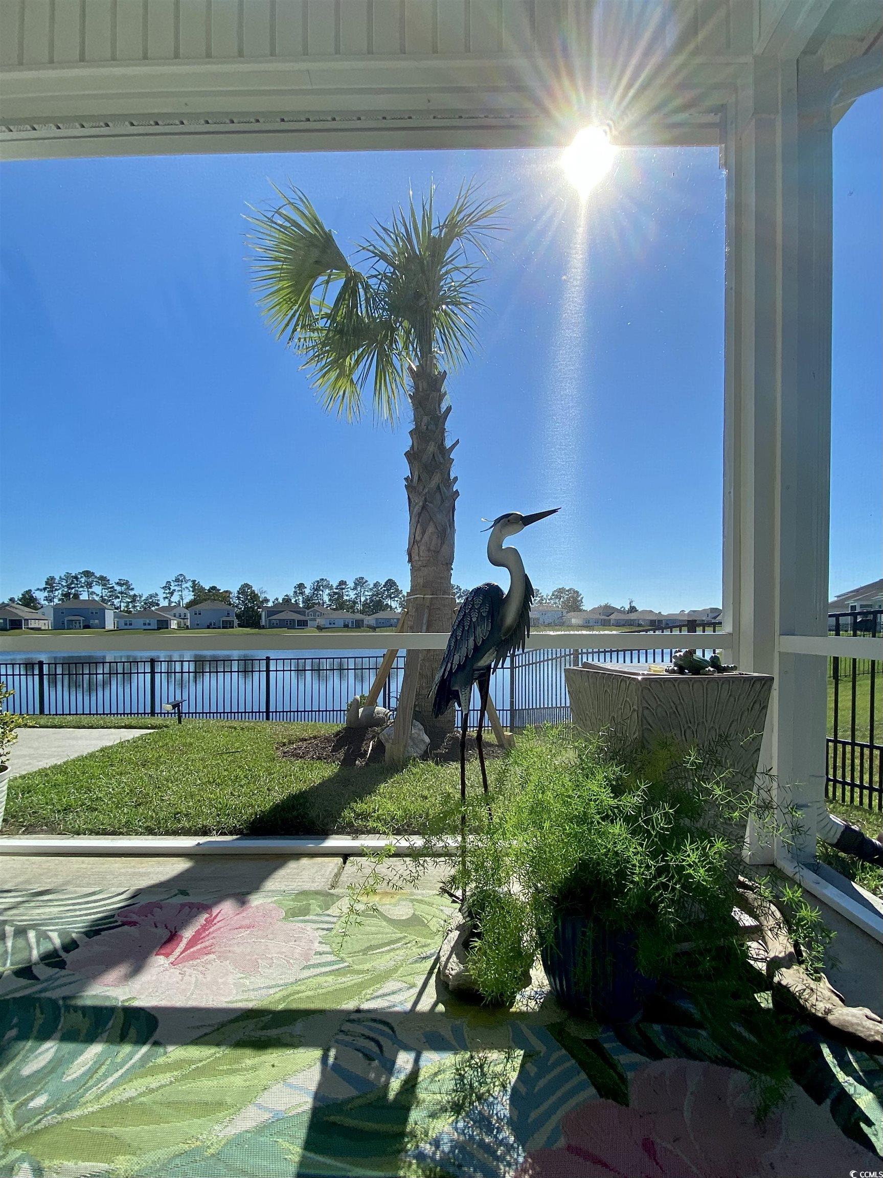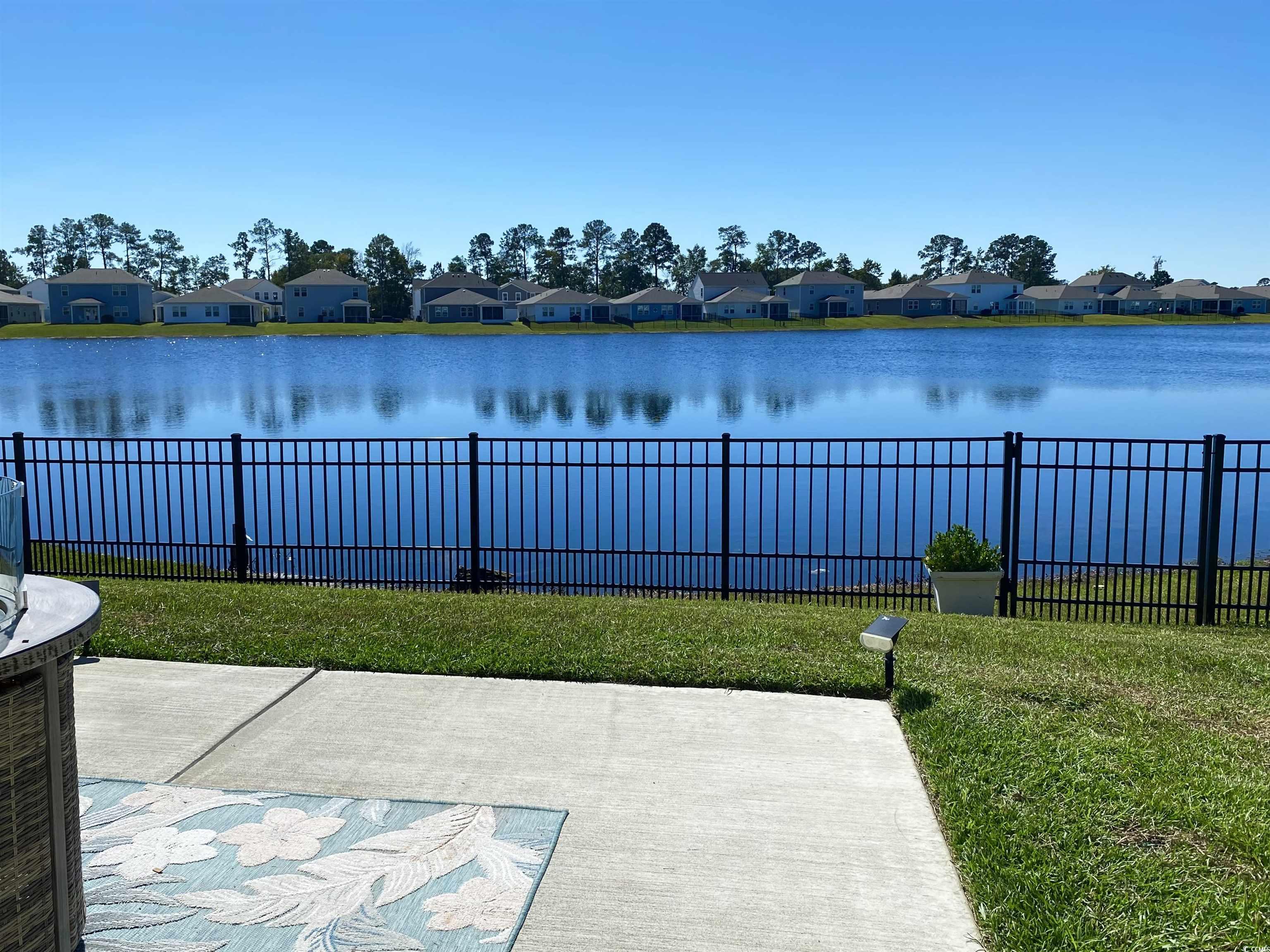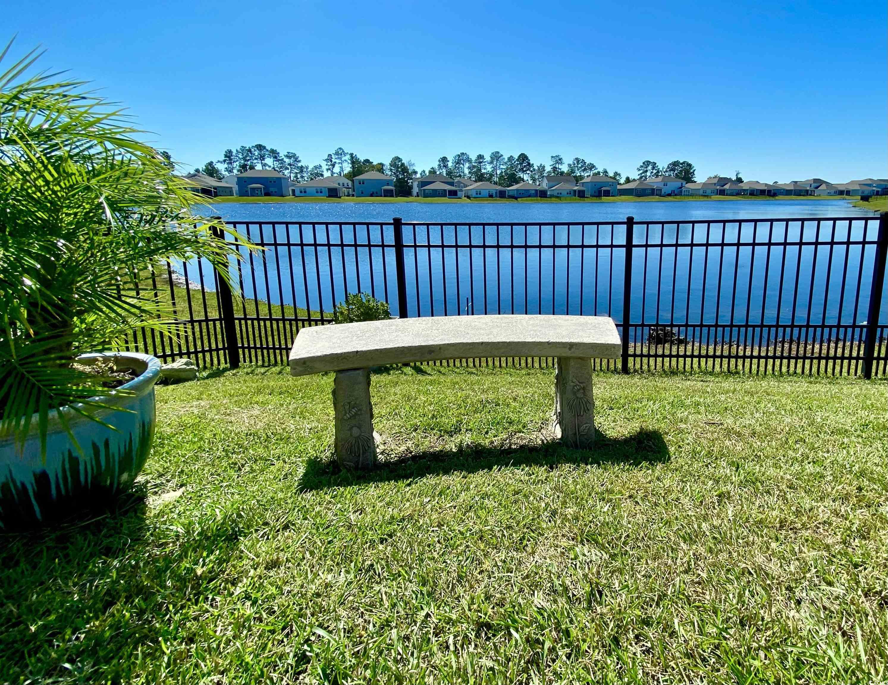 This beautiful home is less than one year old, on a waterfront lot with abundant upgrades inside and out already done for you! Watch the sunrises and sunsets over the large pond as well as the swans, ducks, egrets and turtles, not just from your windows but also from you screen porch and patio! Enjoy shade provided by eight palm trees (Palmetto & Pindo). New mulched beds with roses and other flowering plants surround the house. And don't worry about watering the lawn or flowers as your Hydrawise Irrigation System which senses when to water will take care of it for you. A seamless gutter system protects your home from the rain and new outdoor brass light fixtures brighten your garage and porch. A black aluminum fence frames the back yard, allowing full view of the pond and providing a safe play area for small children and dogs. Enter your home through the new decorative full light front door. Inside, cleaning is simplified by LVP flooring throughout - no carpet! All bedrooms and living room have new lighted ceiling fans with updated coastal lighting in the dining area and entry. Additional lighting has been added to bathrooms. Bath fixtures have been upgraded to comfort height toilets and high arc faucets in all sinks. New mini blinds between glass have been added to patio doors for privacy when desired. Cooking is made easier with under cabinet lighting and cabinet organizers in all base kitchen cabinets. The entire interior of the house has been painted a soft coastal blue and even the garage is finished, painted and has added overhead lighting. All of these upgrades are in addition to quartz countertops in the kitchen and bathrooms, all stainless-steel kitchen appliances, natural gas heat, stove and tankless Rinnai water heater. This lovely home is move in ready with all of the hard work done.