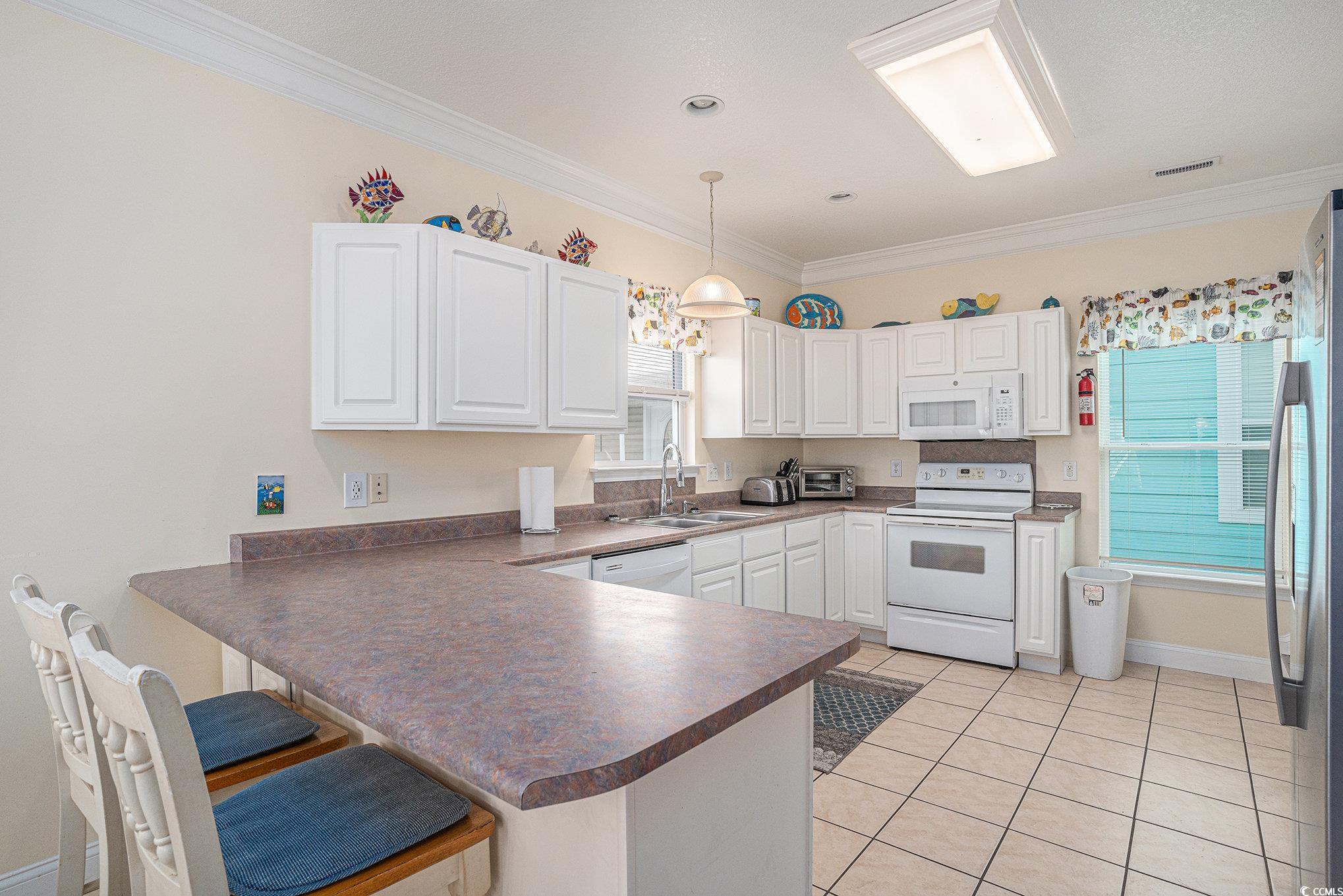 This is the beach home you've been dreaming about! This 5 bedroom, 3 bathroom, Oceanview home is just steps from the beach! Amenities abound in Ocean Lakes' gated community and include almost a whole mile of pristine white sandy beaches, 24 hour security, trash pick-up, indoor/outdoor swimming pools, large water park/slides, 2 full size basketball courts, miniature golf, fire pit, corn hole, shuffle board, horseshoes, ping-pong, Sandy's Down-under skatepark, recreation building, arcade, general store, golf cart rentals, Sandys Meet & Eat restaurant and more! This property boasts cedar shake heavy vinyl siding, tiled floors, crown molding, tall 9' ceilings on the first level, and cathedral ceilings in all four bedrooms on the second level. Two large covered decks provide you with breathtaking ocean views as well as relaxing shade while enjoying the ocean breeze. Downstairs, you will enjoy plenty of parking that can accommodate up to 5 vehicles. Other conveniences downstairs include an outdoor shower with hot/cold water and an attached garage to store your golf cart and beach gear. This home is being sold fully furnished making it completely ""turn key""! Whether you're looking for a great rental property or a vacation home where you can make years of memories, this is one you want to check out. Don't delay, schedule your private showing today! All information is deemed reliable, but verification is the responsibility of the buyer.