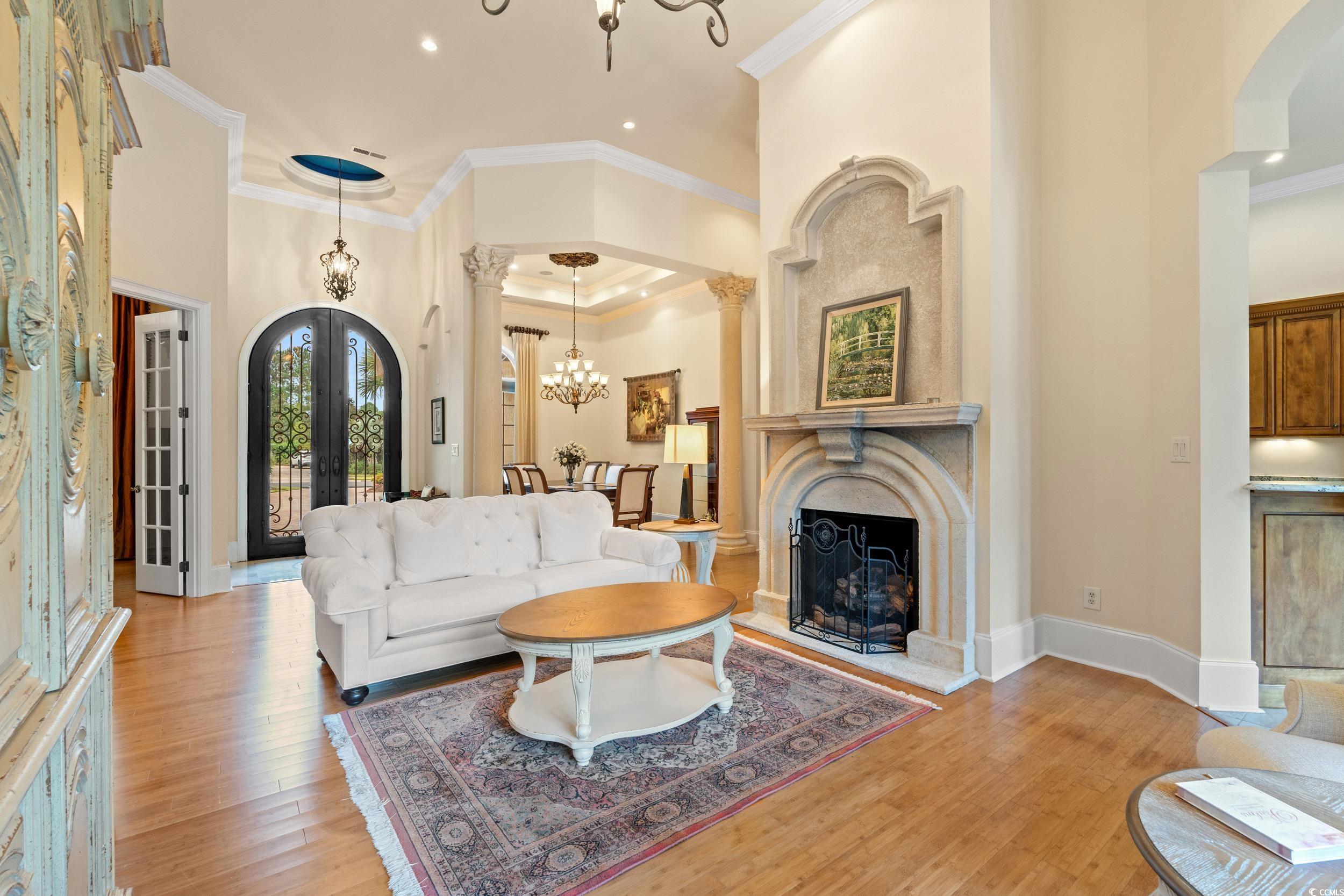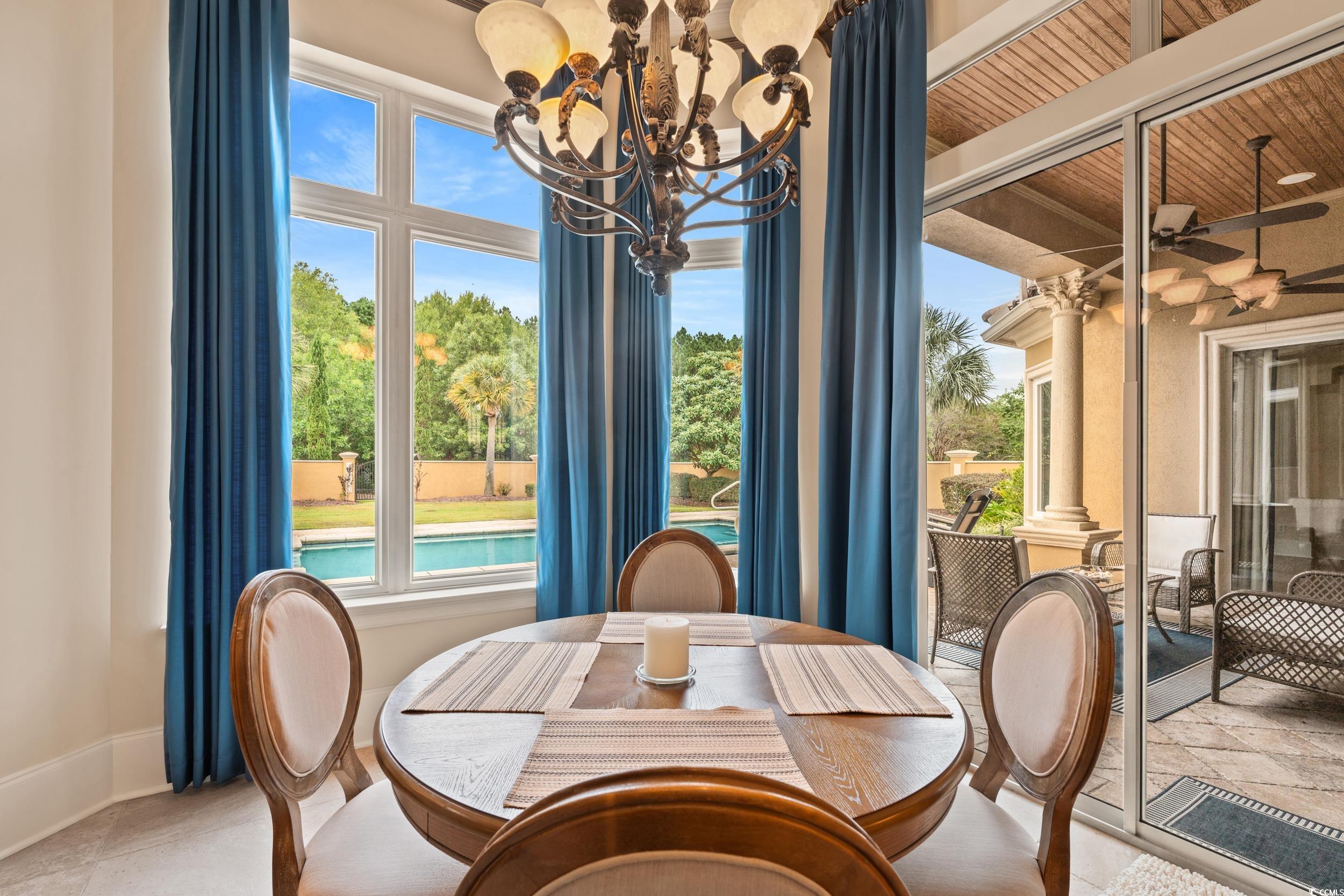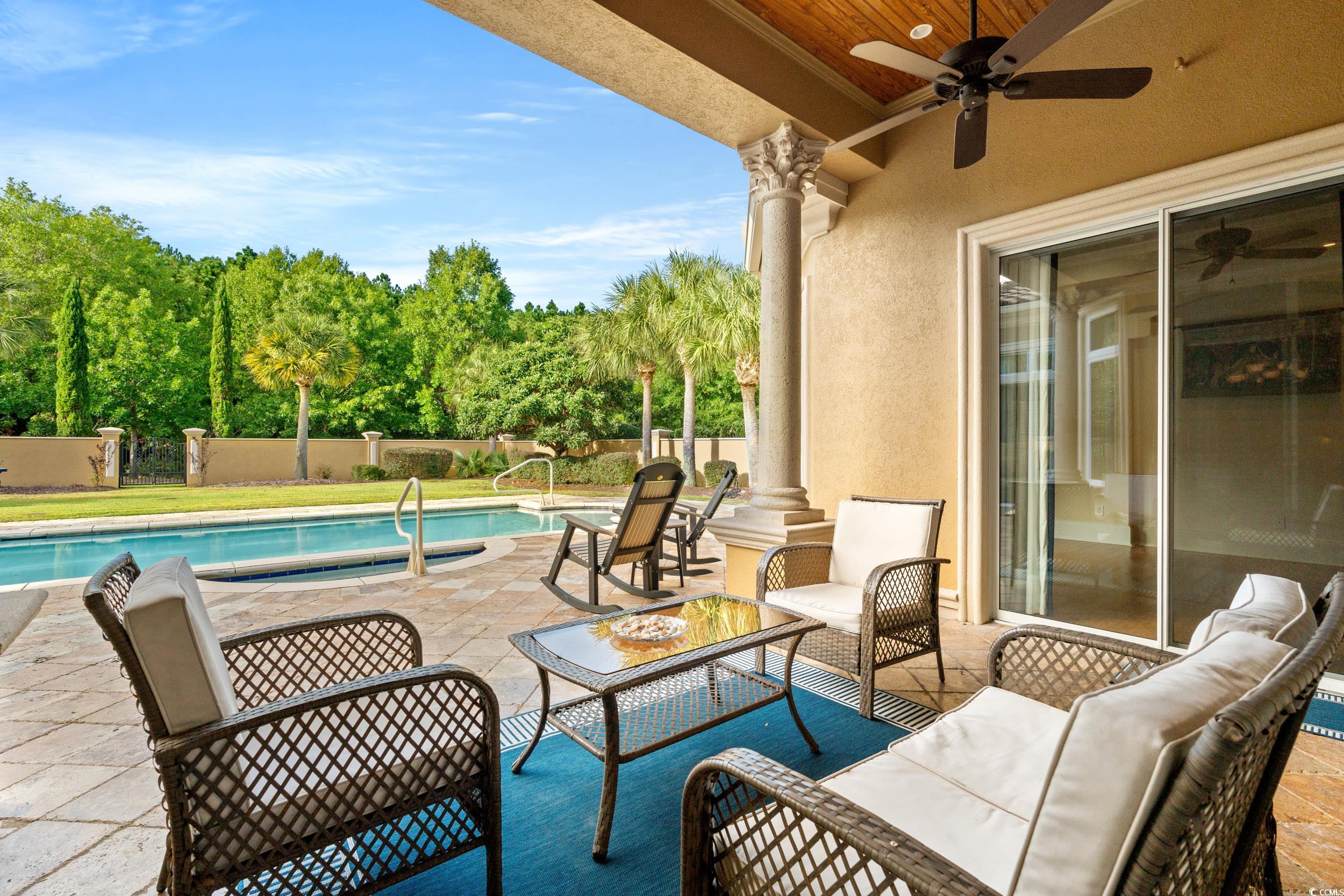 The epitome of luxury living at 8332 Leone Circle, nestled in the enchanting ambiance of Grande Dunes in Myrtle Beach. This exquisite steel frame constructed house, poised on a sprawling .68-acre lot, offers an unparalleled lifestyle for the discerning buyer. Upon arrival, the true circular drive and the impressive three-car garage set a tone of sophistication and convenience. The grandeur begins at the front entry, where double doors open onto a medallion marble floor, leading into a world of elegance and comfort. Inside, the home boasts three generously sized bedrooms and 3.5 bathrooms, ensuring ample space for family and guests alike. The formal living room, graced with a cast stone fireplace, creates a warm, inviting atmosphere for relaxation or entertaining. Across the way, an elegant formal dining room awaits, featuring an oversized niche perfect for a buffet, setting the stage for memorable dinners. For those who work from home, the office, with its glass doors, provides both privacy and a serene view, enhancing productivity and creativity. The residence also features an elegant half bath, adding to the refi ned character of the space. Culinary enthusiasts will revel in the kitchen, a chef's dream with a copper range hood, abundant prep space, and a well-appointed pantry. Adjacent to the kitchen, the great room, with its coffered ceiling detail and custom 4-inch shutters, offers a seamless flow for gatherings. The primary suite is a sanctuary of relaxation, featuring a large soaking tub and an expansive open shower, while two guest rooms with en-suites ensure comfort for all. Outside, the vast backyard is a private oasis, complete with a pool and spa, ideal for South Carolina's sunny days. Pool parties will definitely be in your future. This residence is more than a home; it is a statement of grandeur and grace, waiting for you to begin your next chapter. As an owner in Grande Dunes ,you have access to the 25,000 square foot Ocean Club, where you can enjoy fine dining, happy hour outings, oceanfront pools with food and beverage service, private beach entrance, beach chair service, and other fun activities. Additionally, the community has two 18-hole golf courses,a deep-water marina, and a Har-tru tennis facility.