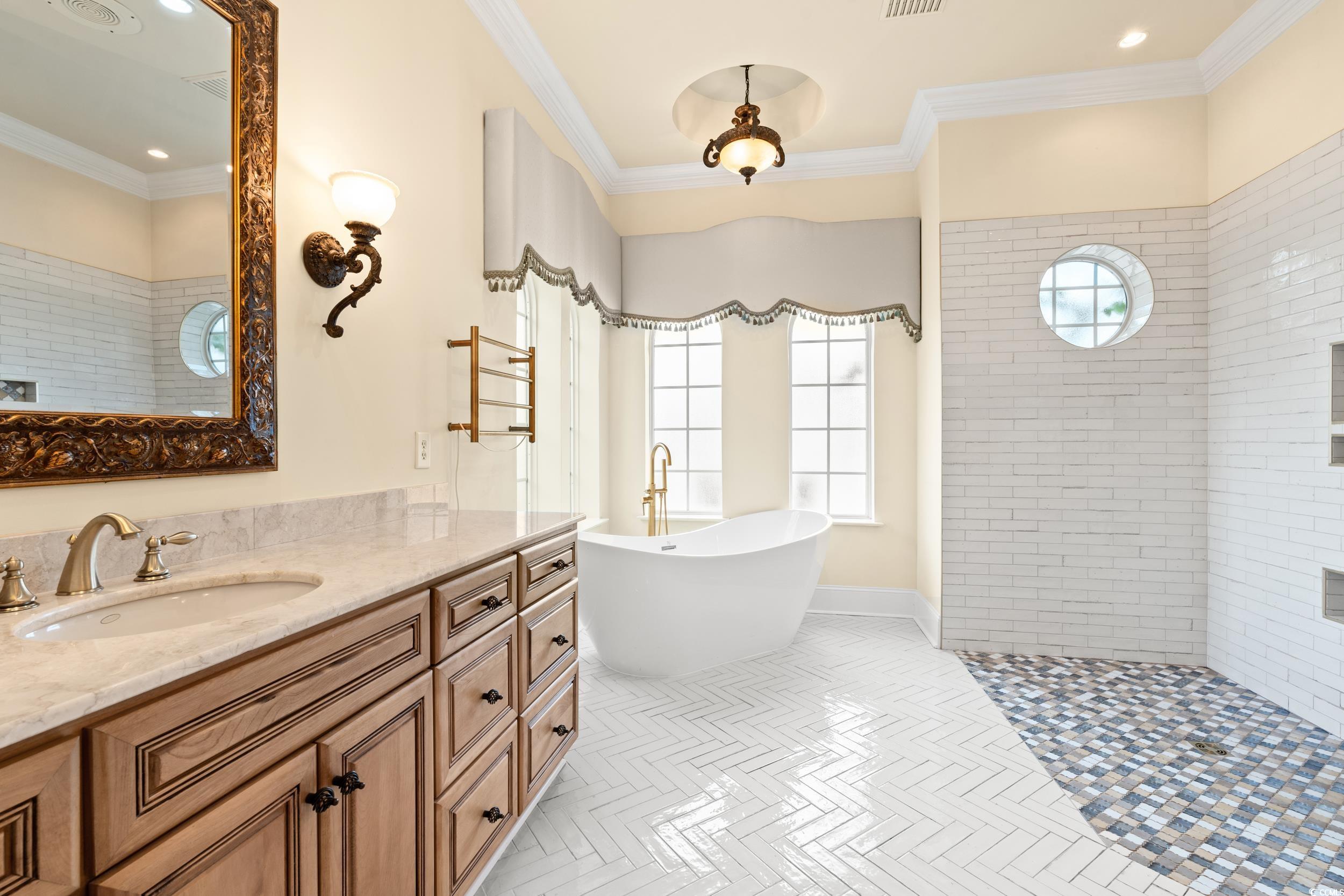 PrimaryBathroom: TrayCeilings, GardenTubRomanTub, SeparateShower, Vanity