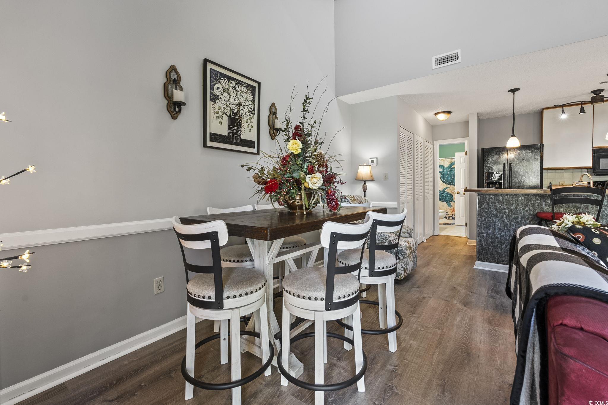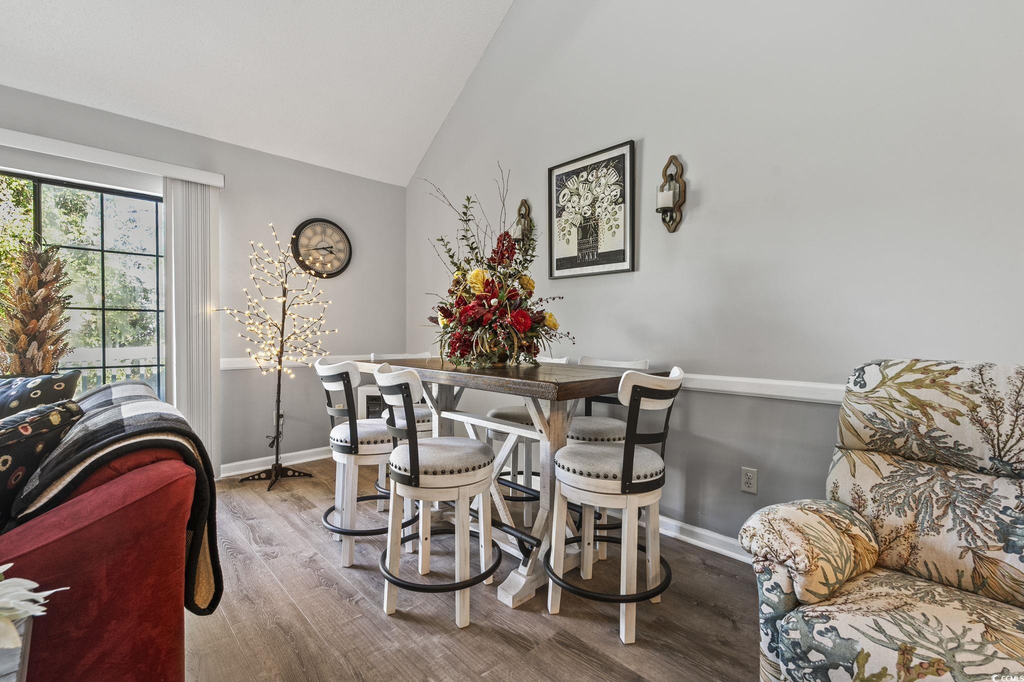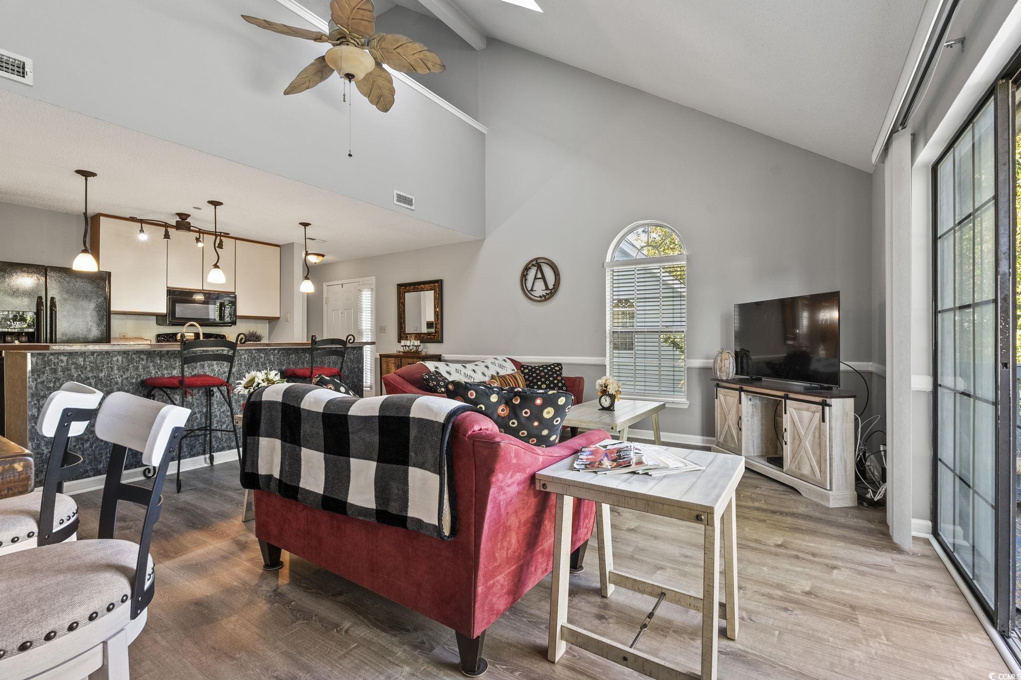 Welcome to The Spa at Little River! A beautiful and peaceful community surrounded by nature! This top-floor 2-bedroom, 2-bath condo offers vaulted ceilings, serene sounds, and a private balcony overlooking a lovely wooded area. Perfect for relaxing and enjoying the view of the trees from the deck out back. The home features new plank flooring in the kitchen and living room 2025, skylights that fill the space with natural light, and plenty of closet space throughout. The roof was replaced in October 2025, and the water heater was replaced in 2025. With two spacious levels, including a bright loft area, this condo provides comfort, charm, and room to breathe. Conveniently located near restaurants, shops, and all that Little River and North Myrtle Beach have to offer. Come experience the tranquility and charm of The Spa at Little River!