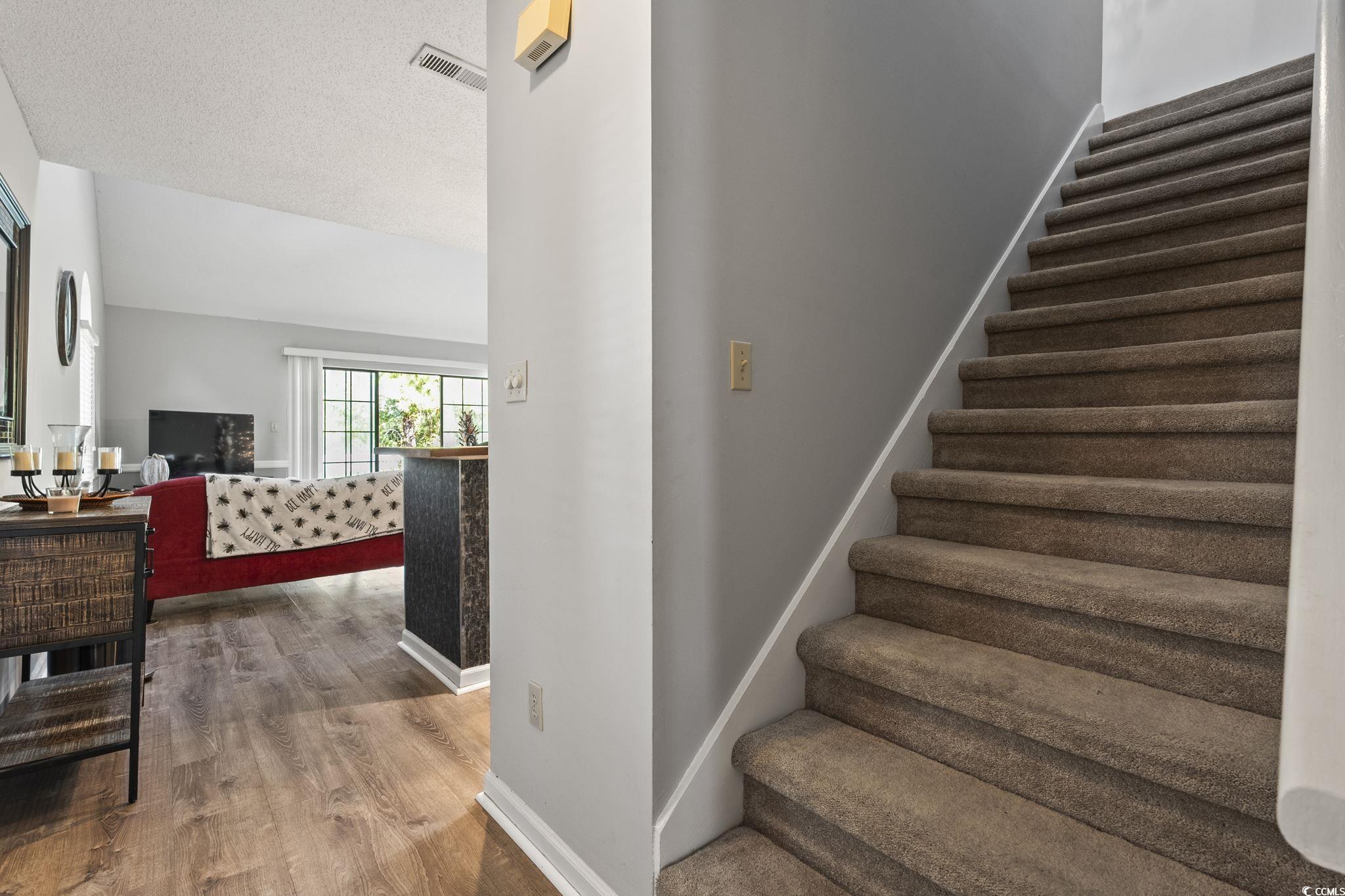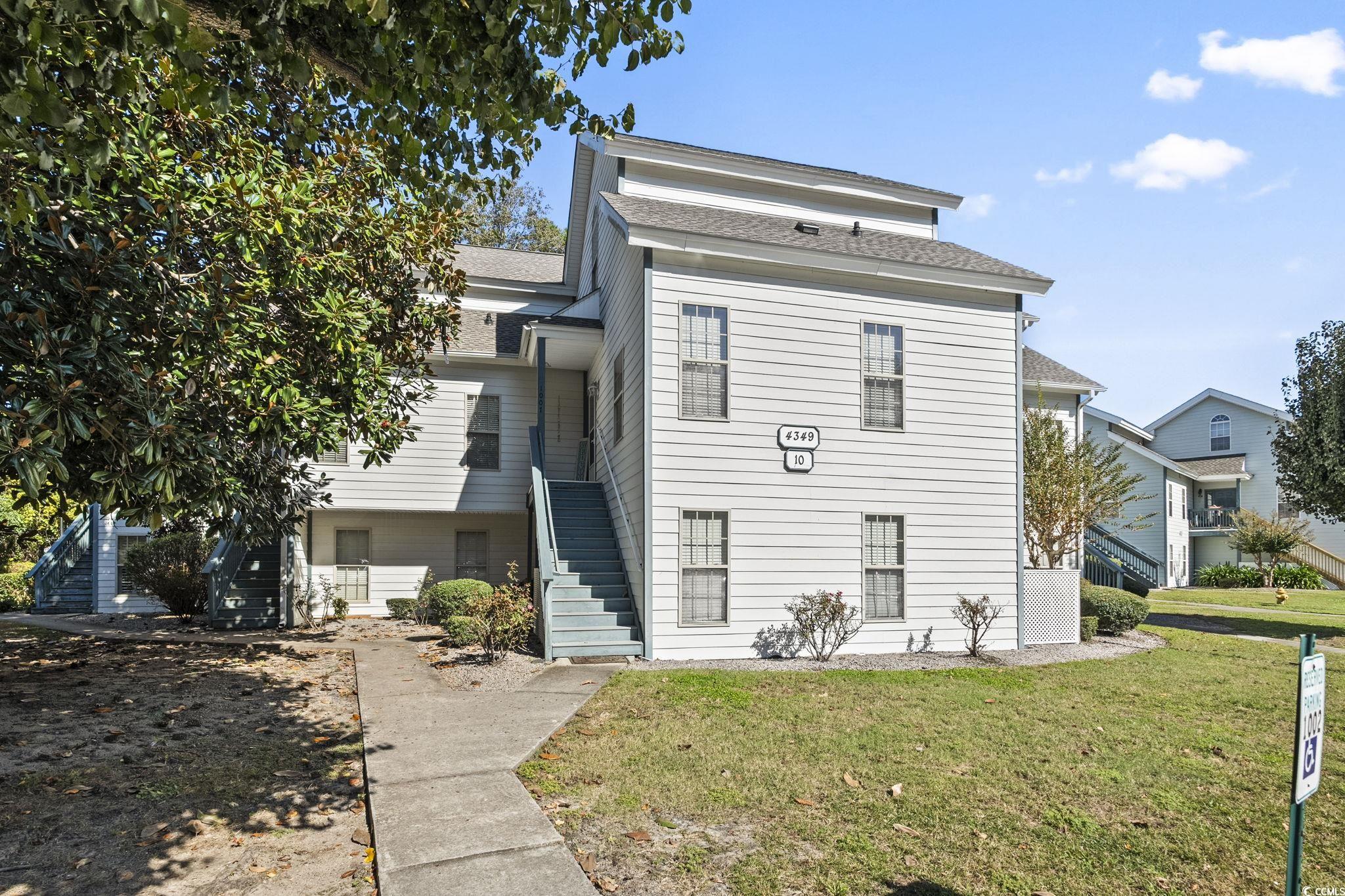 When you enter the complex, the building will be on the right. The address 4349 is on the building and it is building #10. The unit is on the far left of the building behind the big magnolia tree. The stairs located all the way to the left lead up to the second level where the entrance is located.Courtesy of Cb Sea Coast Advantage Cf - Office: 843-903-4400
