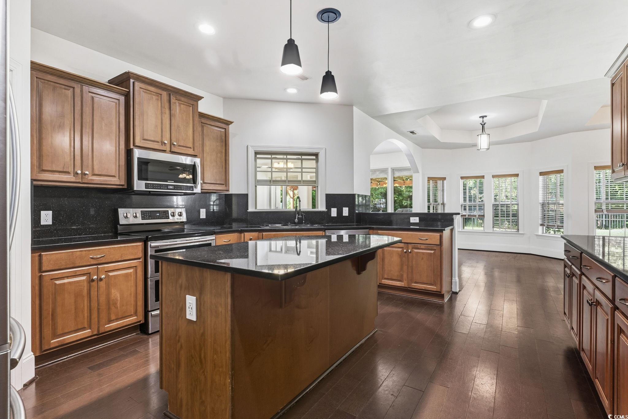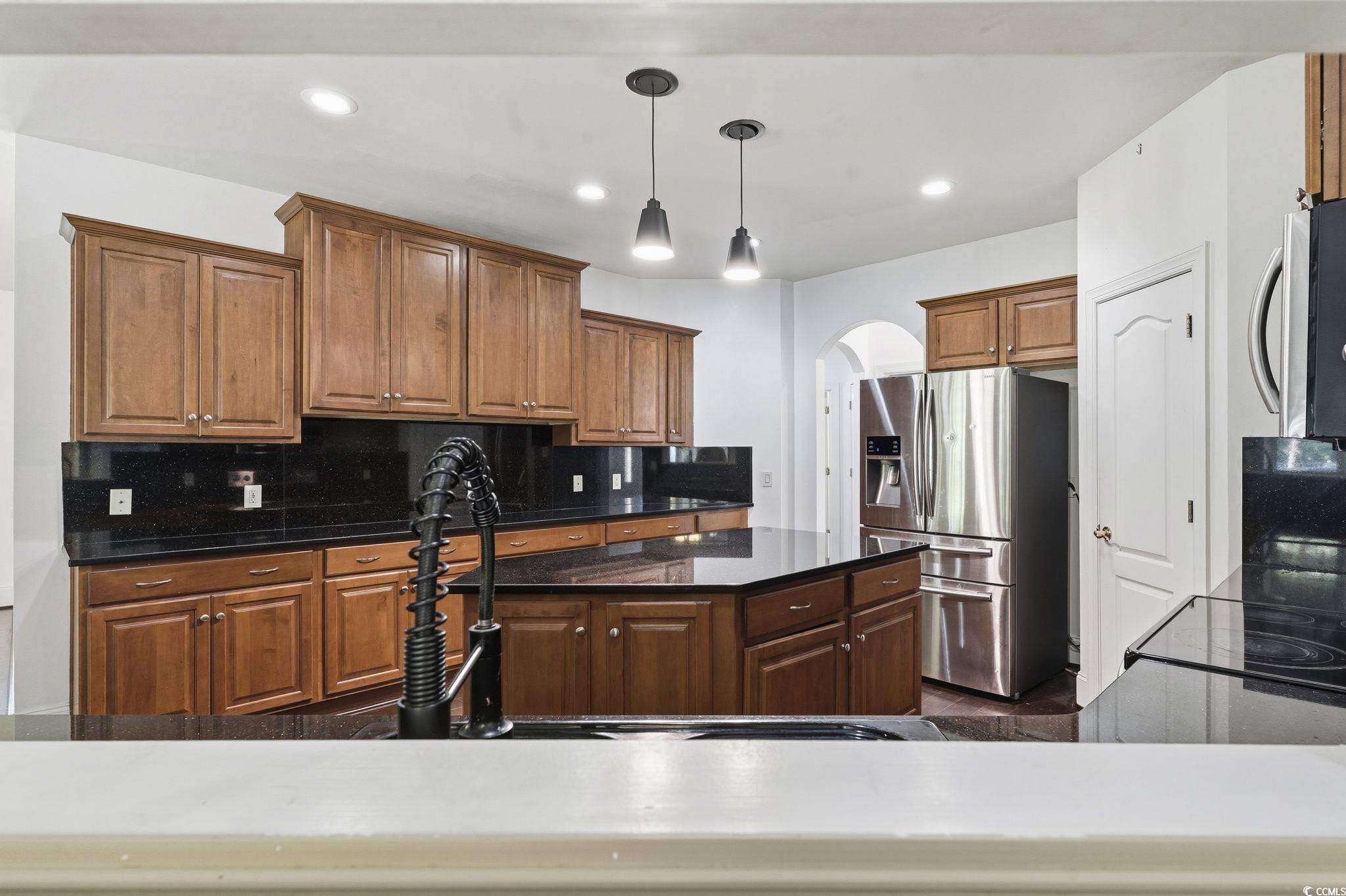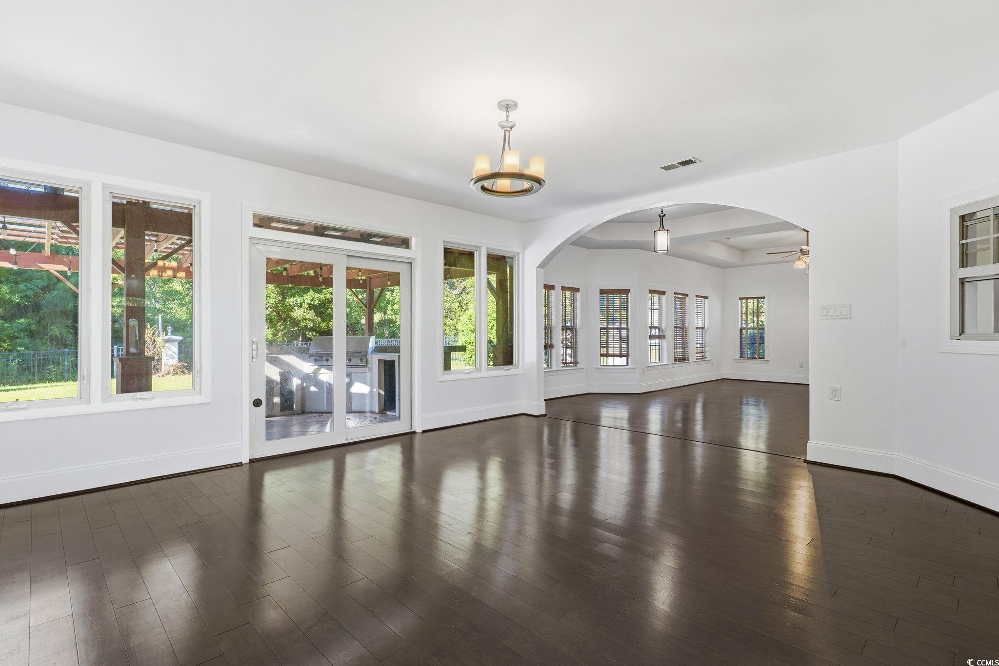 ***OPEN HOUSE Saturday December 20th 10-1pm*** A Mediterranean, single level house, located at the prestigious, gated community of THE BLUFFS ON THE WATERWAY. As you enter, you will be greeted by the oversized foyer and a formal dining room. The open concept provides easy flow into the massive living area. The master suite boasts a custom walk-in closet, trey ceiling and the luxury, spa, master bath with a tiled walk-in shower as well as a tub. The house has an outdoor kitchen as well as a fenced backyard. There's a flex/office room with new carpet, that can also be converted into a 4th bedroom. The Bluffs has first class amenities including a resort-style clubhouse, swimming pool, tennis/Pickleball courts, playground, basketball, private boat ramp, and secure boat storage. There's a second clubhouse along the scenic Intracoastal Waterway. Located in the coveted Carolina Forest school district, youll benefit from easy access to International Drive, Highway 31 and with shopping, dining, entertainment, and the beach just minutes away