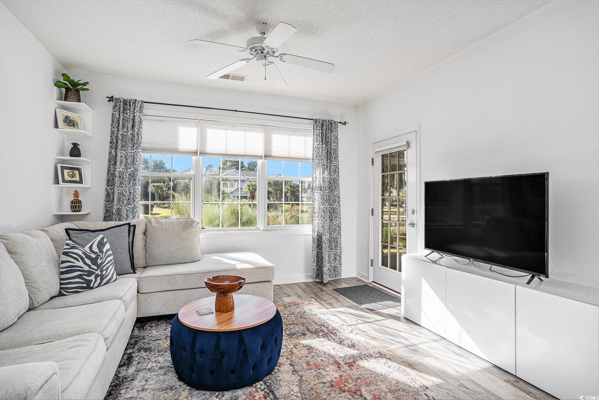 RARE OPPORTUNITY to own this amazing 1-bedroom, 1-bathroom TURNKEY condo in Wedgewood at Barefoot Resort. This fully furnished, first floor end unit features an open floor plan, ceiling fans throughout, new furniture in living and dining room, LVP flooring throughout - no carpet, washer/dryer, and a private screened porch with beautiful view of the pond. Enjoy all that Wedgewood has to offer such as a community pool, hot tub, fitness center, fantastic driving range, 4 Championship Golf courses, 2 clubhouses, Bar and Grill, day boat docks, private beach cabana, seasonal shuttle service, spectacular 15,000 SF saltwater pool on the ICW and more. Wedgewood at Barefoot Resort is centrally located to restaurants, entertainment, attractions, golf, shopping, hospitals and ONLY A MILE FROM THE BEACH! Take the shuttle from your front door directly to the shops and eateries of Barefoot Landing or to the OCEAN! Perfect for your beach getaway, primary residence, or investment property!