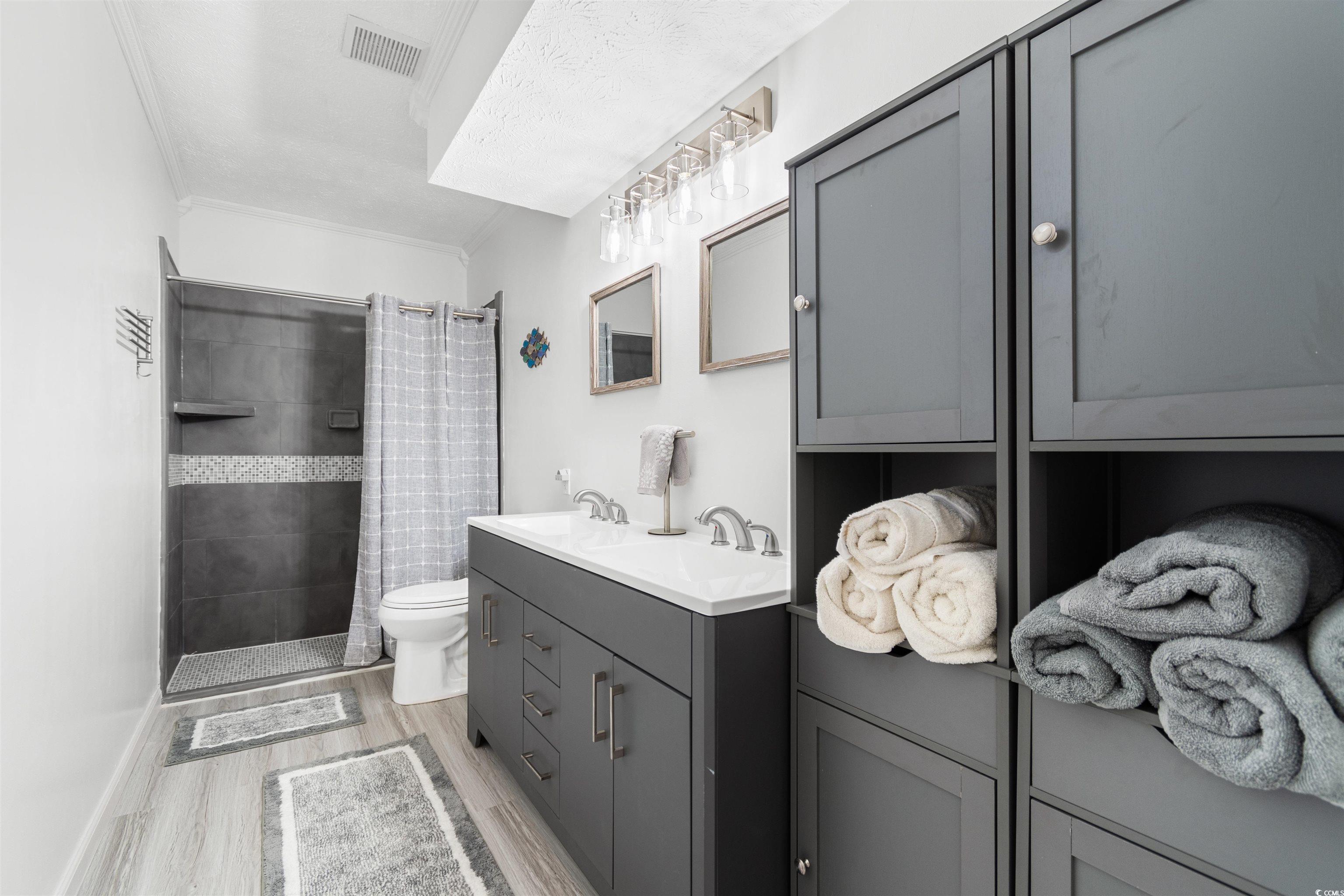 Welcome to your dream coastal retreat! This stunning furnished 4-bedroom, 3-bath, raised beach house is ideally just a short stroll from the sparkling sands and the radiant Atlantic Ocean! Perfect for families, vacationers/investment, or anyone looking to embrace the beach lifestyle, this home offers the perfect blend of comfort, location and coastal charm. The open-concept living and dining areas provide ample space for relaxation and entertaining, featuring large windows that flood the space with natural light. The modern kitchen with brand new stainless steel appliances, solid surface countertops and plenty of cabinet space for a chef's delight. The luxurious master bedroom has a brand new ceramic walk-in shower and double vanity sink, as well as two other full baths for guest convenience. This beach home has it all for a vacation home; enclosed sitting area for morning coffee, eight window natural light dining area. A spacious four-car park under the home, with an outdoor sitting area, shower, foosball table, climate control storage rooms, grilling and room for corn hole! Location is walking distance to the ocean, world glass golf courses nearby, Tanger outlets, shopping and restaurants. HVAC was replaced in 2024, water heater in 2020,exterior of home painted 2023 , new roof completed in 2024. Don't miss out on this stunning raised beach home! **ALL SHOWINGS MUST BEACCOMPANIED BY ACTIVE SC REAL ESTATE LICENSEE.**