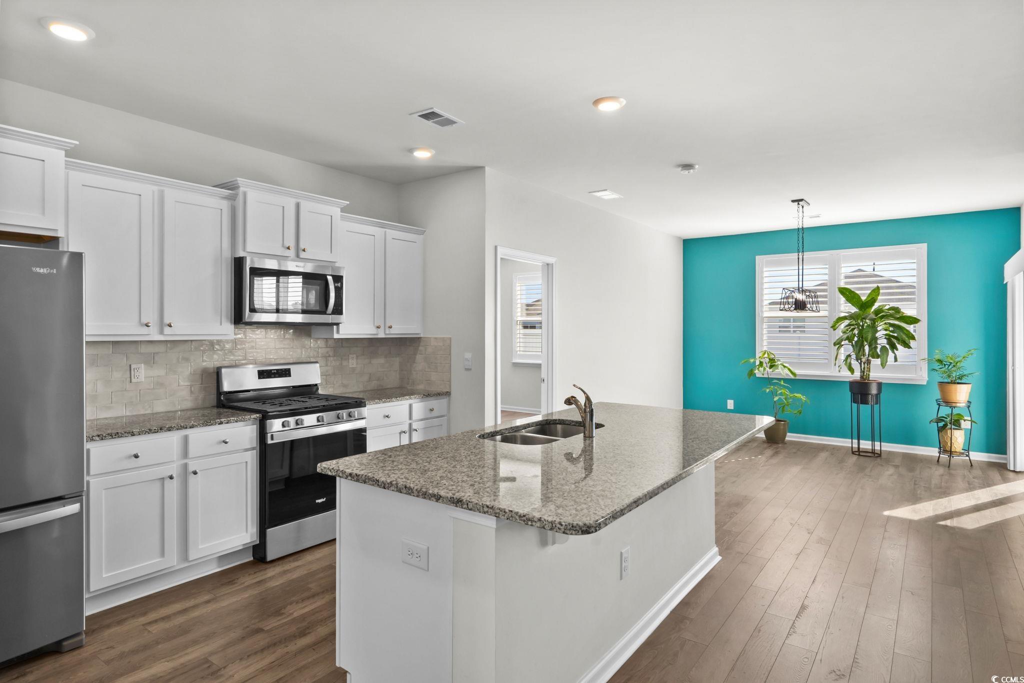Beautifully maintained 3-bedroom, 2-bath home in Village Oaks at Berkshire Forest. This single-level home offers an open layout, luxury vinyl plank flooring throughout and plenty of natural light. The kitchen shines with granite countertops, a gas range, white shaker cabinetry, a walk-in pantry and a large island! Custom plantation shutters and modern lighting add a touch of elegance throughout. The spacious primary suite features a walk-in closet and spa-like bath with double vanity and step-in shower. Thoughtful upgrades include a tankless Rinnai water heater, washer and dryer, ample storage and pull-down attic access in the 2-car garage. Enjoy a generous backyard with scenic lake views to the right and a prime location walking distance from the community pool. Sidewalk-lined streets make evening walks easy, and youll love being close to shopping, dining, schools, medical facilities and just a short drive to the beach! Call today to arrange your private viewing!