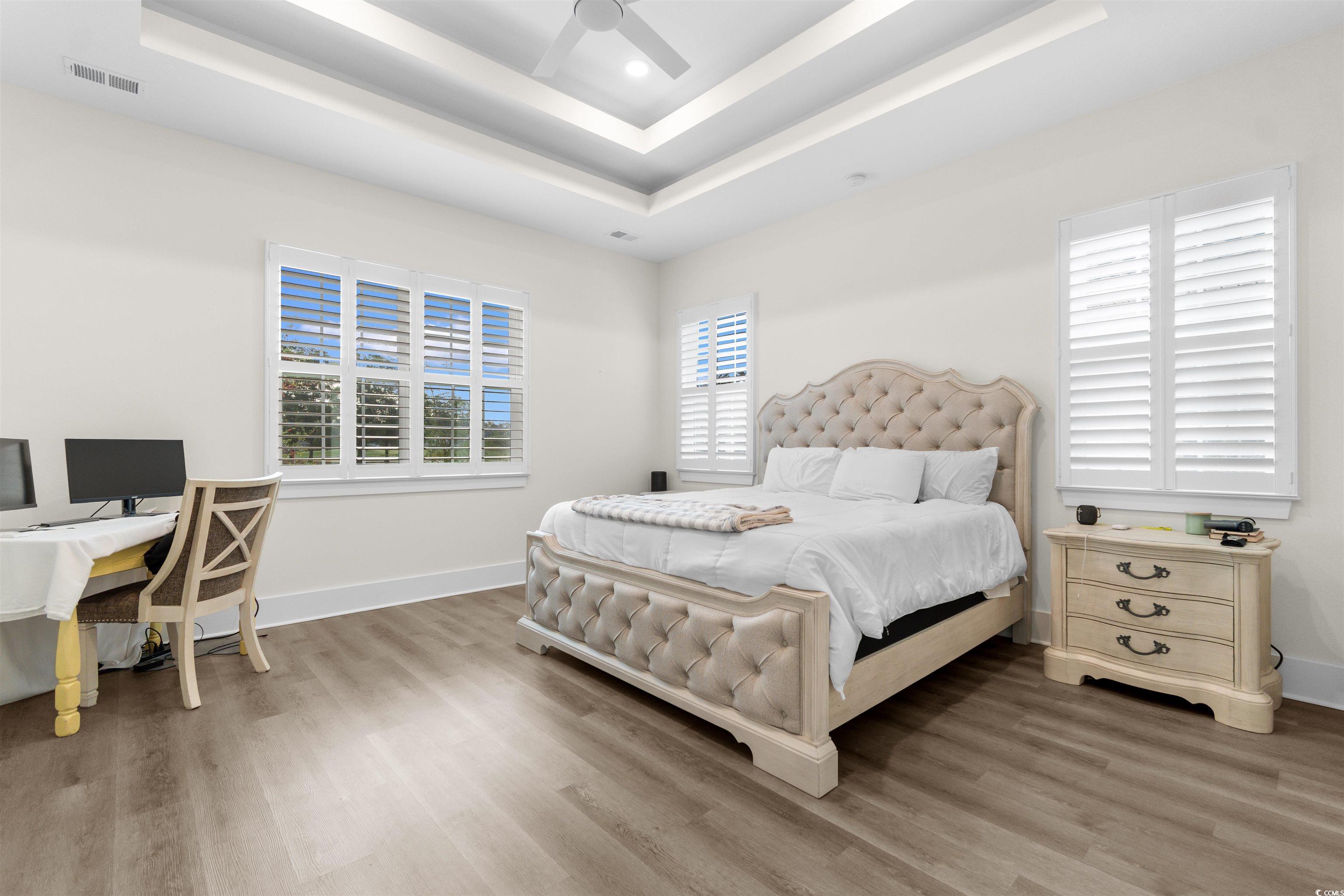 PrimaryBedroom: TrayCeilings, CeilingFans, LinenCloset, MainLevelMaster, WalkInClosets