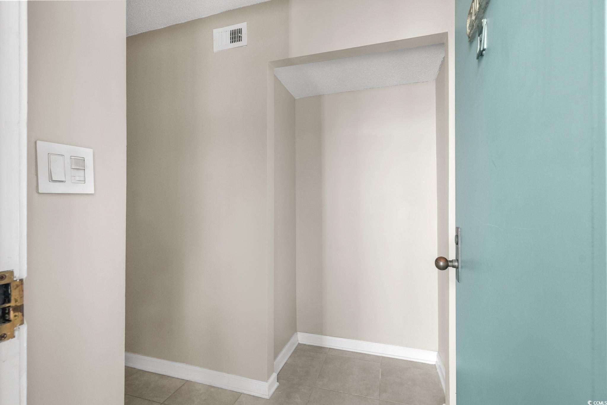 Rarely on the market, this 2-bedroom, 2-bath condo in The Atrium offers the perfect blend of coastal comfort and stylejust steps from the beach. Located on the second floor of a four-story building with only 16 units, this bright and inviting home features an open-concept layout filled with natural light. The spacious kitchen offers ample counter space, a breakfast bar, and adjacent dining area that flows seamlessly into the living roomideal for relaxing or entertaining. The large primary suite includes dual closets and a private ensuite bath, while the guest bedroom and bath provide comfortable accommodations for visitors. Enjoy the ocean breeze from your private covered balcony. Additional features include in-unit laundry with a stacked washer/dryer and a glass elevator in the building for easy access. Each floor of the building also offers a common sitting area, perfect for relaxing or socializing with neighbors. The beautifully landscaped common courtyard with a peaceful fountain adds to the communitys charm. With no short-term rentals allowed, The Atrium provides a serene coastal lifestyle perfect for a primary residence or vacation home, just moments from Myrtle Beachs best restaurants, shopping, and attractions.