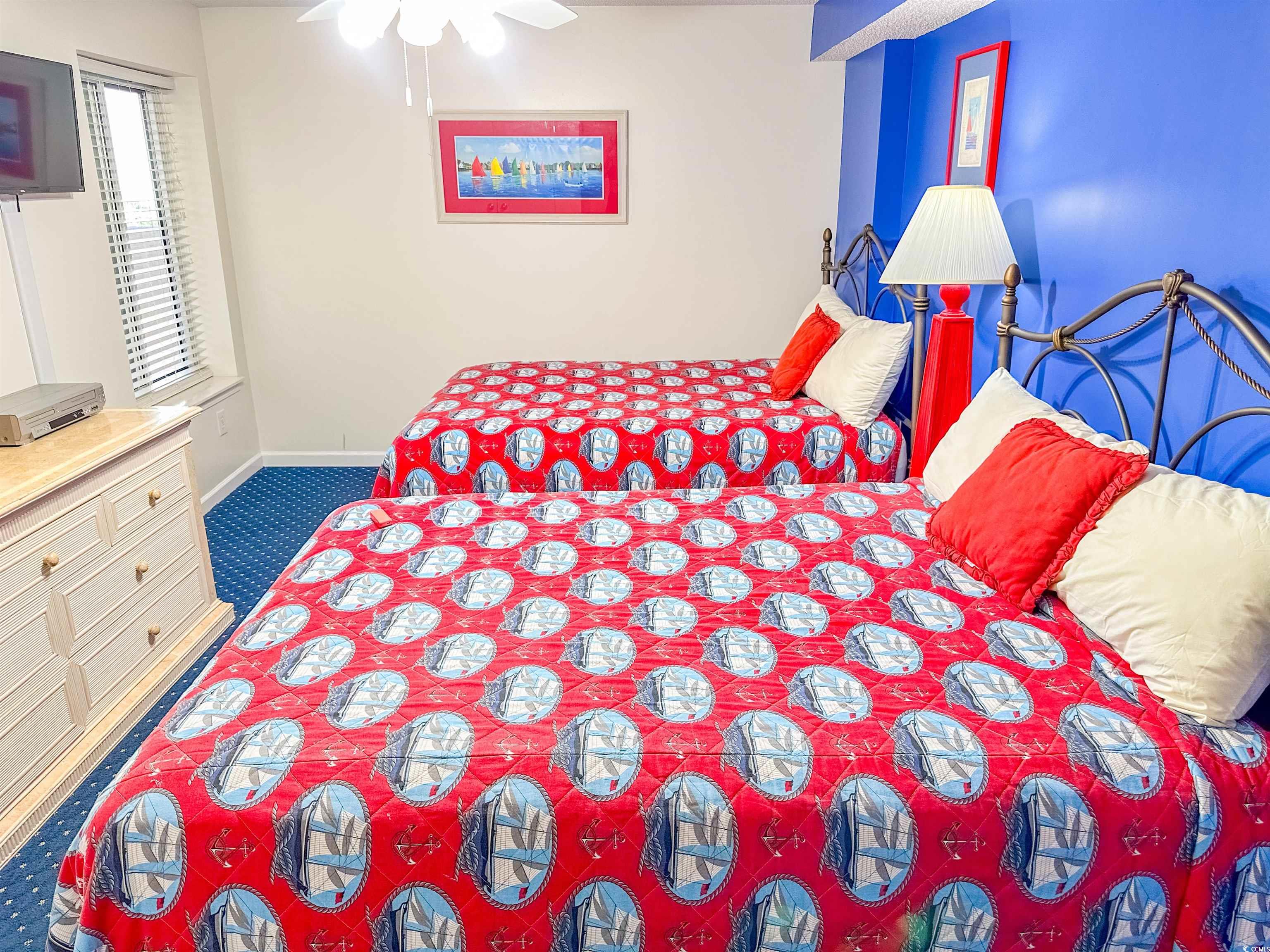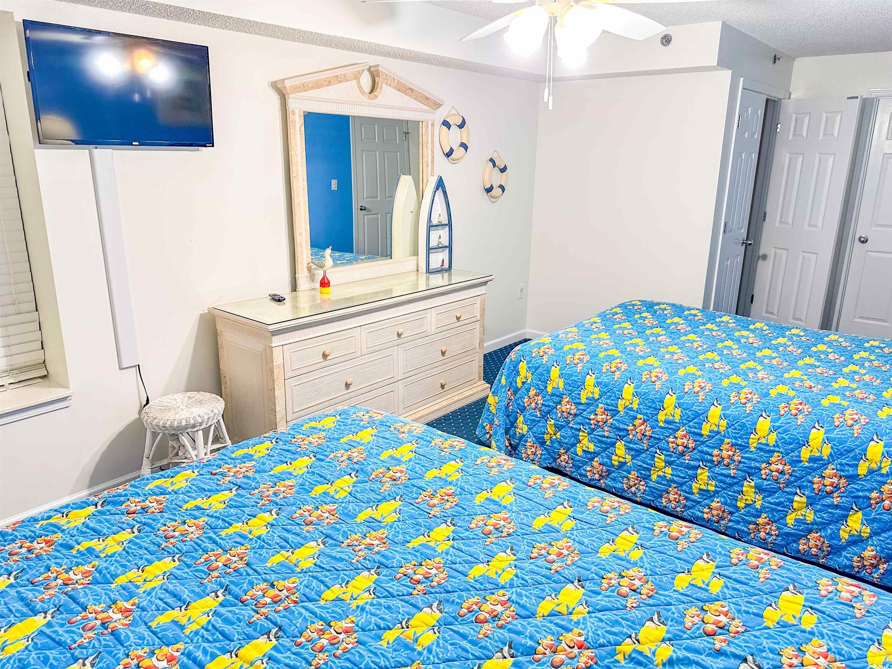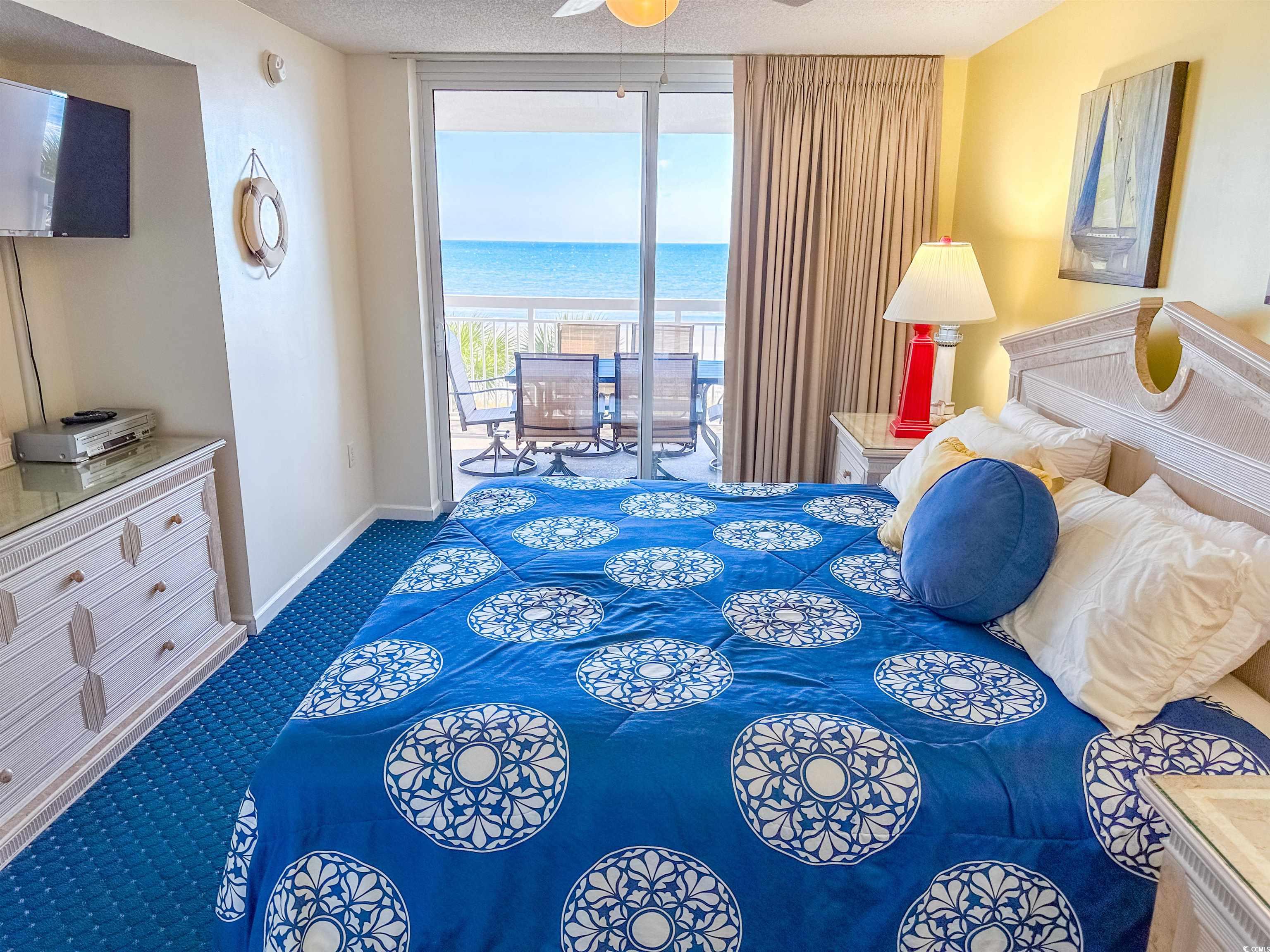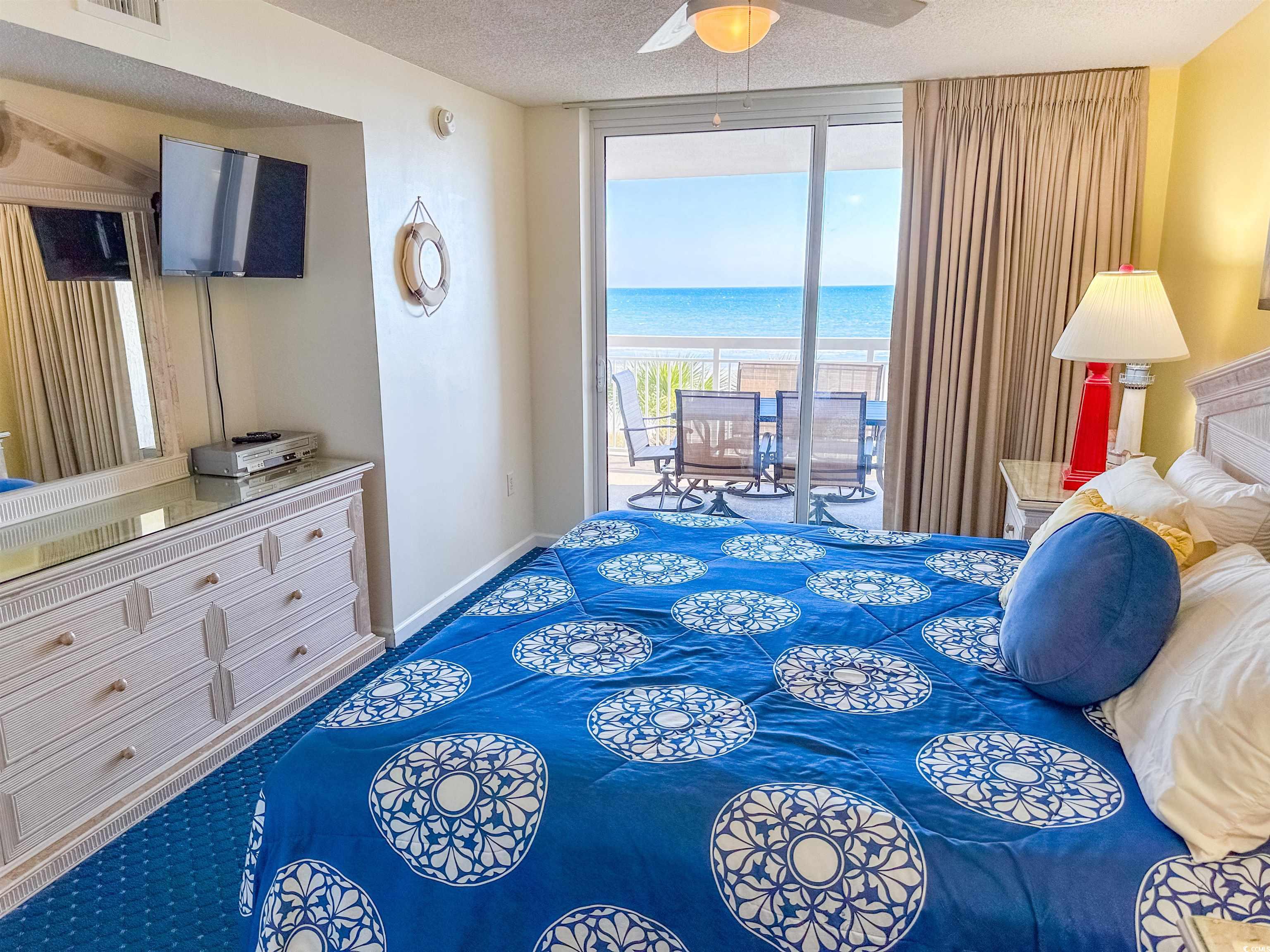 This is the largest 4BR/4BA in North Myrtle Beach and is also the lowest priced four bedroom in Crescent Shores South Tower. This second floor unit has spectacular views of the sand dunes, Atlantic Ocean and pool deck area. This spacious unit has been staged for maximum rental potential with a king bed in the master, king bed in the first guest bedroom, two queen in the second guest bedroom and two queens in the third guest bedroom. The four bathrooms allow privacy for all guest. Step out onto the expansive 26-foot oceanfront balcony, accessible from both the living room and the master bedroom, and soak in the breathtaking views of the Atlantic. The master suite features not only a king-size bed, flat-screen TV, ceiling fan, private balcony access, and a spa-style bathroom with double vanities, a whirlpool tub, and a glass-enclosed shower. The second master bedroom offers a king-size bed, flat-screen TV, ceiling fan, and private bath. Two additional guest bedrooms each include two queen beds, flat-screen TVs, and ceiling fans, providing ample space for everyone to relax. Fully Equipped Kitchen and Dining Area. The kitchen is ready for everything from morning coffee to family dinners, featuring granite countertops, a microwave, dishwasher, full-size washer and dryer, and both Keurig and traditional coffee makers. The property has Resort-Style Amenities at Your Fingertips. Step outside and enjoy an array of on-site amenities, including a 110-foot oceanfront pool, a 200-foot lazy river, two hot tubs, a kiddie pool, and a fitness centerall just steps from the sand. This is a Prime Location in Crescent Beach. You're just minutes from top attractions like Barefoot Landing, Tanger Outlets, and nearly 90 premier golf courses. For dining and entertainment, enjoy local favorites like Bistro 90 or walk next door to Molly Darcys for oceanfront dining and live music. Whether you're planning a relaxing family vacation, a romantic getaway, or a golf trip with friends, this Crescent Shores condo offers the ultimate North Myrtle Beach experience with all the comforts of home.