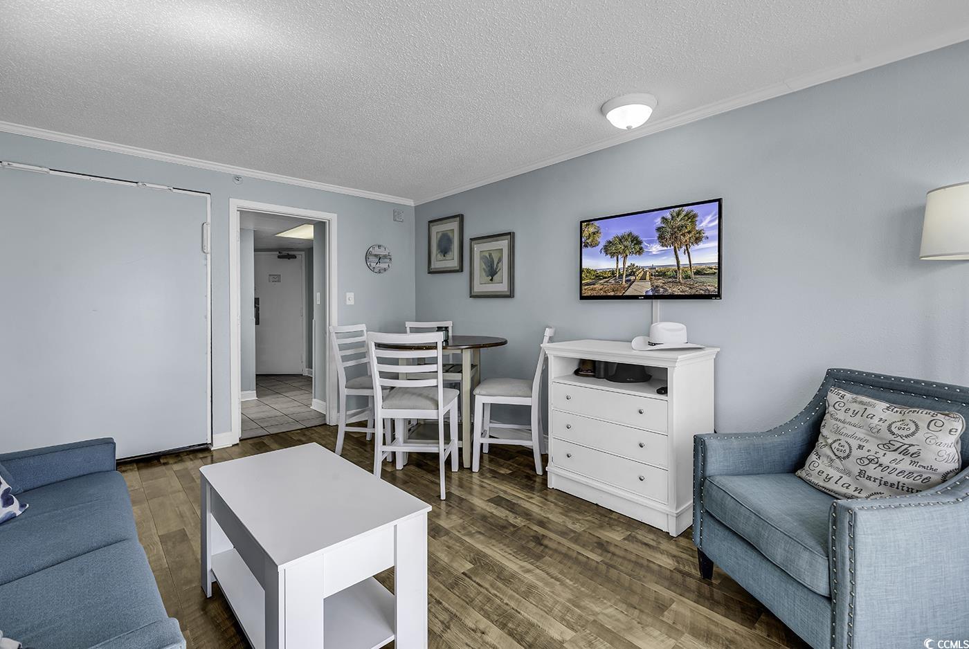 Welcome to Unit 1549 at the Landmark Resort a top-floor, fully furnished oceanfront condo located in the heart of Myrtle Beach! Enjoy breathtaking views of the Atlantic Ocean from the living room, bedroom, or from either of your two private balconies. From all three spots, you can relax and watch the sunset over the water. This beautiful 1-bedroom, 1-bath unit features a fully equipped kitchen with granite countertops, a refrigerator, and a built-in microwave above the range oven. The condo has been well maintained and thoughtfully updated over the past few years. Recent improvements include: upgraded LVP flooring in the master bedroom, living room, and dining area, updated air conditioning units (2023 and 2024), new range, new curtains in the living area and master bedroom (2023), fresh interior paint, and a new built-in microwave (2024). The Landmark Resort is one of Myrtle Beachs premier oceanfront destinations, offering an impressive list of amenities, including an outdoor water park, indoor and outdoor pools, lazy rivers, hot tubs, kiddie pools, on-site restaurants and bars, a fitness center, game room, gift shop, laundry facilities, snack bars, and more. Centrally located near popular attractions such as Family Kingdom Amusement Park, Broadway at the Beach, the Myrtle Beach SkyWheel, and The Market Common, this condo provides easy access to shopping, dining, and entertainment options. Don't forget about the multiple golf courses as well. Whether youre looking for a second home, vacation getaway, or an investment property, this fully furnished oceanfront unit is ready for you or your guests to enjoy. Dont miss this opportunity to own your own piece of Myrtle Beach paradise at the Landmark Resort!