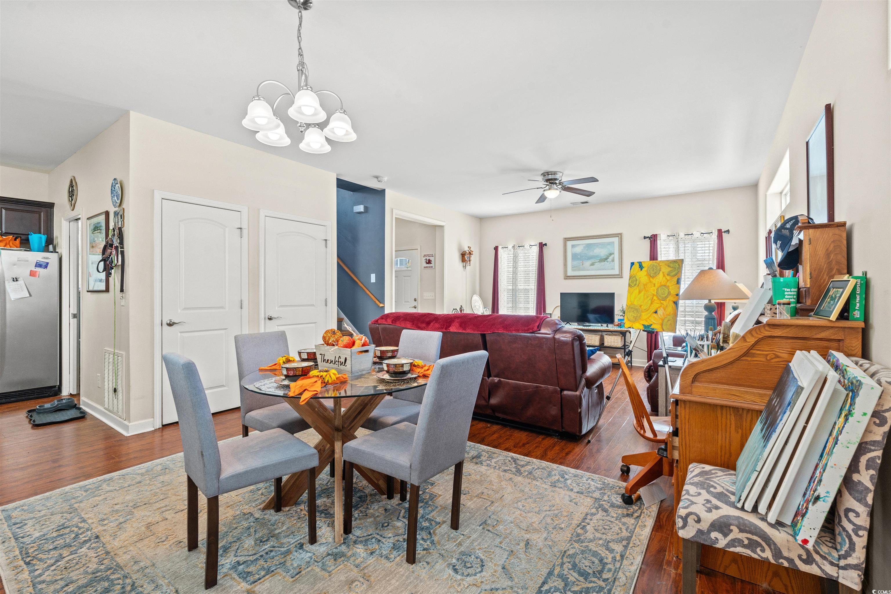 Welcome to The Villas at the Gates! This 3 bedroom, 2.5 bath home is ideal for a first-time homeowner, someone looking for an investment property for long term rental, or someone looking for a second home just 2.5 miles from Surfside Beach! Inside, you will find an open-concept layout with a spacious living area on the first floor that flows from family to dining area into the kitchen. The kitchen is fitted with stainless steel appliances, granite countertops, and ample storage space in cabinets. Conveniently, a half bath is also located on the first floor. Upstairs you will find 3 bedrooms, with the washer and dryer easily accessible between all 3 bedrooms. The primary ensuite to the left has a walk-in closet and the primary bath includes a walk-in shower. The other two bedrooms are across the hall, with a hallway bath that includes a shower tub combo. You will love living in this family friendly neighborhood with food trucks on summer weekends to enjoy meeting and conversing with the neighbors. The Gates also has sidewalks throughout the different sections that allow walking with ease around the neighborhood. Zoned schools are in close proximity, along with grocery stores and restaurants. Just a few minutes to the beach or a 10-15 drive to Market Common or The Marsh Walk in Murrells Inlet. Great location so close to entertainment, restaurants, parks, and community events makes this a sought after area to live. Easy access to 17 bypass and business, Hwy 31 (and 22 HOA dues cover the landscaping around the home, so you dont even have to own a lawnmower! For an additional HOA fee, you can have access to the community pool. Trash pick up, basic cable TV package, landscaping (including sprinklers) is included in the HOA dues. Home is also equipped with Hurricane Shutters that are easily attached to windows. Overall, this home in The Villas at The Gates would be perfect for those looking for a combination of relaxation, community, and convenience. All information is deemed reliable, however buyer/buyers' agent responsible for verification of all information, including measurements.