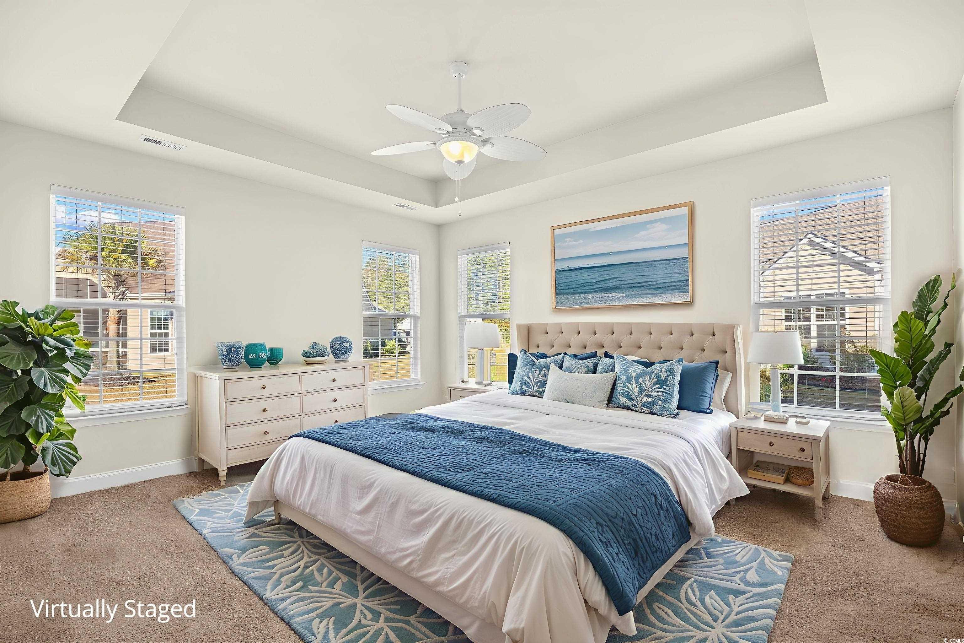 PrimaryBedroom: TrayCeilings, CeilingFans, MainLevelMaster, WalkInClosets