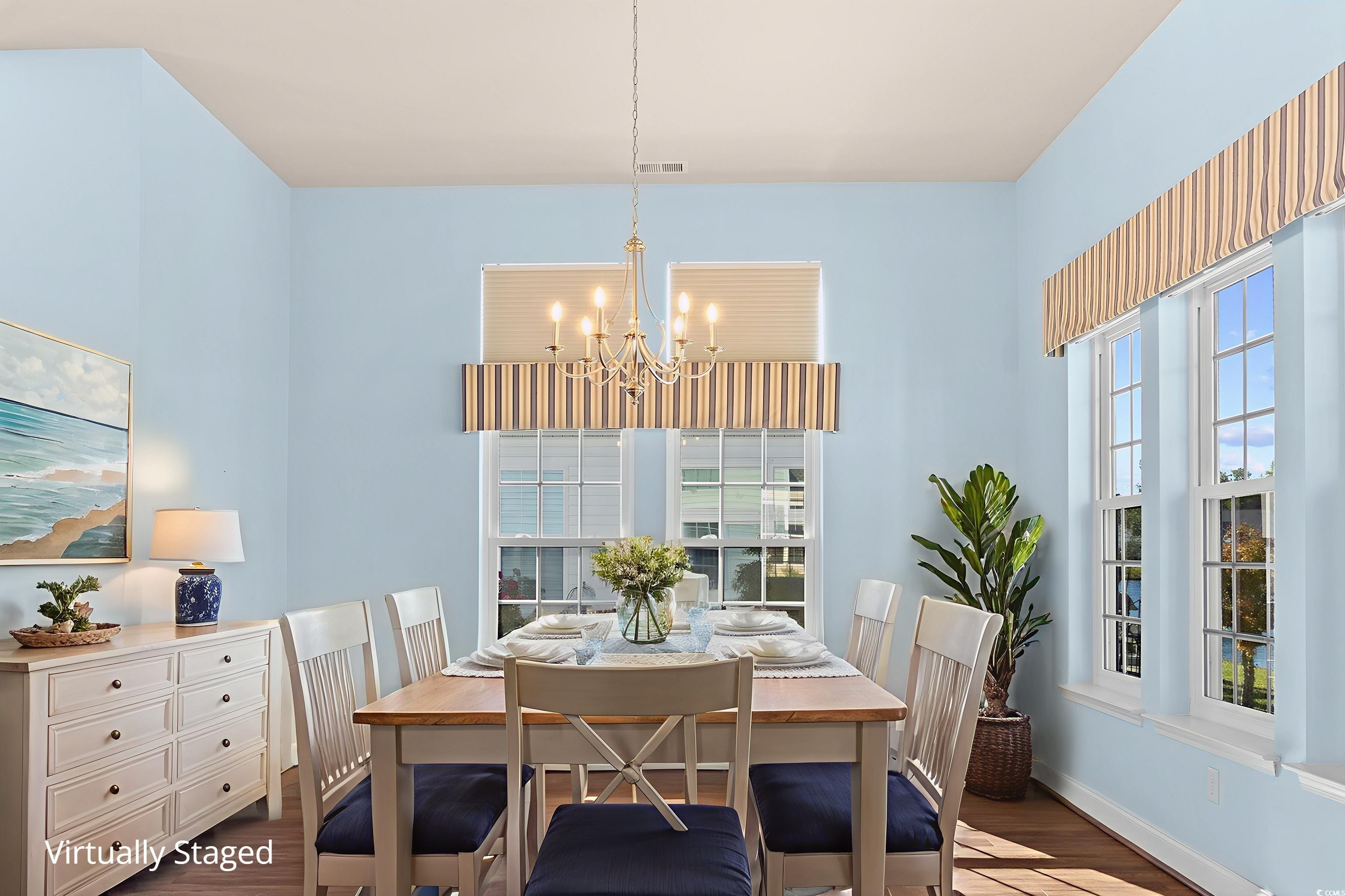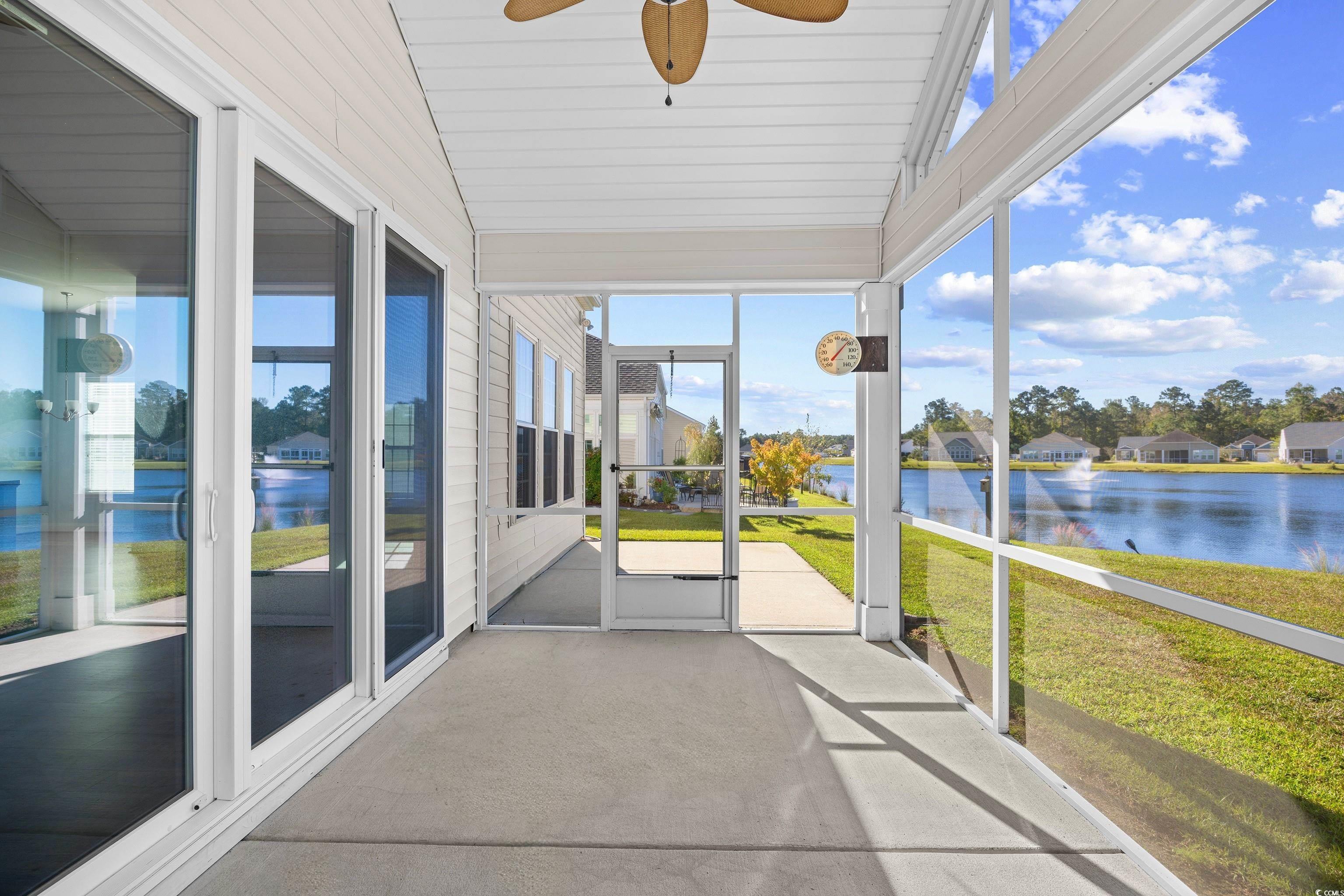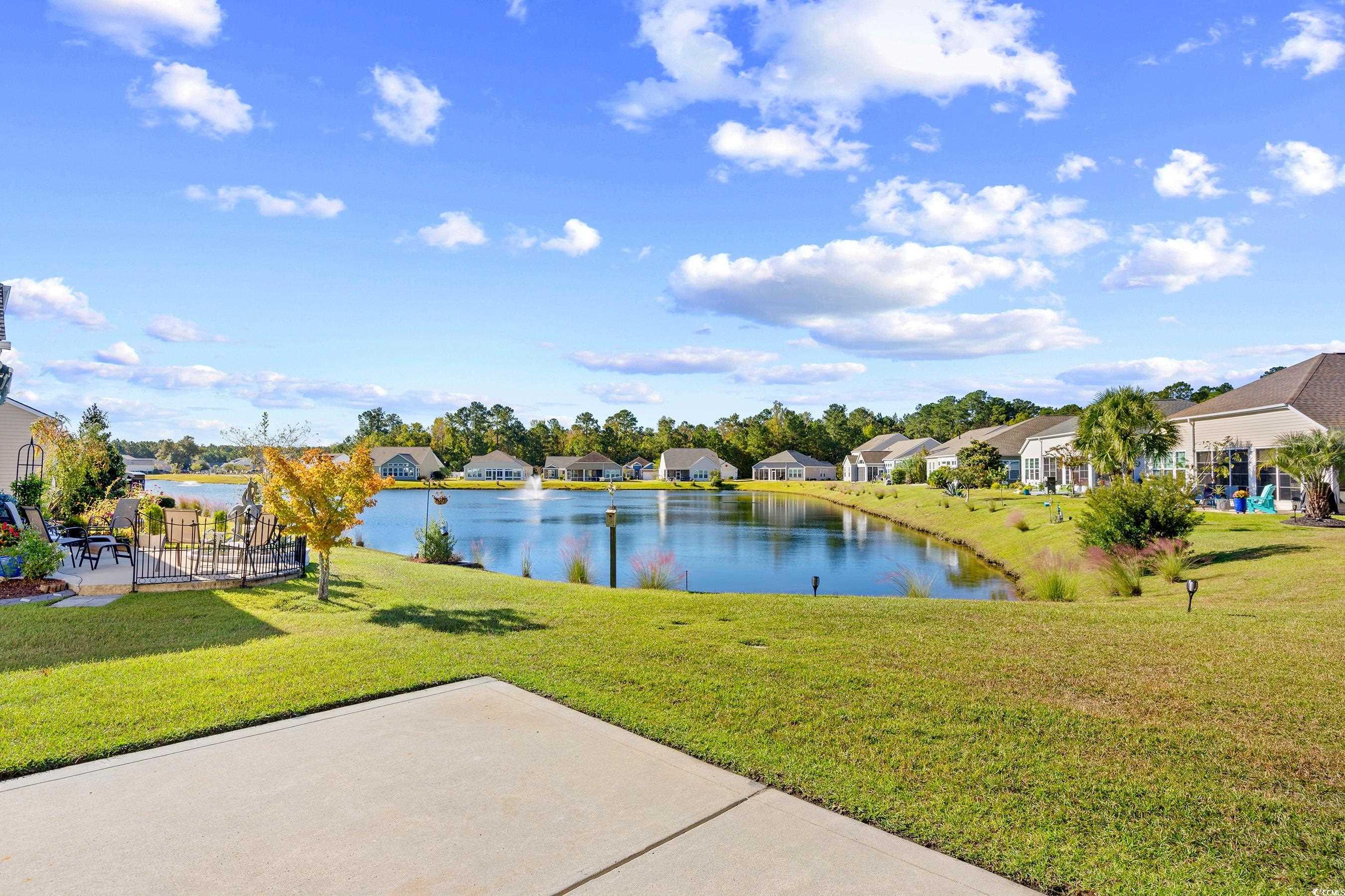 Come live the easy life at the beach! You will fall in love with this coastal oasis overlooking the serene pond with water fountains. This wonderful single-level home is located in Carolina Crossing, which is a unique community, because the landscaping is maintained for you! The exterior has stone accents with double french doors that lead into a foyer with a tray ceiling. This remarkable home has a grand entry with an open floor plan and high ceilings. The living room has a fireplace and custom built-ins were added for extra storage. This is the perfect spot to snuggle with your loved ones during the holidays. Engineered hardwood flooring was added throughout the main living area and you will notice that this lovely home has several windows which bring in an abundance of natural light. You can see the moon reflect on the water while you are enjoying a fabulous meal in the spacious dining area. The kitchen has an island bar with a pantry, stainless steel appliances, and a breakfast nook. Stylish cabinets and countertops have been added. There is a full-size laundry room and the washer/dryer will stay. The huge owner's suite has a tray ceiling, a big walk-in closet, and the attached bath features dual sinks. There are two large guest rooms and one of them has a built-in office area. The oversized sliding glass door in the living room opens up to a screened-in porch with tile and a vaulted ceiling. There's a big patio where you can grill out with friends while you watch the sunset over the water. There is a powder room inside for guests and a mud room area off the garage. This fantastic home has been very well-maintained by the original owners. A new HVAC system was installed in 2019, several windows were replaced in 2024, and the underground propane tank was replaced in 2019. The garage has a retractable screen door, which creates a comfortable place for everyone to sit back and relax. The yard has mature trees with beautiful curbscaping and river rocks. There is an outdoor pool with a clubhouse, which has social activities such as yoga and card games. This community is located about 15 minutes to Cherry Grove Beach, so you can live the Coastal Lifestyle! There are several delicious restaurants with live music, top-notch golf courses, and plenty of great fishing spots! This is truly a must-see and you don't want to miss out! Schedule your showing today and don't forget to check out the virtual tour! Square footage is approximate and not guaranteed. Buyer is responsible for verification.