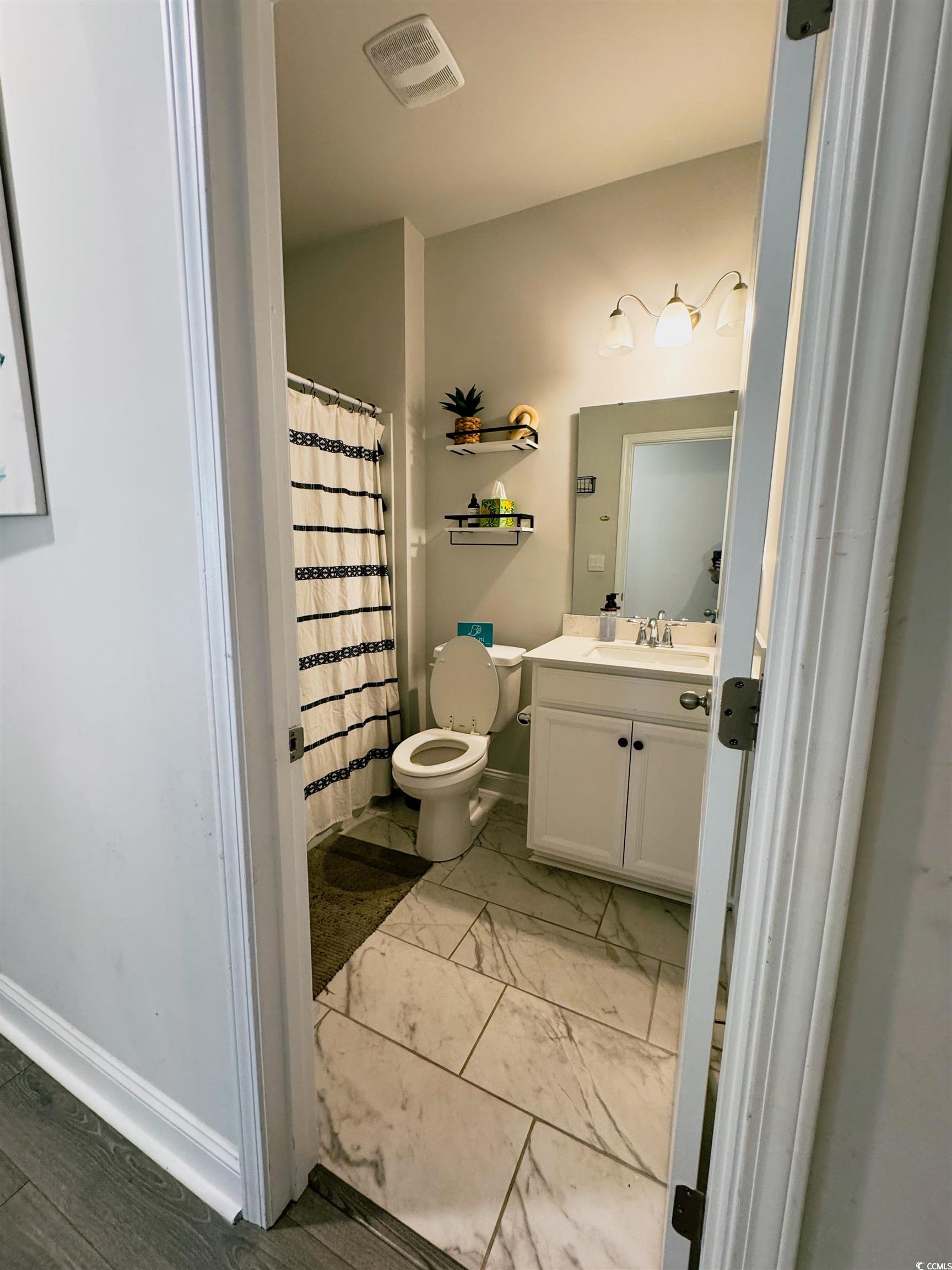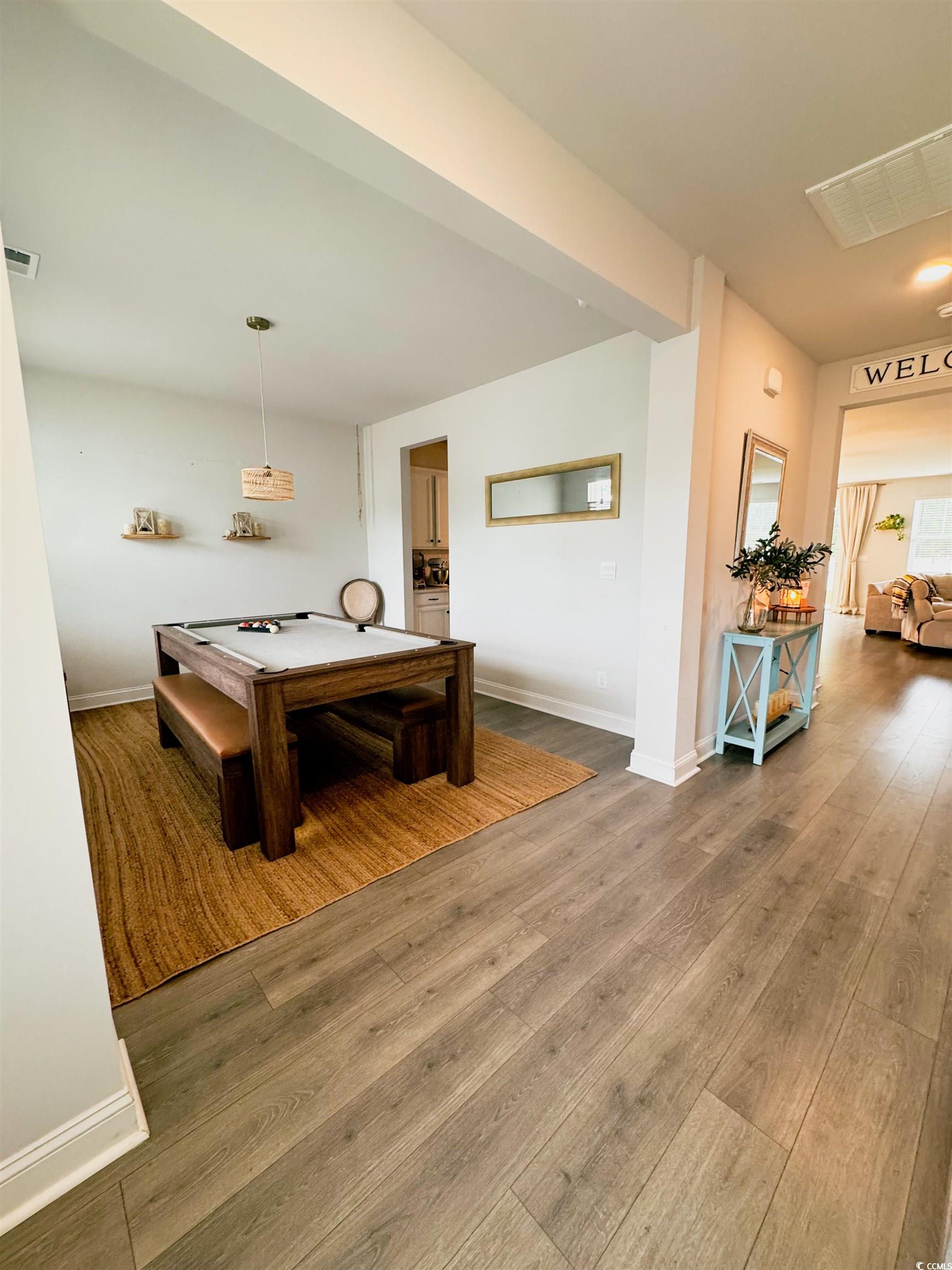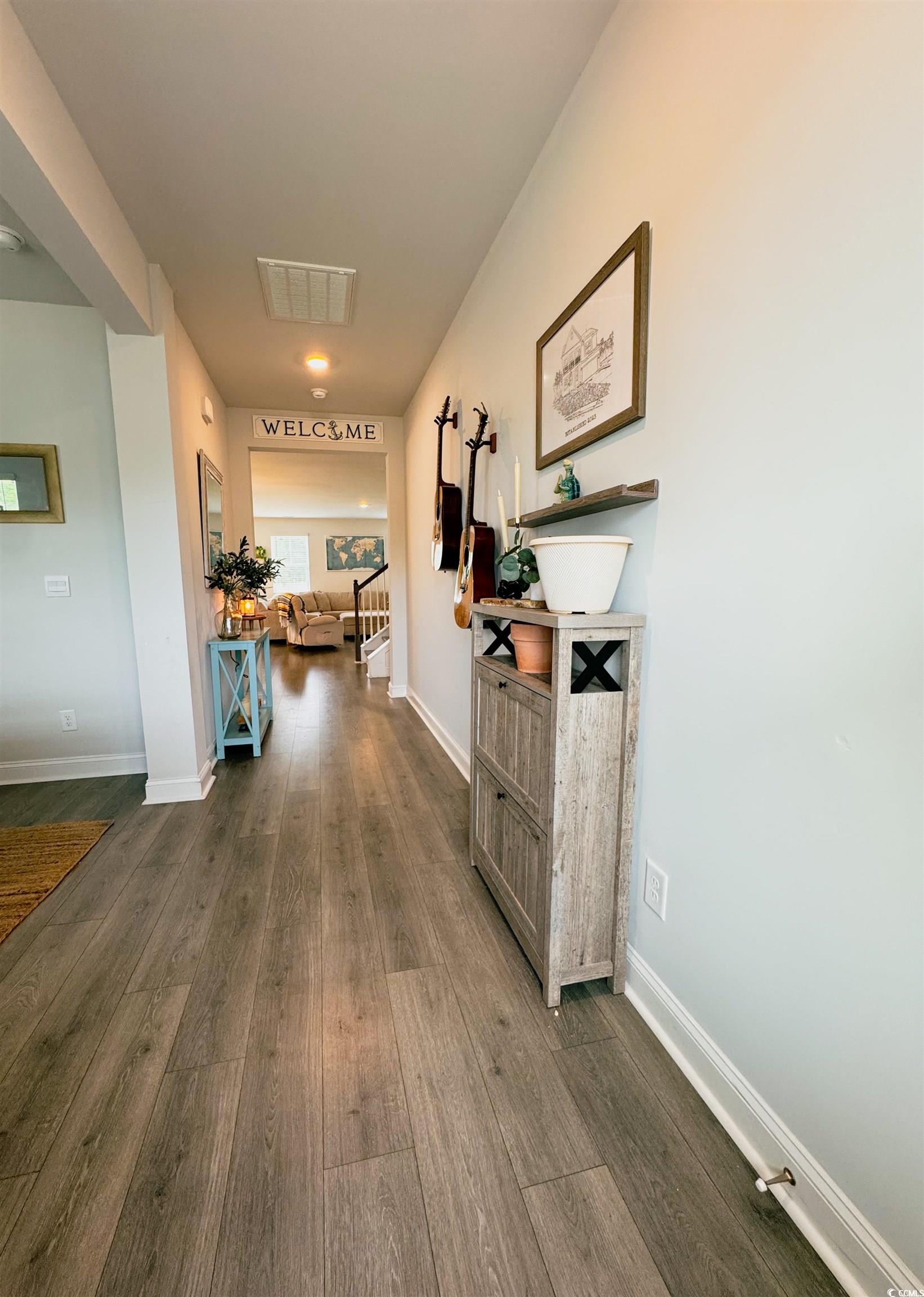 Turn into community onto Waterbridge Blvd off Carolina Forest Blvd to end. Take a right onto Moss Bridge Rd. Drive over wooden bridge and pass DR Horton model homes on right. Take 2nd right onto Maidenhair Loop. Home is 3rd house on the left. Green color with upstairs balcony.Courtesy of Realty One Group Dockside