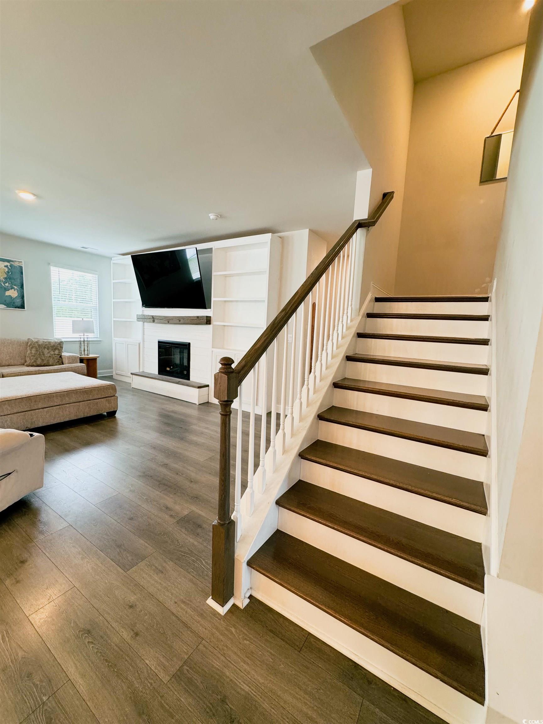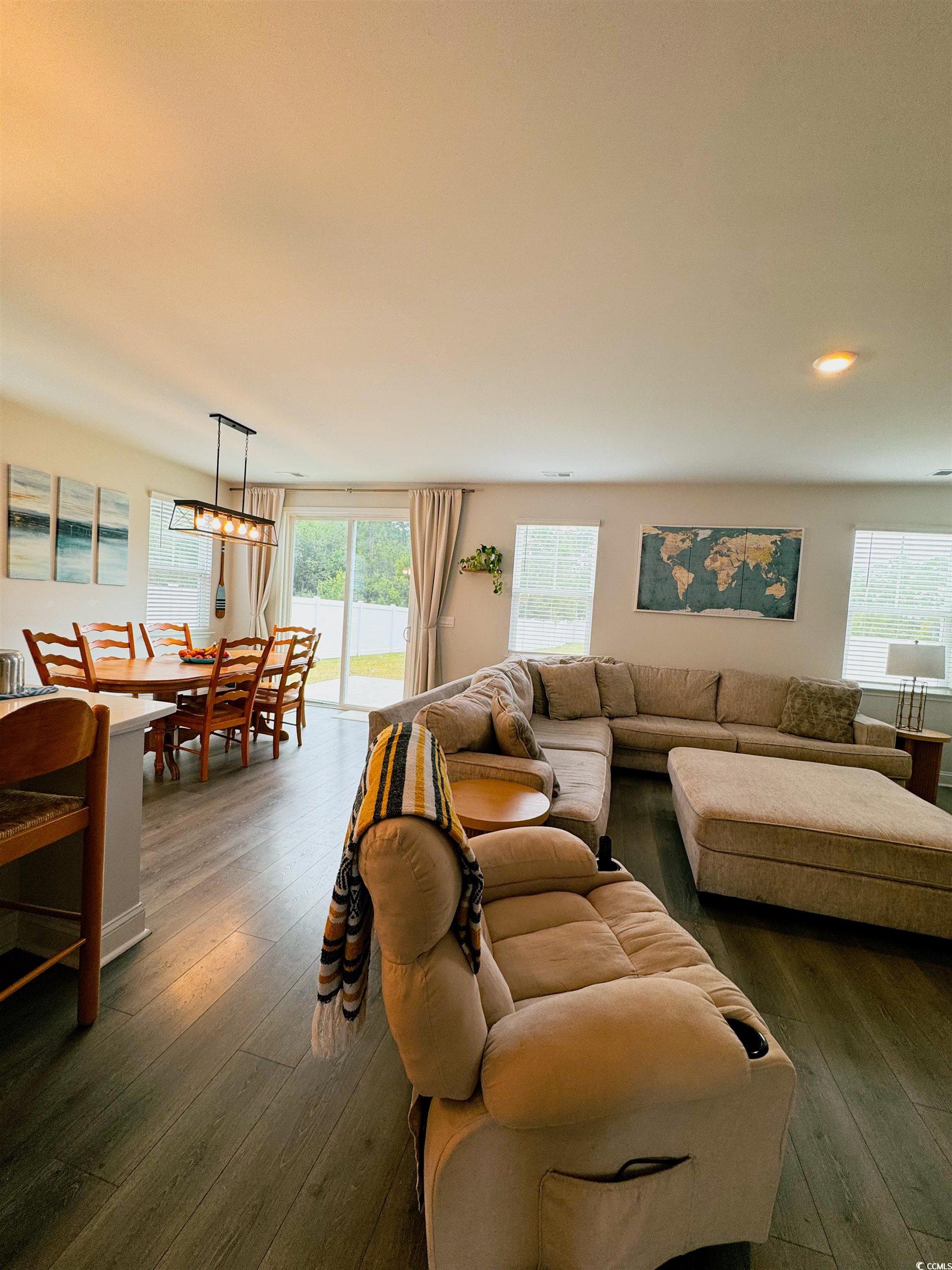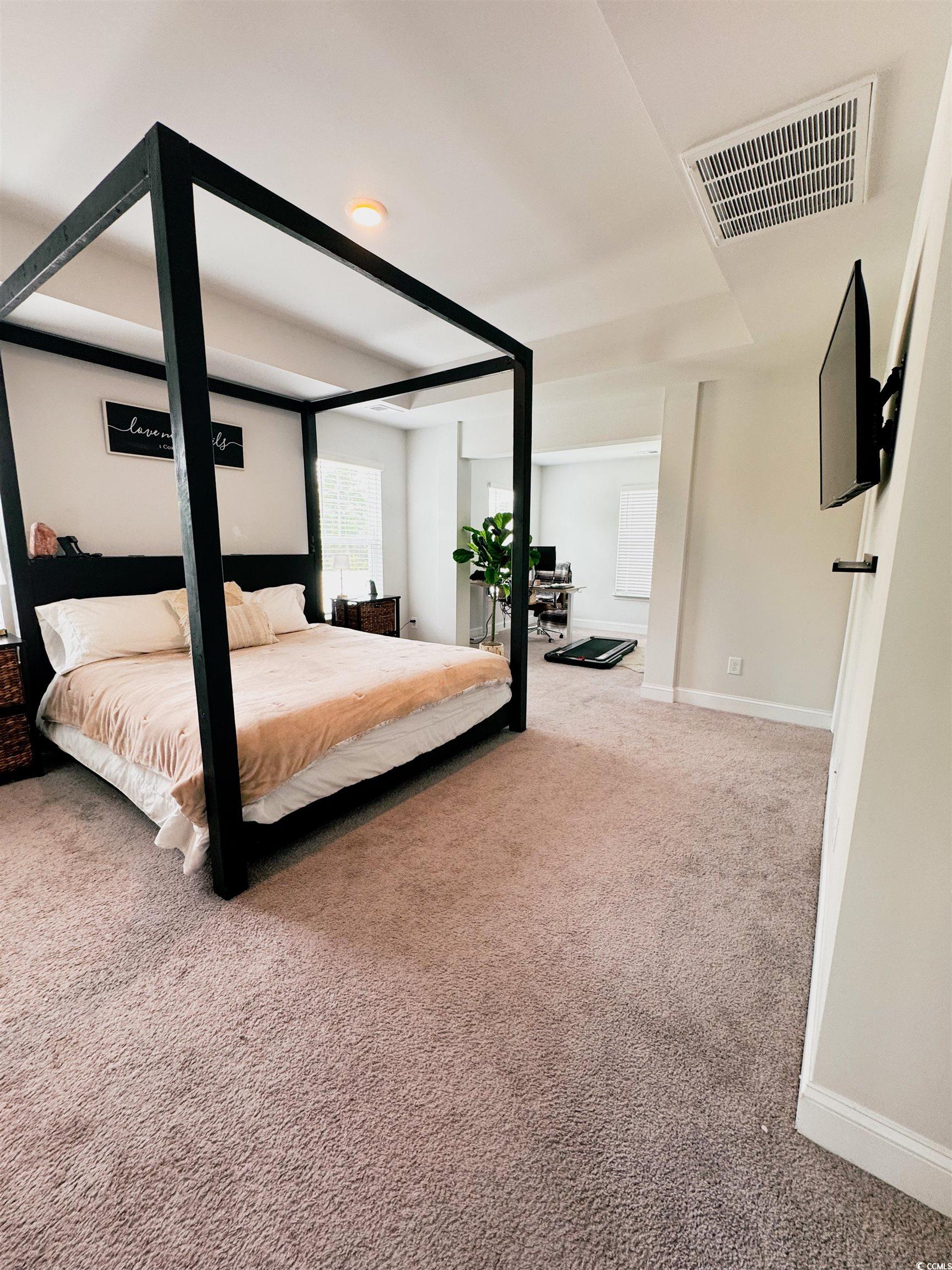 Owner is a licensed agent. Gorgeous southern home with a HUGE backyard and oversized driveway! Privacy provided with fence in place in the backyard. Plenty of space for fun on the pool side patio or a pool, children's play area and adult entertaining in the remainder of the large yard- fun for the whole family. The Harbor Oak elevation C model is the perfect blend of southern charm and space with the front facing stacked porches and you can't beat the front porch privacy offered here as this lot faces a partially wooded median area instead of a neighbor's home. As you enter the front door, you are greeted by a warm hallway that leads to the open concept great room and kitchen. Also from the entryway, you have endless potential to your left with a flex room leading directly to the butler's pantry and walk-in pantry that will be the envy of every hosted event! Kitchen is equipped with a gas cook top, stainless appliances, quartz countertops and an oversized island- perfect for any gathering. As you stroll over to the great room, your eyes will be drawn to the full size built in shelves, made to perfectly outline up to a 70' TV to enjoy over the electric fireplace. Plenty of windows and natural light throughout the downstairs, along with plenty of privacy around the corner for guests with the second bedroom and full bathroom. Don't forget to peek around the other corner for the ""drop zone""/mud room area, strategically located at the garage door. Upstairs you will enter the open flex space for a second living room, gym or children's play room-the options are endless! This room is equipped with huge walk in double closets as well as a linen closet for ample storage. Just down the hall, the second bathroom with double sinks and a separate room for the toilet/shower area separate the large upstairs bedrooms. You can also access your 3rd floor unfinished attic or potential 5th bedroom from here! From the flex room, enter the French doors to the grand primary suite complete with a tray ceiling, attached sitting room and HUGE walk-in double closet. The en-suite bathroom leaves little to be desired with the separate vanities, walk-in linen closet, private water room and 5' walk in tile shower! The laundry room is conveniently located off of the primary suite closet and will lead you to the upstairs hallway for easy dual access. Waterbridge Community is in the highly sought after Carolina Forest area. Minutes from grocery stores, shopping centers, attractions and the beach! This gated community is equipped with resort-style amenities such as a clubhouse, fitness area, tennis courts, pickleball courts, basketball courts, volleyball area, bocce ball, fenced in children's playground, a lake, boat/kayak launch and the LARGEST residential pool in South Carolina!