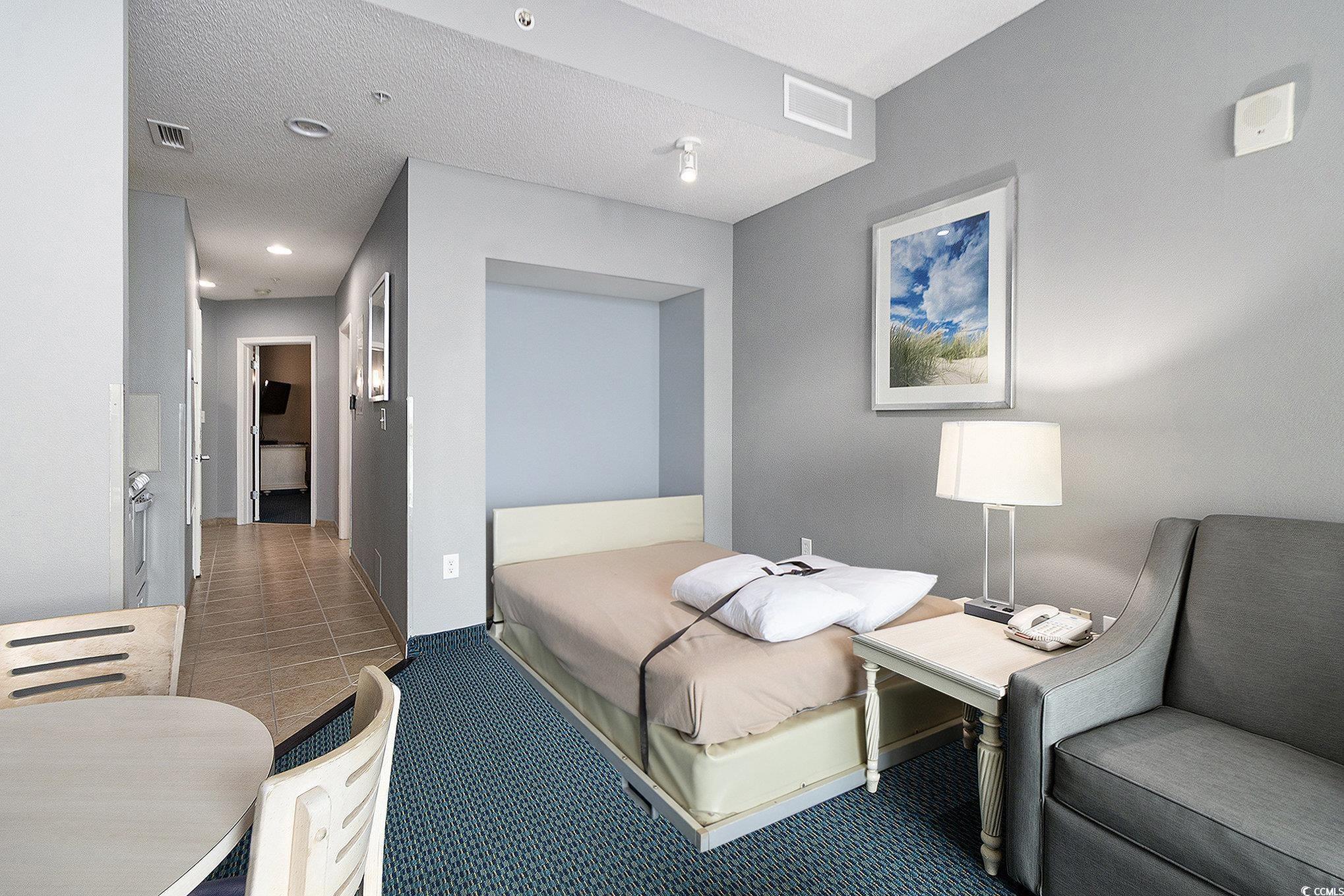 Wake up to breathtaking views of the Atlantic Ocean from the private oceanfront balcony of this stunning 1-bedroom, 1-bath condo at the highly sought-after Avista Resort. Perfectly situated within walking distance to all the excitement of Main Street in North Myrtle Beach, this beautifully maintained condo offers both comfort and strong rental potential. The open living and dining area provides plenty of space to relax, complete with a convenient Murphy bed for extra guests. The full kitchen is equipped with modern appliances, including a stove, refrigerator, microwave, and dishwasher--ideal for preparing home-cooked meals. The primary bedroom features two beds, generous closet space, and plenty of natural light. The bathroom includes a single sink vanity, and a tub/shower combination. A laundry closet with a stackable washer and dryer adds everyday convenience. The Avista Resort offers an abundance of amenities designed for relaxation and entertainment. Spend your days floating along the lazy river, soaking in the hot tubs, or taking a dip in the indoor and outdoor pools. Enjoy on-site dining options, tropical bars, and easy beach access just steps away from your door. Whether you're seeking a vacation retreat, an investment property, or a seaside escape to call home, this condo offers it all. Golf courses, restaurants, shops, and entertainment are all nearby, ensuring something for everyone to enjoy. From fishing piers to award-winning shows, the best of the Grand Strand is right at your fingertips. Convenient access to grocery stores, medical centers, banks, and daily essentials makes this location as practical as it is scenic. Don't miss your chance to own this incredible oceanfront retreat--schedule your private tour today!