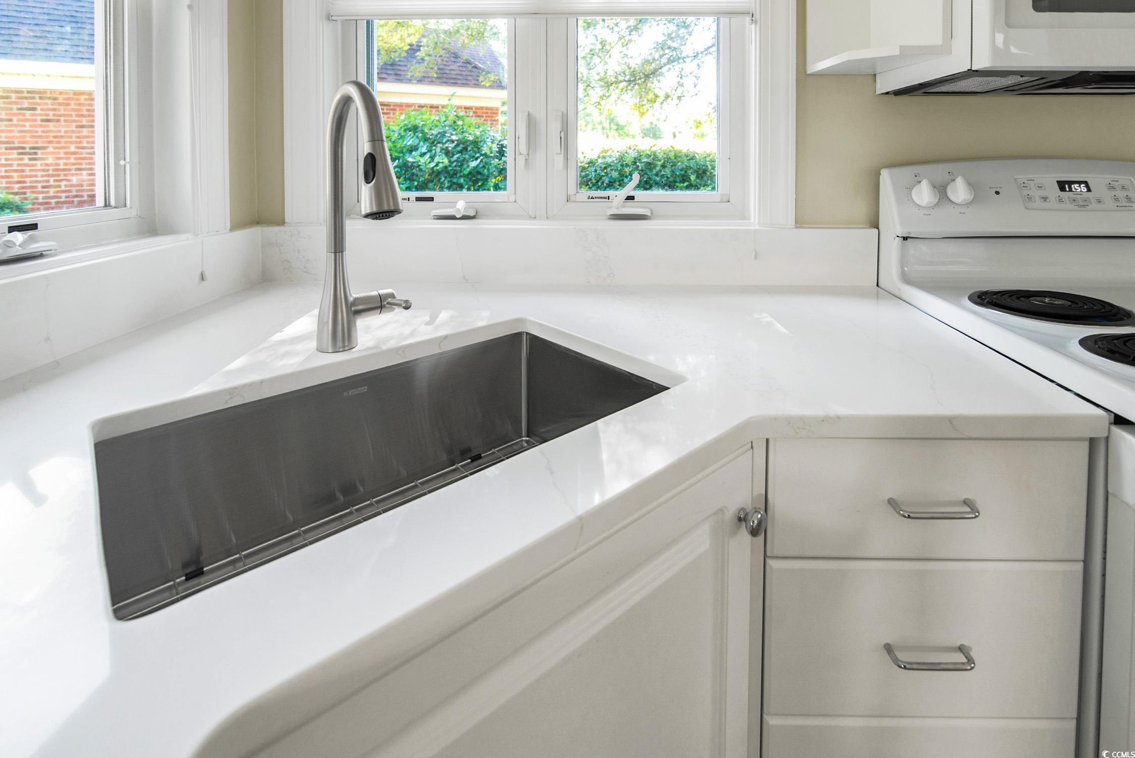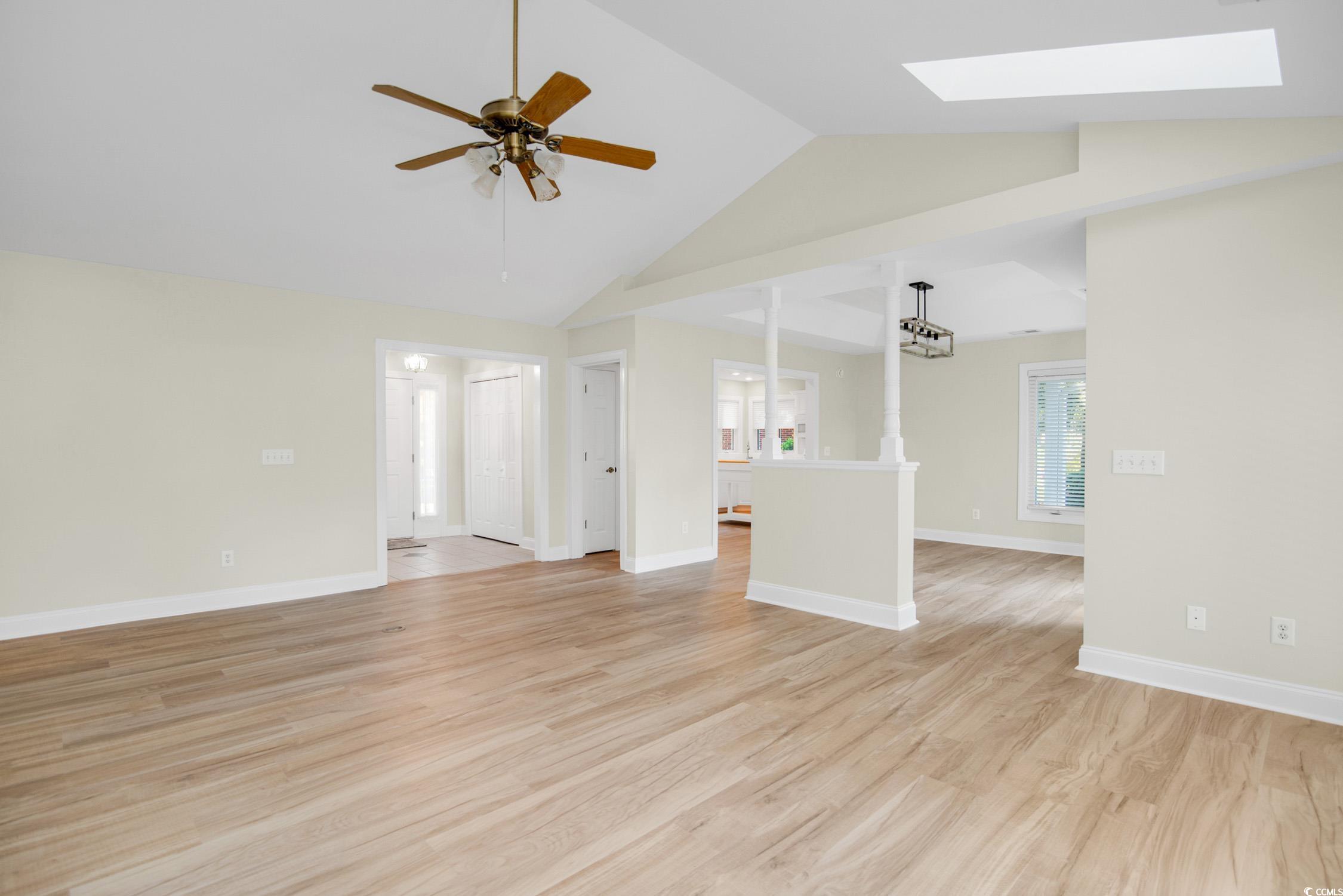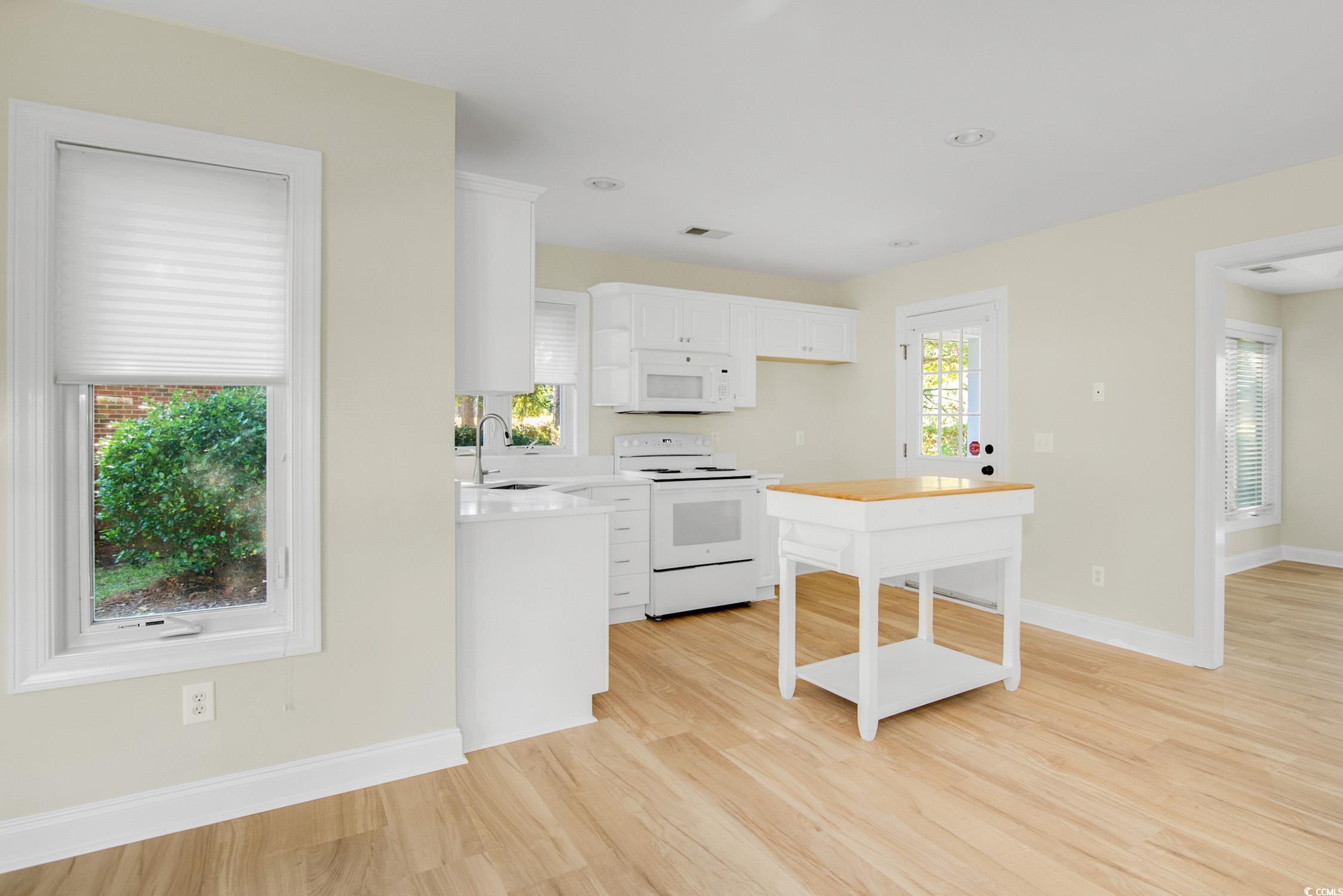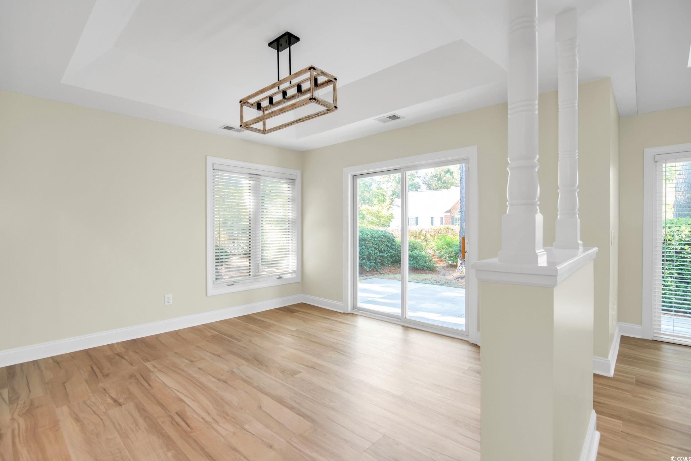 Move-in ready and well-maintained 3BR/2BA single-story home in the desirable Ricefields Plantation community. Home has been updated with new Luxury Vinyl Plank flooring in kitchen, living and dining rooms, laundry room, and hallway; new quartz countertops and stainless steel sink with new faucet in kitchen; fresh ceiling, wall, door, and trim paint throughout; new carpet in all bedrooms. Architectural roofing shingles, Leafguard gutter system and water heater replaced in 2021. HVAC with air scrubber system installed in 2023. The spacious family rooms vaulted ceilings and skylights provide a bright and airy living space, with an expansive view of the patio and rear yard. Enjoy the formal dining room or the breakfast nook in the kitchen, each with lovely window views of the outdoors. The primary bedroom with tray ceiling offers plenty of room as well as ensuite bath with double-sink vanity, large shower, garden tub, linen closet, and walk-in closet. Opening from the primary bedroom is a sitting area that also connects to both the primary bath and the back yard. Just inside from the two-car garage is the laundry room, which includes a sink, plenty of cabinet space, and relatively-new washer and dryer. Ricefields Plantations amenities include a sparkling community pool a short distance away, nature trails, a boat ramp providing easy access to the Waccamaw River & Intracoastal Waterway, discounted golf rates at nearby courses, and more. Situated in a prime location, Ricefields Plantation offers effortless access to pristine beaches, championship golf courses, and an abundance of shopping and dining options.